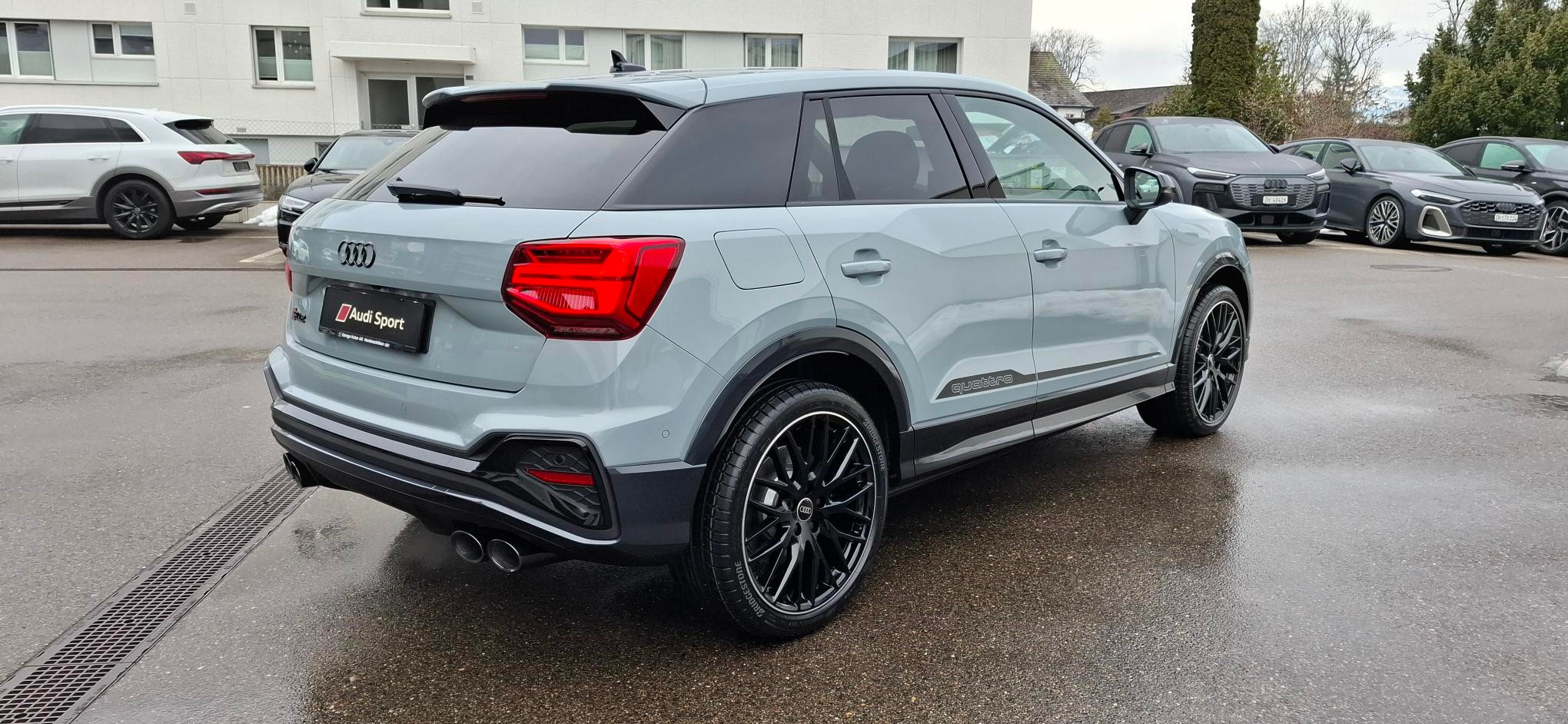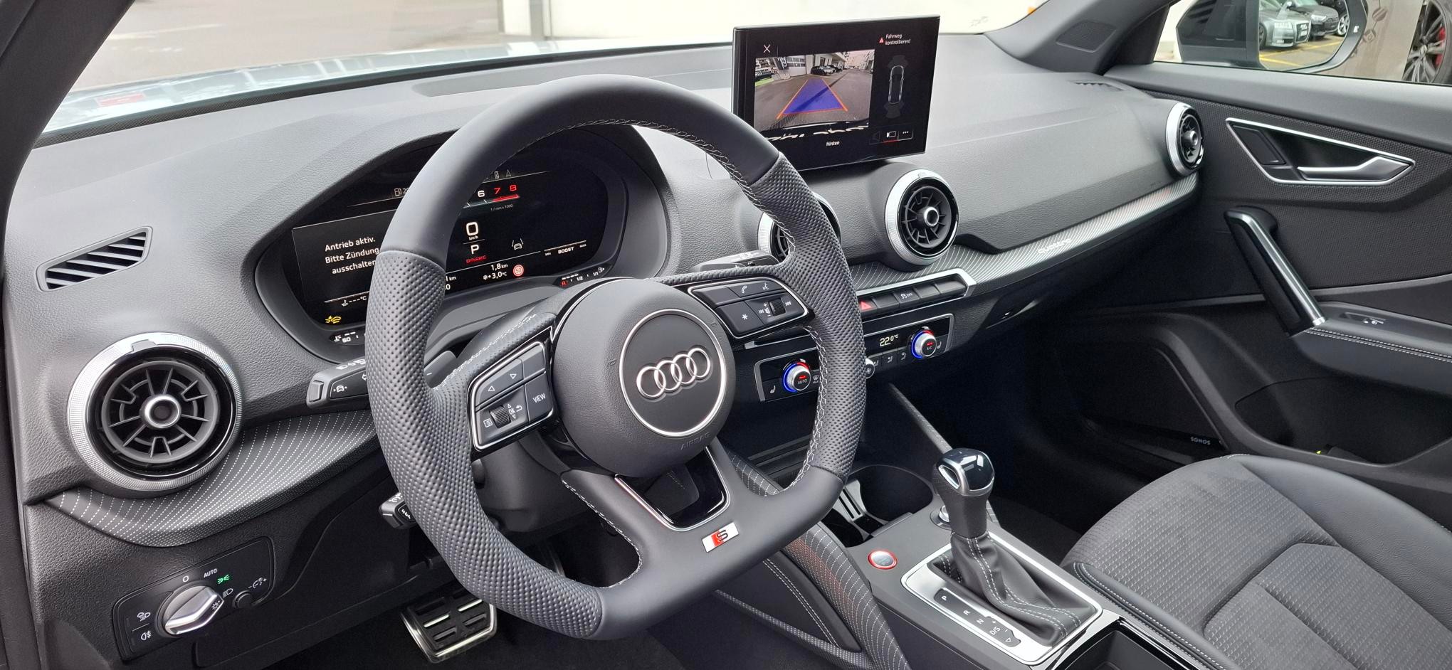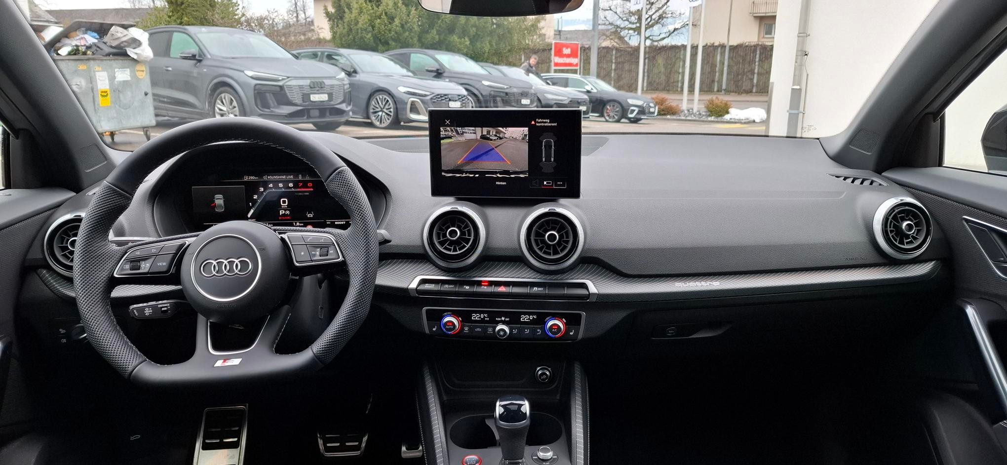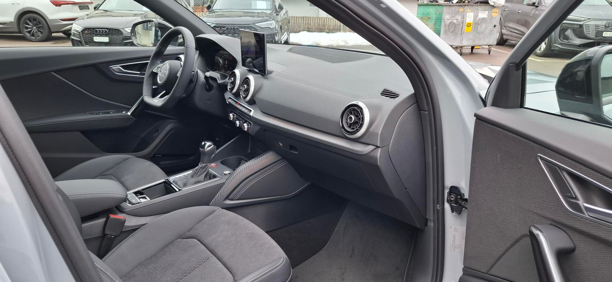 [QQ2] Paket: Ambiente Lichtpaket plus - farbig hinterleuchtete Applikationsleiste in der Instrumententafel (10 Farben wählbar) - farbig hinterleuchtete Applikation im Kniepad vorn (10 Farben wählbar) - Ambiente-Türspotbeleuchtung Türen vorn [C8R] Räder: Leichtmetallräder, 10-Y-Speichen, schwarz, glanzgedreht - Grösse 8 J x 19 mit Reifen 235/40 R19 - Audi Sport GmbH [EI] schwarz, Naht felsgrau, Himmel schwarz (S line) [8T8] Assist: Adaptiver Geschwindigkeitsassistent [A41] Garantie: Audi Swiss Service Package + (ASSP+) - Reparatur 3 Jahre oder 100 000 km, Service 10 Jahre oder 100 000 km - Es gilt jeweils das zuerst Erreichte [6K4] Audi pre sense front für adaptiven Geschwindigkeitsassistenten [7TM] Dekoreinlagen Lichtgrafik Format