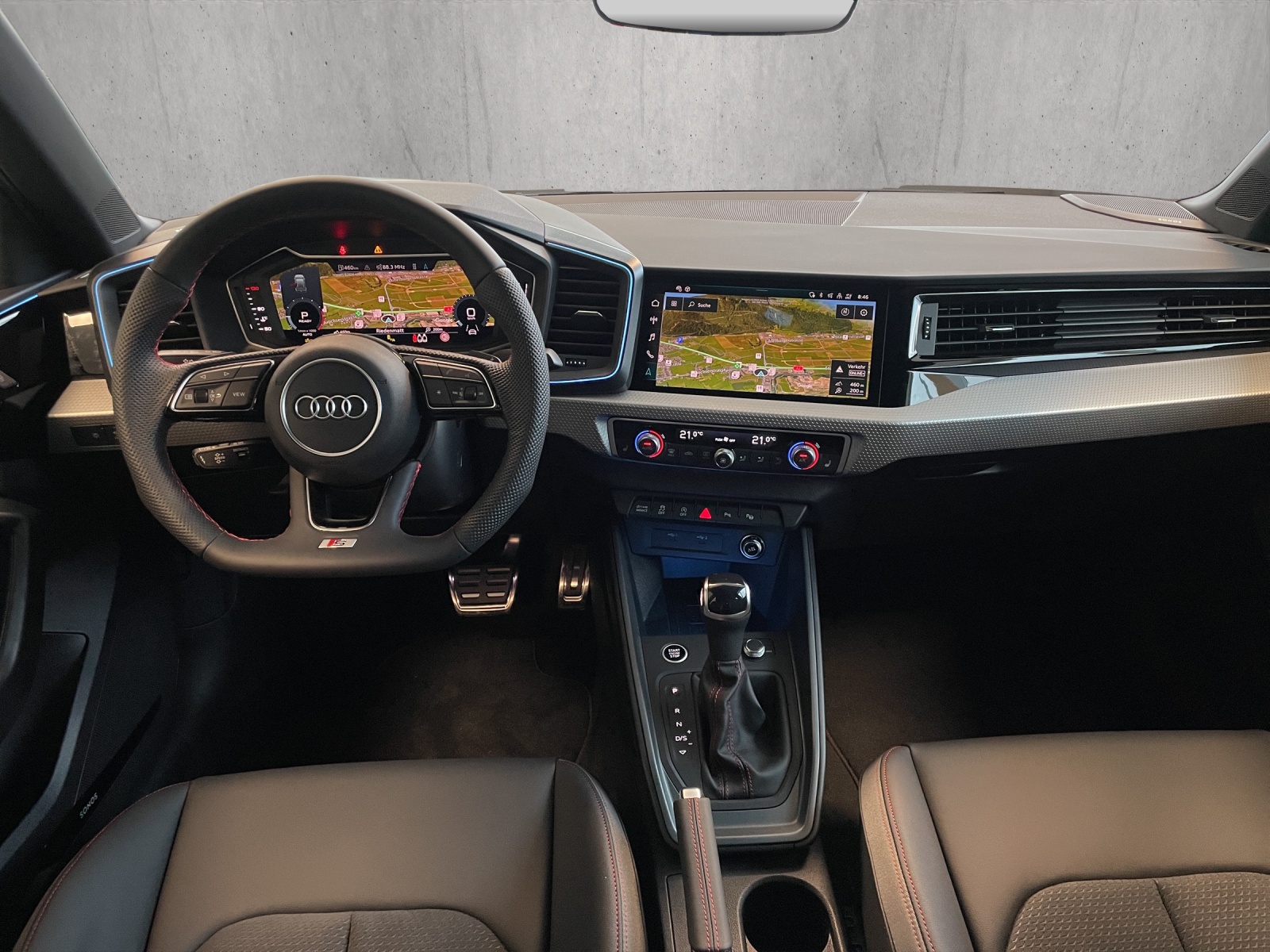 Sonderausstattung Assist: Adaptiver Geschwindigkeitsassistent Assist: Audi pre sense basic Assist: Spurwechselwarnung Dachhimmel in Stoff schwarz Dekor: Aluminiumoptik im Interieur Dekor: Rote Nähte für Interieur S line Entfall Modellbezeichnung und Leistungs- / Technologie-Schriftzug Garantie: Audi Garantie: 5 Jahre oder 100'000 km (ab 1. Inv.) Klima: 2-Zonen-Komfortklimaautomatik Komfortschlüssel (ohne Safelock) Lackierung: Dach in Kontrastfarbe Lenkrad: Sportkontur-Lederlenkrad im 3-Speichen-Design Licht: Fernlicht-Assistent Media: MMI Navigation plus mit MMI touch Media: SONOS Premium Soundsystem Paket: Dynamikpaket Sportback Paket: Kontur / Ambiente Lichtpaket, mehrfarbig Paket: Optikpaket schwarz plus Paket: S line mit Sportsitz (Stoff Puls / Kunstleder mono.pur 550- Kombination schwarz) Räder: Aluminium-Gussräder - 17 Zoll - 5-Arm-Polygon, schwarz Sonnenschutzverglasung abgedunkelt