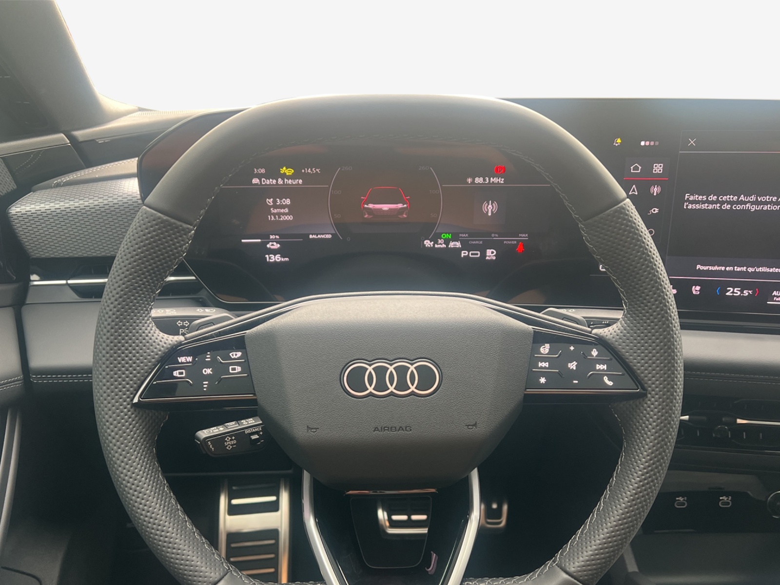 Airbag latéral à lavant, avec airbag latéral de tête et airbag interactif à lavant Airbag: Airbag Fahrer und Beifahrer Assist: Adaptiver Geschwindigkeitsassistent Assist: Alerte de trafic transversal à lavant Assist: Assistant de maintien de voie Assist: Ausweichassistent und Abbiegeassistent Assist: Détection de l'attention et de la fatigue avec surveillance du conducteur Assist: Einparkhilfe plus mit Distanzanzeige Assist: Kamerabasierte Verkehrszeichenerkennung Assist: Notbremsassistent vorn Assist: Parkassistent plus Assist: Spurverlassenswarnung Assist: Verkehrszeichenbasierter Geschwindigkeitsbegrenzer Assist: contrôle de traction Audi virtual cockpit plus Aussenspiegel elektrisch einstell-, beheiz- und anklappbar, beidseitig automatisch abblendend Boîte: Boîte de vitesses manuelle automatisée à 2 rapports Boîtiers de rétroviseurs extérieurs aspect chrome argent mat Chargeur embarqué jusqu'à 11 kW (AC) Clapet de recharge électrique Clima: Chauffage dappoint électrique Clima: Climatisation automatique confort 3 zones Clima: Climatisation à larrêt Clima: Commutation automatique de lair recyclé Câble de charge mode 3 pour charge publique jusqu'à 22 kW Dachhimmel in Stoff schwarz Decór: Partie supérieure du tableau de bord noire avec coutures contrastées Dekor: Dekoreinlagen Aluminium matt gebürstet mit Linearprägung anthrazit Dekor: Interieurapplikationen Aluminiumoptik Deuxième accès de chargement Décor: Surfaces accentuées et touches de commande noires et brillantes Décor: Éléments intérieurs en haut et en bas similicuir plus Dénomination du modèle à larrière Einstiegsleisten mit Aluminiumeinlagen, vorne, beleuchtet, mit S-Schriftzug Elektrische Fensterheber vorne Elektronisches Stabilitäts-Programm (ESP) Fahrwerk: Bremssättel rot lackiert Fensterzierleisten Aluminiumoptik Garantie: Audi Garantie 2 Jahre ohne Kilometerbegrenzung (ab 1. Inv.) Innenspiegel automatisch abblendbar Komfortschlüssel ohne Safelock Lackierung: Uni-Lackierung Lenkrad: Lenkradeinstellung manuell Licht: LED-Heckleuchten pro Licht: LED-Scheinwerfer plus Licht: Scheinwerfer-Reinigungsanlage Licht: Tagesfahrlicht mit Assistenzfahrlicht u.Coming- u. Leaving-home Funktion automatisch Lumière: Anneaux Audi éclairés à larrière Lumière: Projecteur dans les rétroviseurs extérieurs Media: Audi Application Store und Smartphone-Interface Media: Audi connect Navigation & Infotainment Media: Audi connect Notruf & Service mit Audi connect Remote & Control Media: Digitaler Radioempfang (DAB) Media: FOD Funktionen online verfügbar Media: USB-Anschlüsse mit Ladefunktion in erster und zweiter Sitzreihe Mèdias: Emplacement pour téléphone avec fonction de recharge inductive Mèdias: MMI Experience avec système audio Audi Mèdias: Module de données Europe Mèdias: Écran MMI du passager avant Pack: Pack de rangement et coffre et coffre avant Paket: Ambiente Lichtpaket Paket: Assistenzpaket Fahren und Parken Pare-brise avec vitrage athermique et acoustique Pedalerie und Fussstütze in Edelstahl Prise de charge Combo 2 (EU) Préparation pour dispositif d'attelage Préparation pour fonctions de recharge intelligentes Roues: Affichage du contrôle de la pression des pneus Roues: Jantes Audi Sport, tripode à 5 branches, noir métallisé, brillant Räder: Reifenreparatur-Set (Tire Fit) Scheiben seitlich und hinten in Wärmeschutzverglasung Schlüssel für Schliesssystem mit Fernbedienung Sitze: 4-Wege-Lendenwirbelstütze für die Vordersitze Sitze: Vordersitze elektrisch einstellbar mit Memory-Funktion für Aussenspiegel und Fahrersitz Sitze: Vordersitze heizbar Sièges: Banquette arrière dun seul tenant, dossier fractionné et rabattable (trois éléments) Sièges: Fixation pour siège enfant i-Size côté passager et i-Size et Top Tether sur les sièges Sièges: Intérieur avec sièges sport, combinaison cuir / similicuir avec gaufrage S Sièges: Sièges avant à réglage électriques Suspension: Châssis adaptatif à suspension pneumatique S Tapis de sol avant et arrière Türen: Gepäckraumklappe elektrisch öffnend und schliessend Türen: Türgriffe in Wagenfarbe Verbandmaterial,Warndreieck und Warnveste Vitrage acoustique pour fenêtres de porte d'entrée Vitrage de contrôle solaire, obscurci Volant: Volant avec application aspect chromé, emblème S Volant: Volant sport en cuir à 3 branches, aplati en haut et en bas Wegfahrsperre elektronisch Zentralverriegelung mit Fernbedienung