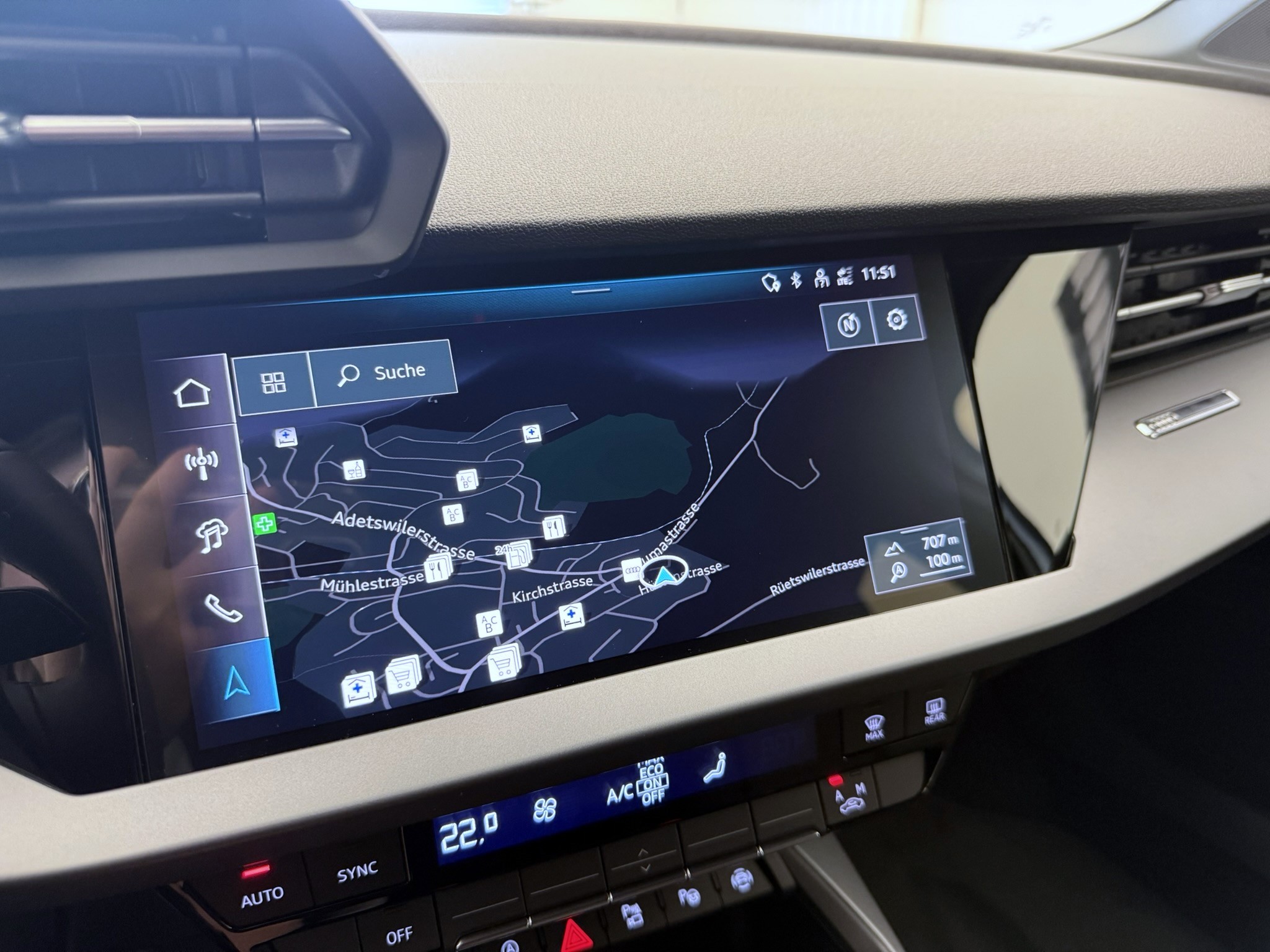 Assist: Adaptiver Fahrassistent mit Notfallassistent Garantie: Audi Swiss Service Package + (ASSP+) Paket: Assistenzpaket Fahren und Parken pro und Assistenzpaket Schutz- und Warnsysteme plus Sonnenschutzverglasung, abgedunkelt