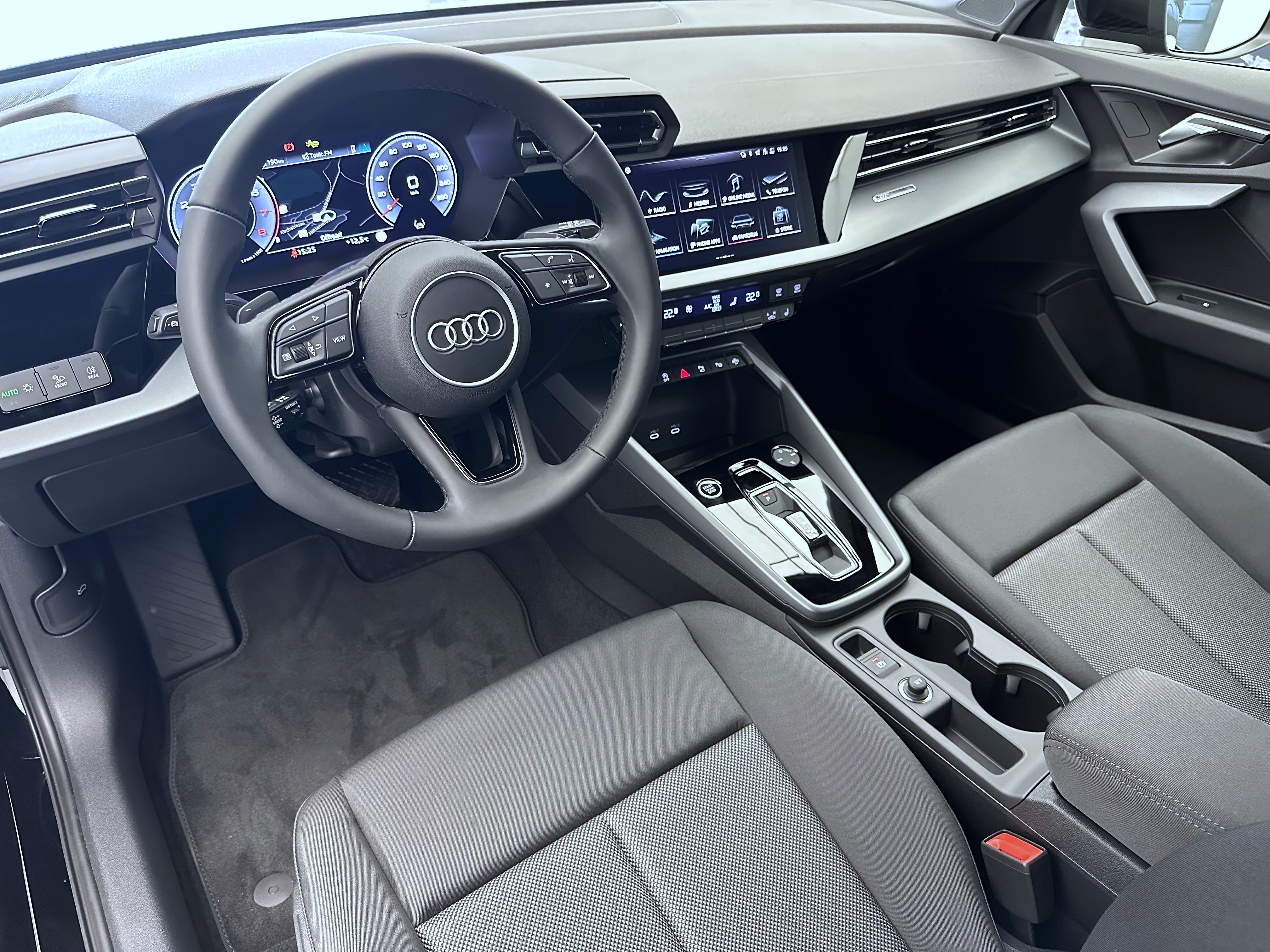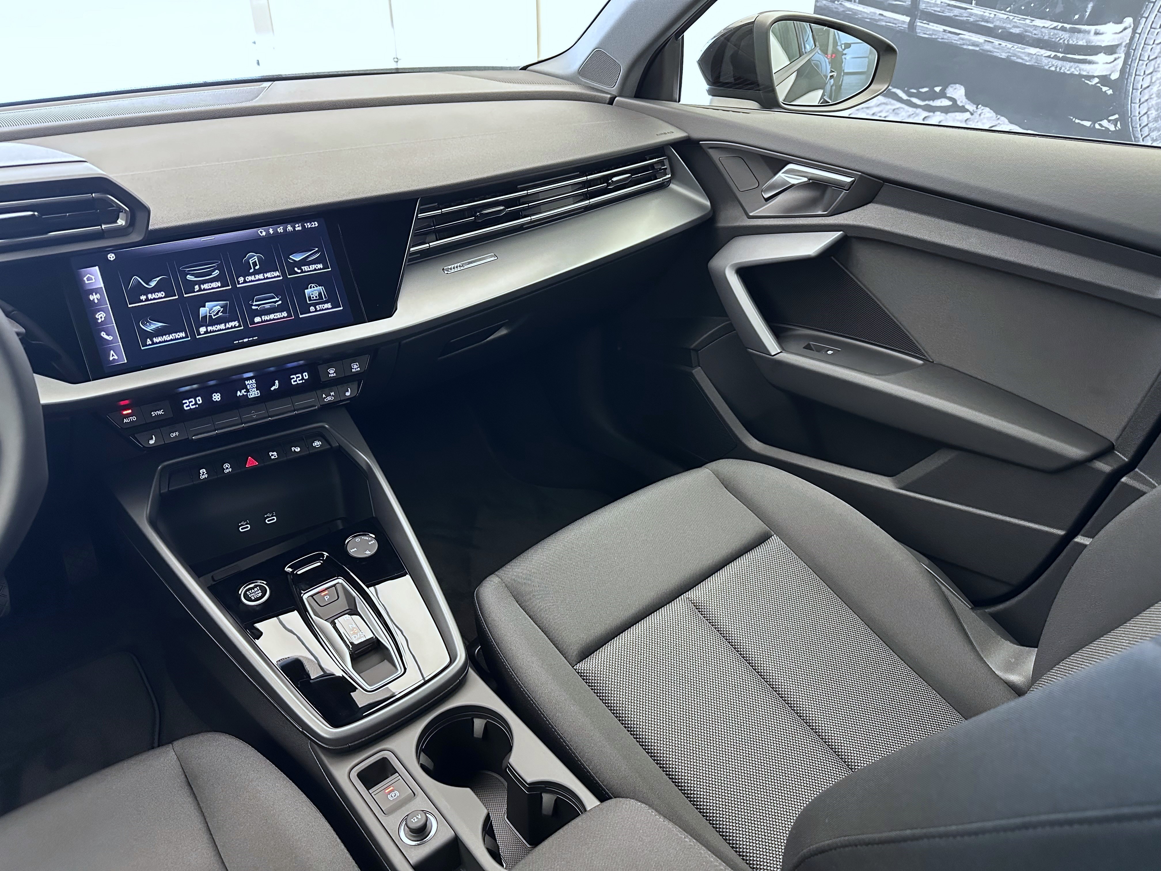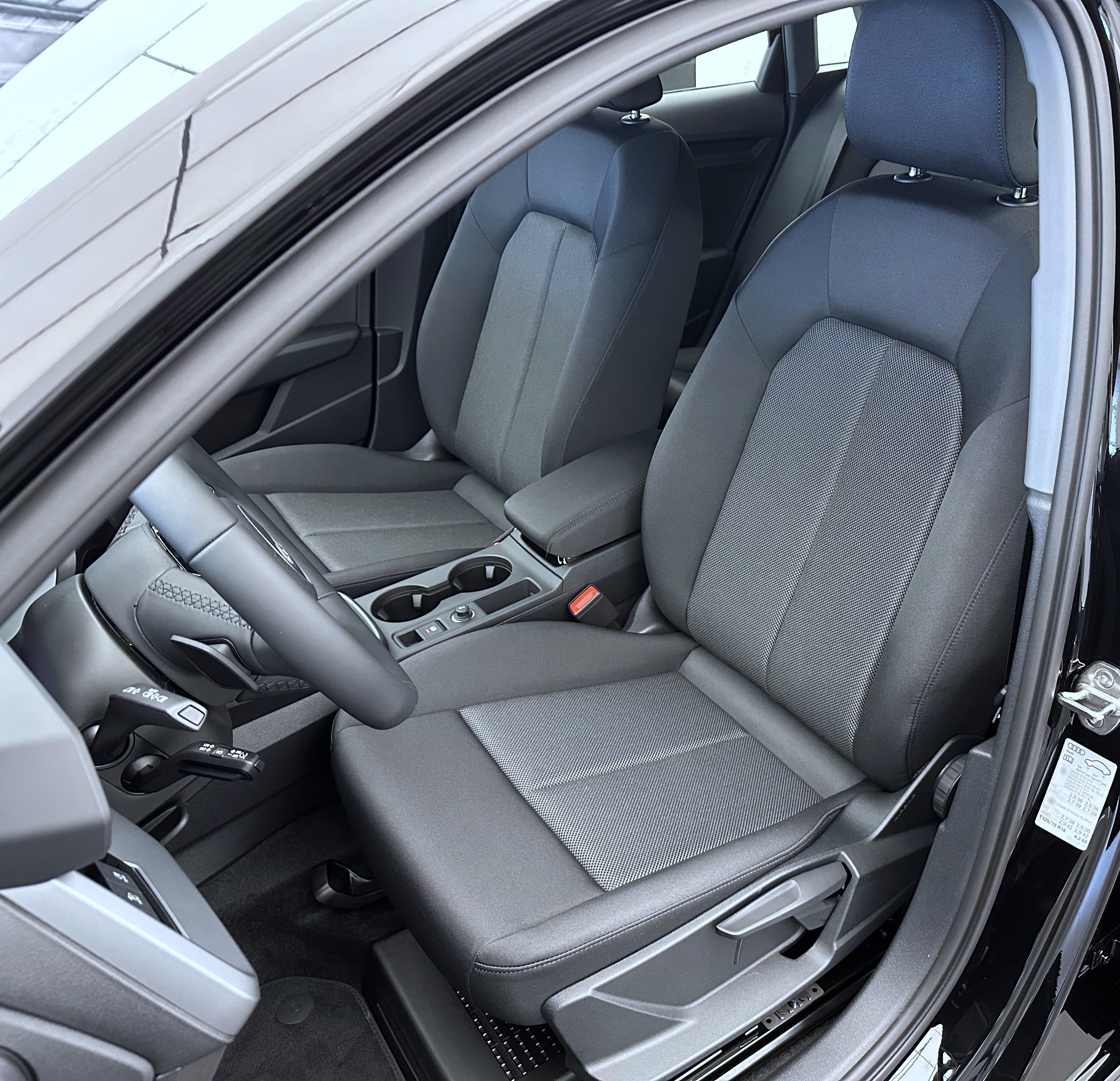 Airbag: Airbag Beifahrer deaktivierbar Assist: Audi pre sense front Assist: Ausweichassistent und Abbiegeassistent Assist: Kamerabasierte Verkehrszeichenerkennung Assist: Proaktiver Insassenschutz Front, Seite und Heck Assist: Traktionskontrolle Audi connect Notruf & Service mit Audi connect Remote & Control Aussenspiegel in Wagenfarbe Dekor: Dekoreinlage Feinlack vulkangrau Diffusor hinten schwarz matt genarbt Einleger der Lufteinlässe vorn schwarz matt genarbt Einleger im Diffusor in Selenitsilber Elektrische Fensterheber vorne Elektronisches Stabilitäts-Programm (ESP) Fensterschachtleisten in Schwarz Frontscheibe in Wärmeschutzverglasung Garantie: 2 Jahre ohne Kilometerbegrenzung (ab 1. Inv.) Getriebe: 7-Gang- Automat S tronic Interieur mit Normalsitzen in Stoff schwarz Kindersicherung, elektrisch Klima: 1-Zonen-Klimaautomatik mit Vorbereitung für weitere Klimafunktionen Komfortschlüssel ohne Safelock Kühlerschutzgitter schwarz matt genarbt Lackierung: Uni-Lackierung Lenkrad: Lederlenkrad im 3-Speichen-Design mit Multifunktion plus und Schaltwippen Licht: Fernlicht-Assistent Media: Audi Application Store und Smartphone-Interface Media: Audi connect Navigation & Infotainment plus Media: LTE-Unterstützung für Audi phone box Media: USB-Anschlüsse mit Ladefunktion im Fond Paket: Ablagen- und Gepäckraumpaket Paket: Ambiente Lichtpaket Paket: Assistenzpaket Fahren und Parken plus Paket: Infotainmentpaket Connectivity Paket: LED-Scheinwerfer und LED-Heckleuchten mit dynamischem Blinklicht Heck Räder: Reifendruck-Kontrollanzeige Räder: Reifenreparatur-Set (Tire Fit) Räder: Räder, 5-Doppelarm Sitze: Kindersitzbefestigung i-Sitze-konform auf Beifahrerseite und äusseren Fondsitzen, Sitze: Rücksitzlehne umklappbar Sitze: i-Size und Top Tether für die äusseren Fondsitze Wegfahrsperre elektronisch Zentralverriegelung mit Fernbedienung