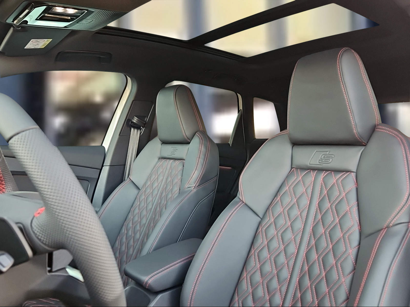 Entfall Modellbezeichnung und Leistungs- / Technologie-Schriftzug Farbnähte in Rot Audi Sport Garantie: Audi Swiss Service Package + (ASSP+) Gepäckraumklappe elektrisch mit sensorgesteuerter Gepäckraumentriegelung Lackierung: Metallic-Lackierung Lackierung: Volllackierung Licht: Audi Matrix LED-Scheinwerfer Media: SONOS Premium Soundsystem Paket: Ambiente Lichtpaket plus Paket: Assistenzpaket plus Paket: Assistenzpaket pro Paket: Infotainmentpaket Schweiz Paket: Interieur S line mit Sportsitzen in Leder / Kunstleder-Kombination schwarz Paket: Klimatisierungspaket Paket: Komfortpaket Schweiz Paket: Optikpaket schwarz plus Paket: S line Exterieur Paket Privacy-Verglasung (Scheiben abgedunkelt) Räder: Leichtmetallräder Audi Sport, 5-Arm-Rotor-Aero, schwarz, glanzgedreht - S line