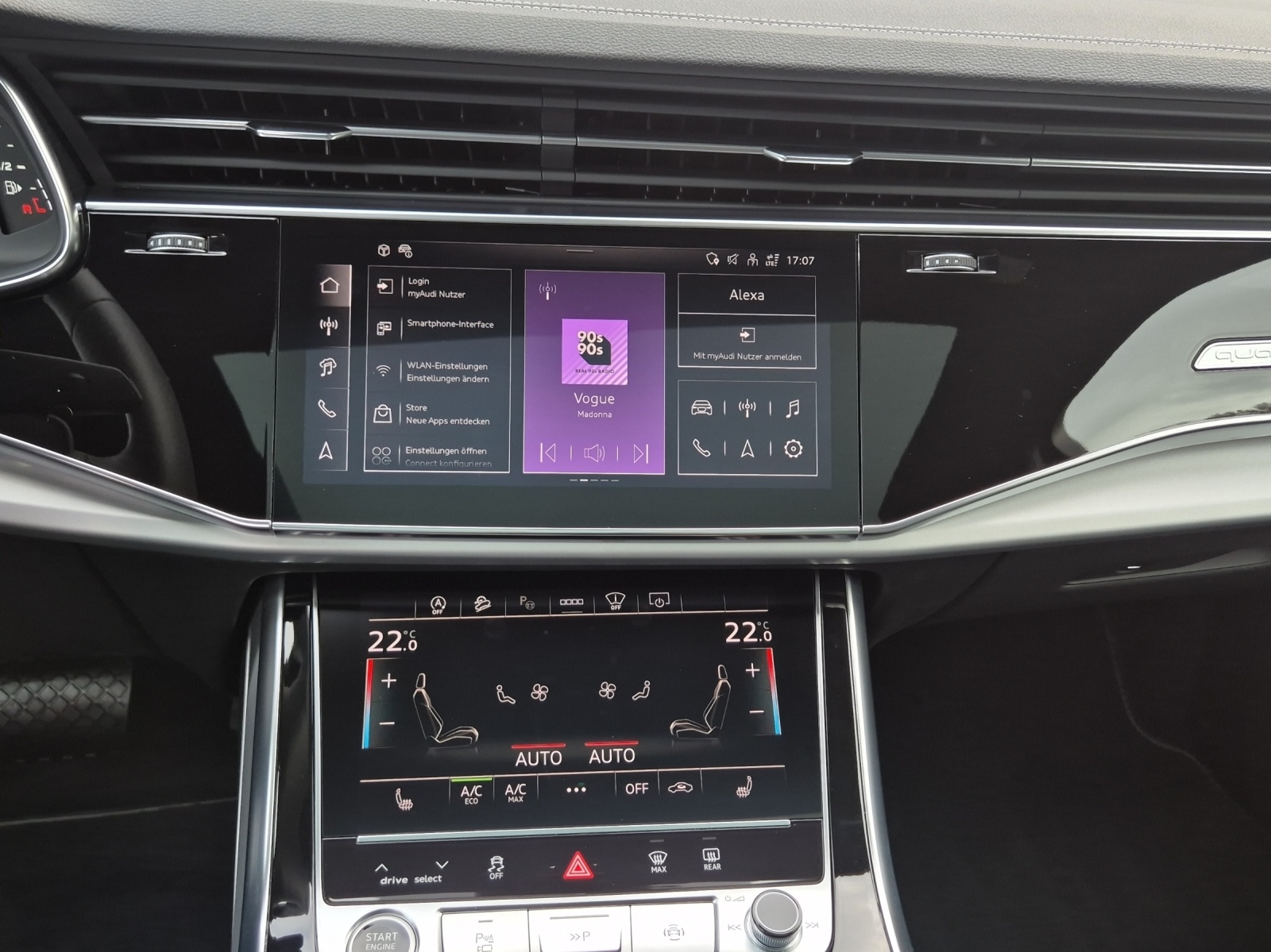 Dekor: Bedientasten schwarz glänzend mit haptischem Feedback und Aluminiumoptik Interieur