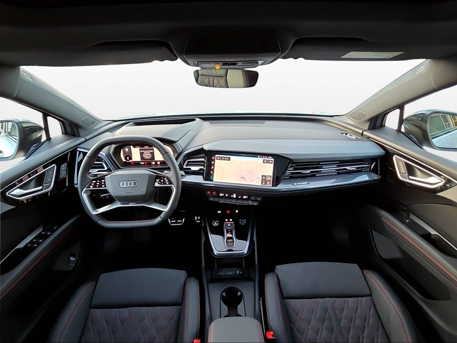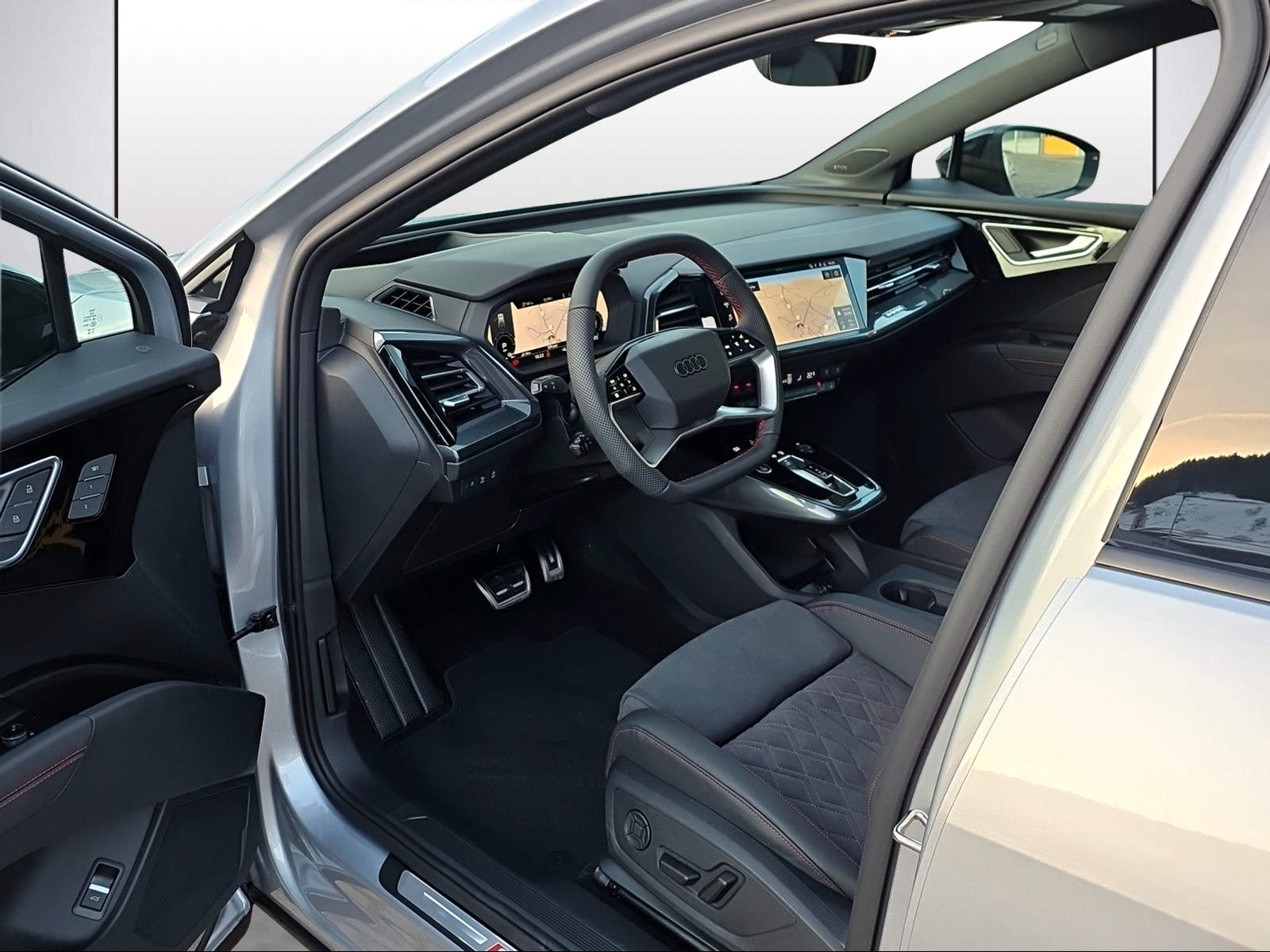 3-Punkt-Sicherheitsgurte auf allen Plätzen Airbag: Airbag für Fahrer und Beifahrer mit Beifahrer-Airbag-Deaktivierung Airbag: Seitenairbags vorn, mit Kopfairbag und Interaktionsairbag vorn Assist: Ablenkungs- und Müdigkeitserkennung Assist: Geschwindigkeitsregelanlage FOD: ACC möglich Assist: Geschwindigkeitsregelanlage mit einstellbarem Geschwindigkeitsbegrenzer Assist: Kamerabasierte Verkehrszeichenerkennung Assist: Proaktiver Insassenschutz Front, Seite und Heck Assist: Speedlimiter mit Intelligent Speed Assist Bottom line rundum in genarbter Optik Elektronisches Stabilitäts-Programm (ESP) Fahrwerk: Komfortfahrwerk Farbnähte in Rot Audi Sport Funkschlüssel, ohne Safelock Garantie: 2 Jahre ohne Kilometerbegrenzung (ab 1. Inv.) Getriebe: Direktantrieb, kein Getriebe Klima: Standklimatisierung Komfortmittelarmlehne vorne Lackierung: Uni-Lackierung Ladekabel Mode 3 Typ 2 32A Licht: Drittes Bremslicht Licht: Nebelschlussleuchte Media: Digitaler Radioempfang (DAB) Modellbezeichnung Technologieschriftzug Performance Typenzeichen Paket: Advanced Exterieur Paket: Glanzpaket mit horizontalen Fensterzierleisten in eloxiertem Aluminium Paket: Infotainmentpaket Schweiz Paket: Interieur S line mit Sportsitzen in Mikrofaser Dinamica / Kunstleder-Kombination schwarz Paket: Komfortpaket Schweiz Paket: Optikpaket schwarz plus Paket: Sicherheitspaket plus Räder: Reifendruck-Kontrollanzeige Räder: Reifenreparatur-Set (Tire Fit) Sitze: Interieur mit Normalsitzen in Stoff Index schwarz Sitze: Kindersitzbefestigung i-Size auf der Beifahrerseite und i-Size und Top Tether Verbandmaterial,Warndreieck und Warnveste Wegfahrsperre elektronisch Wärmeschutzverglasung grün getönt Zentralverriegelung mit Fernbedienung ohne Dacheinsatz (Volldach) ohne Ladekabel (Industriestecker) ohne Scheinwerferreinigungsanlage