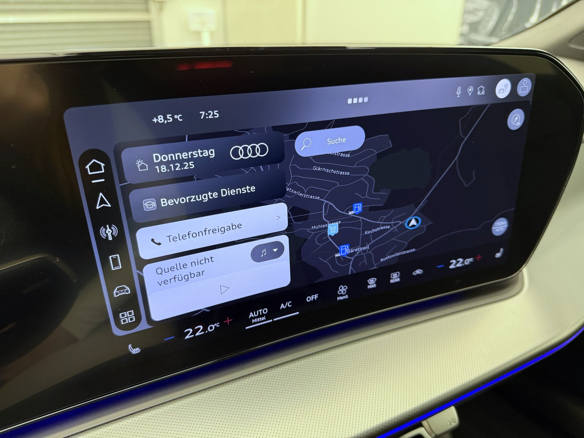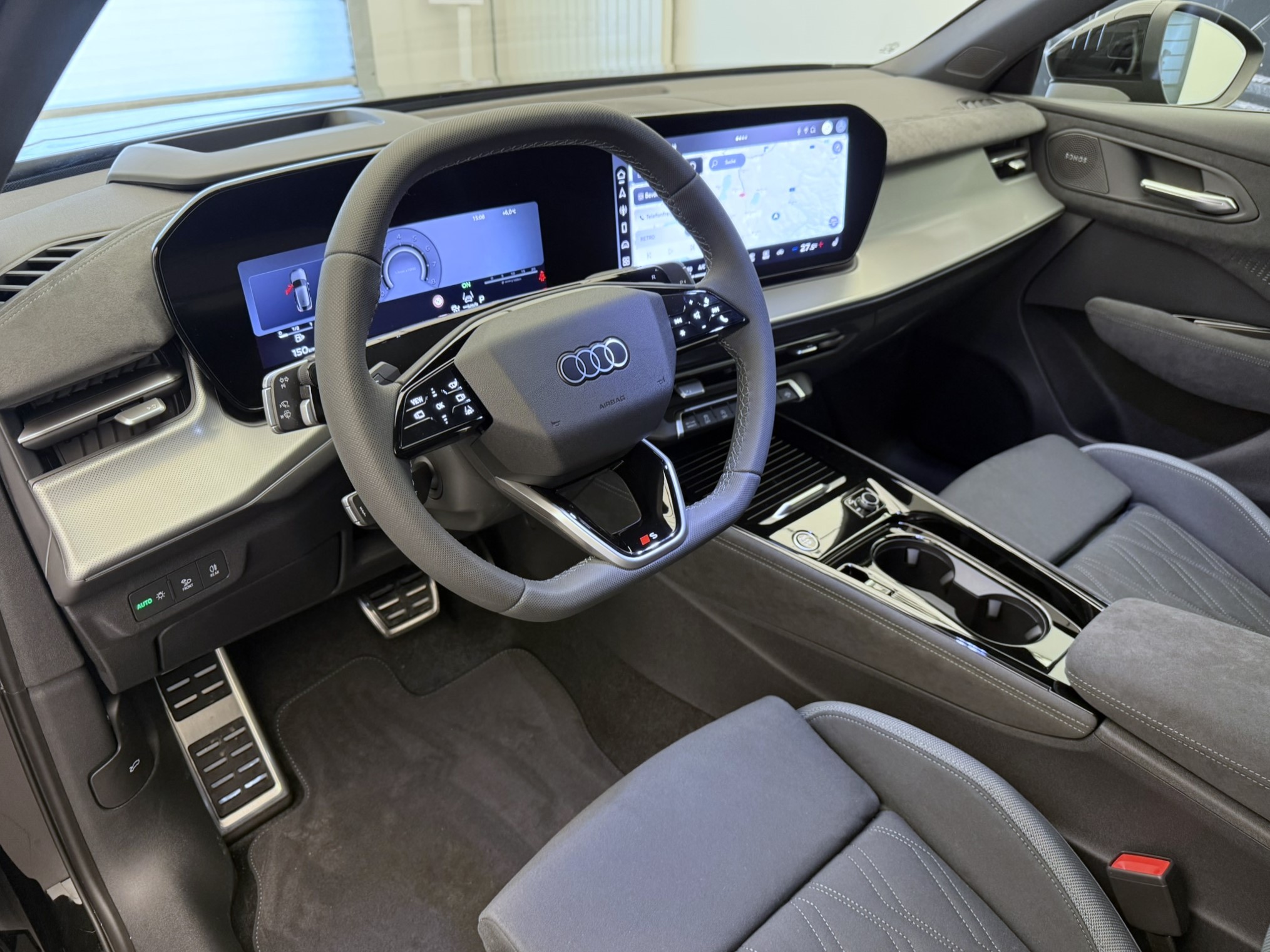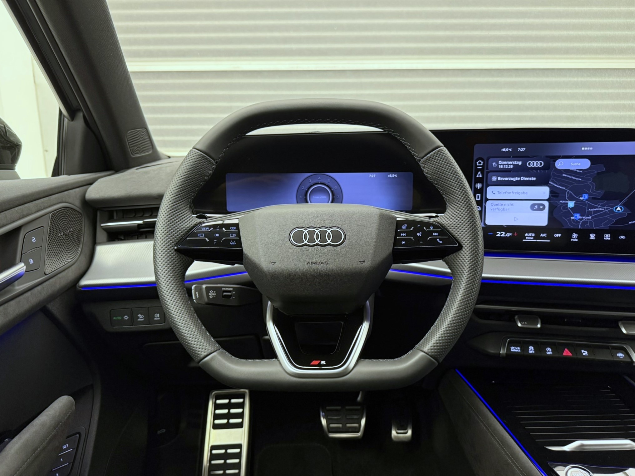 Assist: Parkassistent plus mit Einparkhilfe mit Umgebungsanzeige Garantie: Audi Swiss Service Package + (ASSP+) Komfortschlüssel ohne Safelock Lackierung: Metallic-Lackierung Lenkrad: Sportlenkrad, 3-Speichen, lederfrei, oben und unten abgeflacht mit Multifunktion Licht: Fernlicht-Assistent Media: Mobilfunk-Signalverstärker Typ 1 Media: Telefonablage mit induktiver Ladefunktion und Mobilfunk-Koppelantenne Paket: Assistenzpaket Fahren und Parken pro und Assistenzpaket Schutz- und Warnsysteme plus Paket: Digitale Matrix LED-Scheinwerfer mit LED-Heckleuchten pro Paket: Interieur S line mit Sportsitzen Mikrofaser schwarz Paket: Klimatisierungspaket plus Paket: MMI experience pro Paket: Optikpaket schwarz Paket: Paket Premium experience Panorama-Schiebedach (1-teilig) Räder: Räder Audi Sport, 5-Speichen-Tripod, schwarz metallic, glanzgedreht, abgedunkelt Sonnenschutzverglasung, abgedunkelt