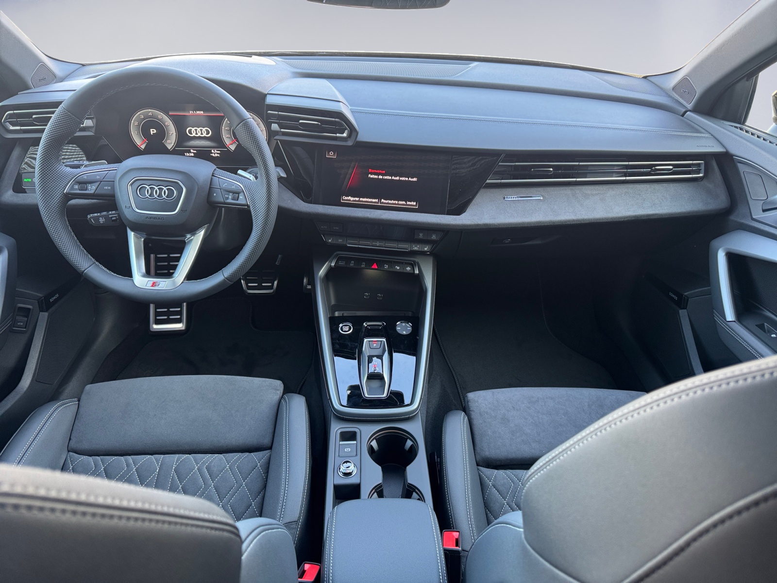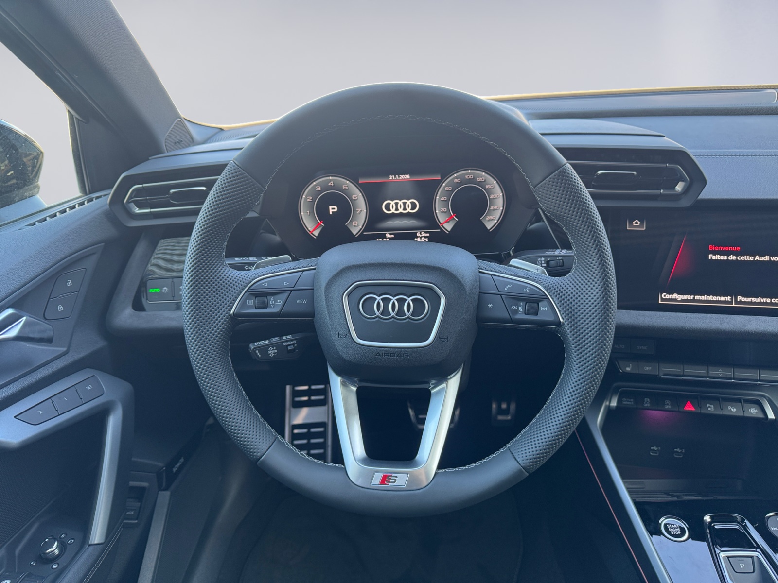 Assist: Alerte de changement de voie avec avertissement de sortie Assist: Assistant d'arrêt Assist: Assistant de conduite adaptative avec assistant d'urgence Assist: Caméras environnement Audi Garantie: 4 ans ou 80'000 km Lumière: Éclairage de seuil à LED avec projection du logo à lavant Pack: Intérieur S avec sièges sport, combinaison microfibre Dinamica/similicuir noir Pack: Le pack Esthétique noir plus Pack: Pack Assistance conduite et stationnement pro et pack Assistance systèmes de protection Pack: Pack Assistance systèmes de protection et davertissement plus Pack: Pack Premium Plus A3 Sportback / allstreet Pack: Pack climatisation plus Pack: Pack éclairage dambiance pro Pack: Phares Matrix LED, feux arrière LED et lave-phares Roues: Jantes Audi Sport, design S multibranches, noir anthracite, finition brillante Sièges: dossier de siège arrière, partiellement rabattable Suspension: Adaptation du système de freinage Suspension: châssis sport avec max. Jantes 19 " Système de nettoyage des phares Vitrage de contrôle solaire, obscurci