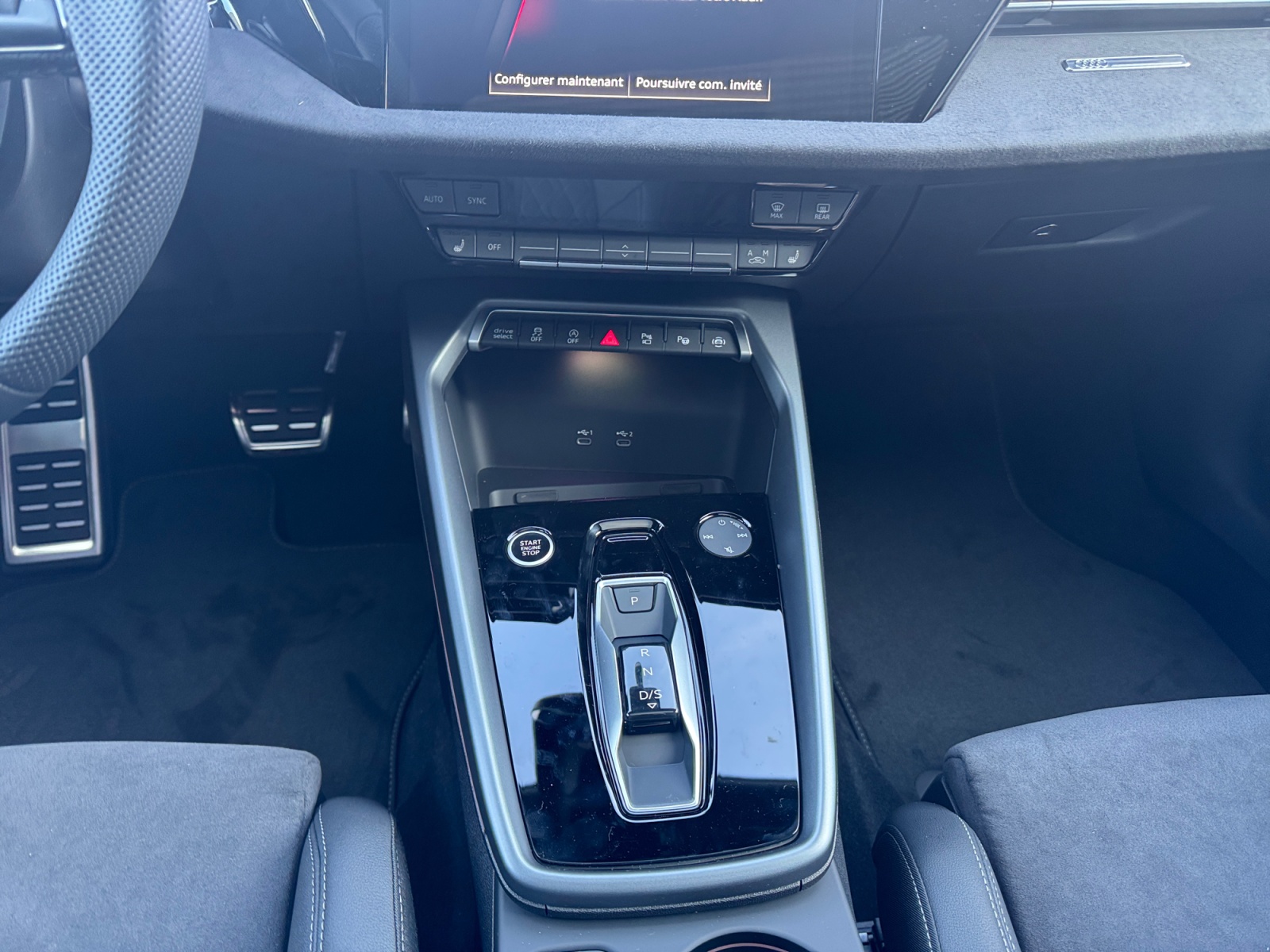 Accents du diffuseur aspect chrome mat anthracite Airbag: Airbag passager désactivable Airbag: airbag conducteur Appel durgence Audi connect et service avec Audi connect Remote & Control Assist: Assistant dévitement de collision et de changement de direction Assist: Audi pre sense front Assist: Contrôle de traction Assist: Reconnaissance des panneaux de signalisation par caméra Assist: Système proactif de protection des passagers à lavant, sur le côté et à larrière Audi connect Navigation & Infotainment plus Baguettes dappuis de vitres en noir Boîte: automatique S tronic à 7 vitesses Capteur de pluie et lumière Clima: Climatisation automatique 1 zone avec préparation pour dautres fonctions de climatisation Clé de confort sans Safelock Dossier des sièges arrière rabattable Décor: Application décorative en vernis fin gris Volcan Garantie: 2 ans / kilométrage illimité Grille de calandre S en noir titane Insert des prises dair aspect chrome mat anthracite Intérieur avec sièges standard en tissu noir Lumière: Assistant de feux de route Lève-vitres électrique avant Mèdias: Audi Application Store et interface pour smartphone Mèdias: Ports USB avec fonction de chargement à l'arrière Mèdias: Prise en charge LTE pour la cabine téléphonique Audi Pack: Pack Assistance conduite et stationnement plus Pack: Pack Info-divertissement Connectivity Pack: Pack éclairage dambiance Pack: Phares avant LED et feux arrière LED avec clignotants arrière dynamiques Pare-brise avec vitrage athermique Programme électronique de la stabilité (ESP) Roues: Affichage du contrôle de la pression des pneus Roues: Jantes, design à 5 branches en V Roues: Set de réparation pour les pneus (Tire Fit) Rétroviseurs ext. couleur carosserie Seuils de porte avec inserts en aluminium à lavant Seuils de portes aspect chrome mat anthracite Sièges: Fixation de siège enfant conforme i-Size sur les sièges passager et arrière extérieurs, Sièges: i-Size et Top Tether pour les sièges extérieurs à larrière Suspension: Châssis sport Système antiblocage des roues (ABS) Sécurité enfant à commande électrique Verrouillage centralisé à télécommande Volant: volant en cuir style 3 branches avec palettes multifonction plus