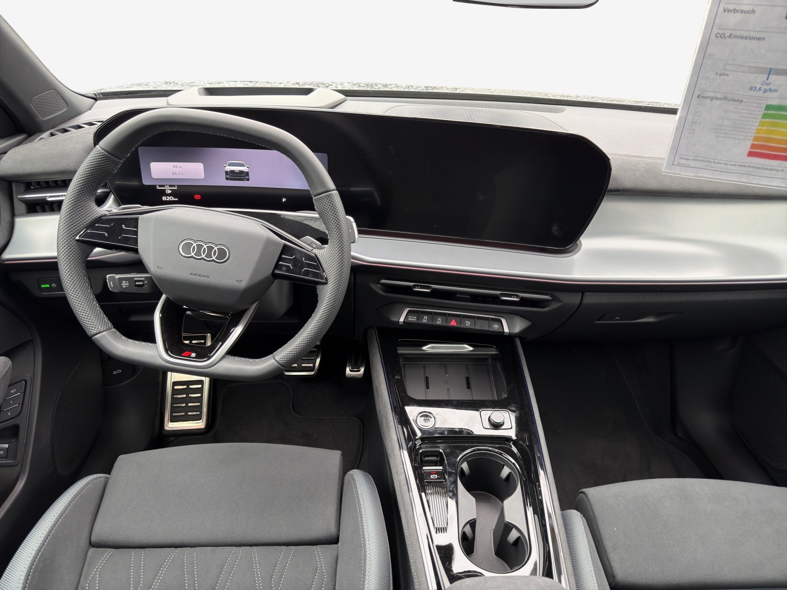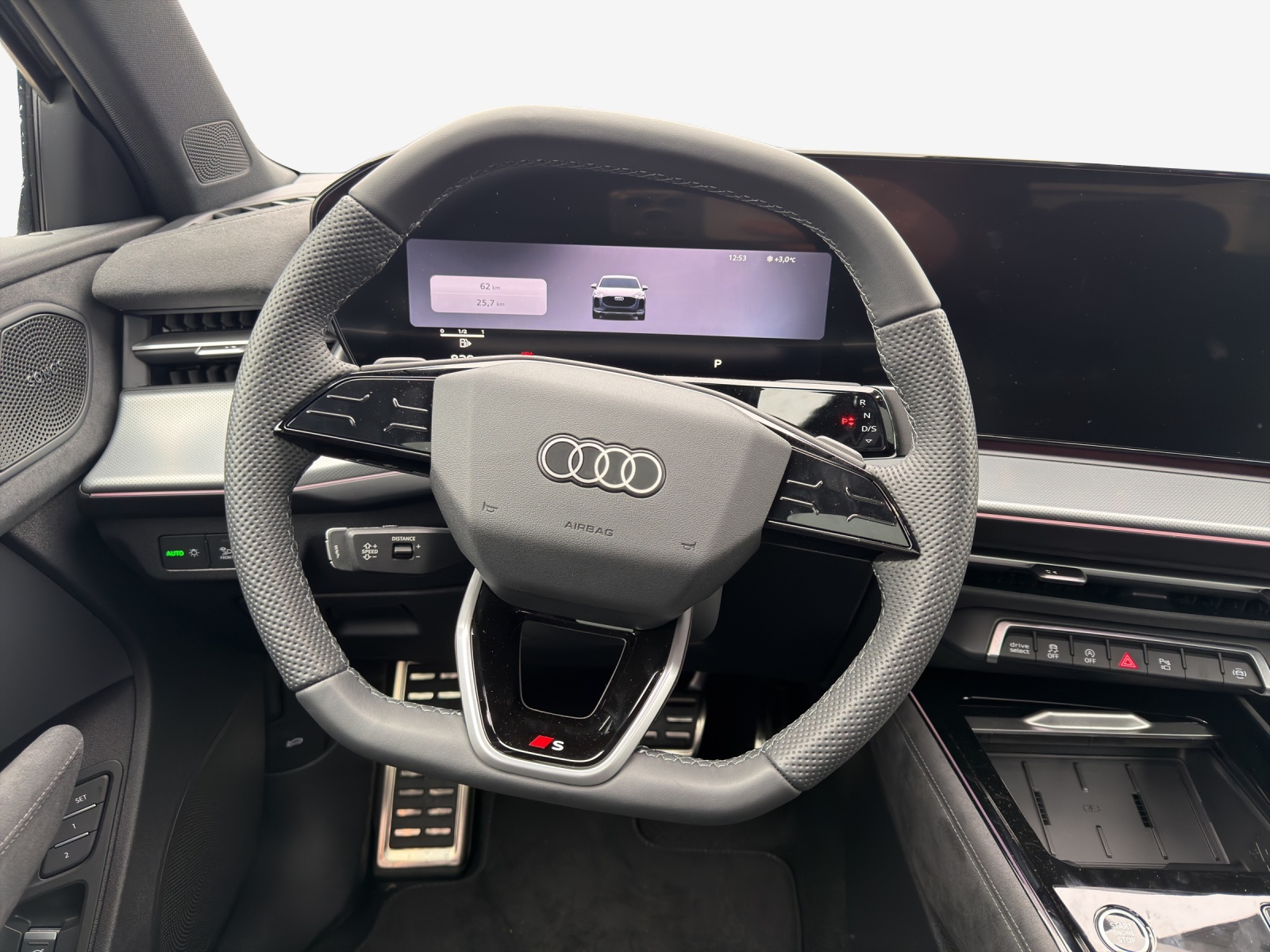 Airbag latéral à lavant et à larrière, avec airbag latéral de tête et airbag interactif à lavant Assist: Assistant de stationnement plus avec aide au stationnement avec affichage de lenvironnement Assist: Bergabfahrassistent Clé de confort sans Safelock Licht: Fernlicht-Assistent Lumière: Feux arrière numériques OLED Mèdias: Amplificateur de signal de téléphonie mobile de type 1 Mèdias: Emplacement pour téléphone avec fonction de recharge inductive Pack: Intérieur S line avec sièges sport en microfibre noire Pack: Pack Assistance Conduite et Stationnement pro et Pack Assistance Systèmes de Protection et d' Pack: Pack climatisation plus Pack: Pack de fonctionnalités Pack: Pack expérience premium Pack: Phares à LED matriciels numériques avec feux arrière à LED, Peinture: Peinture nacrée Gris Daytona Roues: Jantes Audi Sport, tripode à 5 branches, noir métallisé, brillant, foncé Scheinwerfer-Reinigungsanlage Toit ouvrant panoramique (en 1 partie) Vitrage de contrôle solaire, obscurci Volant: Volant sport en cuir, à 3 branches, aplati en haut et en bas avec multifonction, Vorbereitung für Anhängevorrichtung