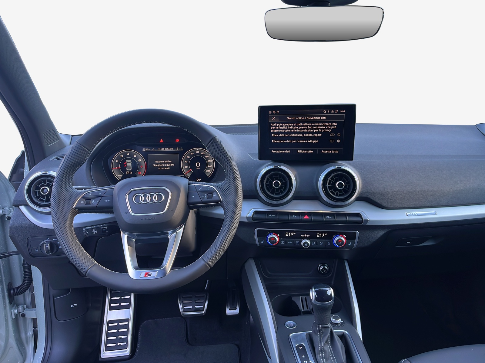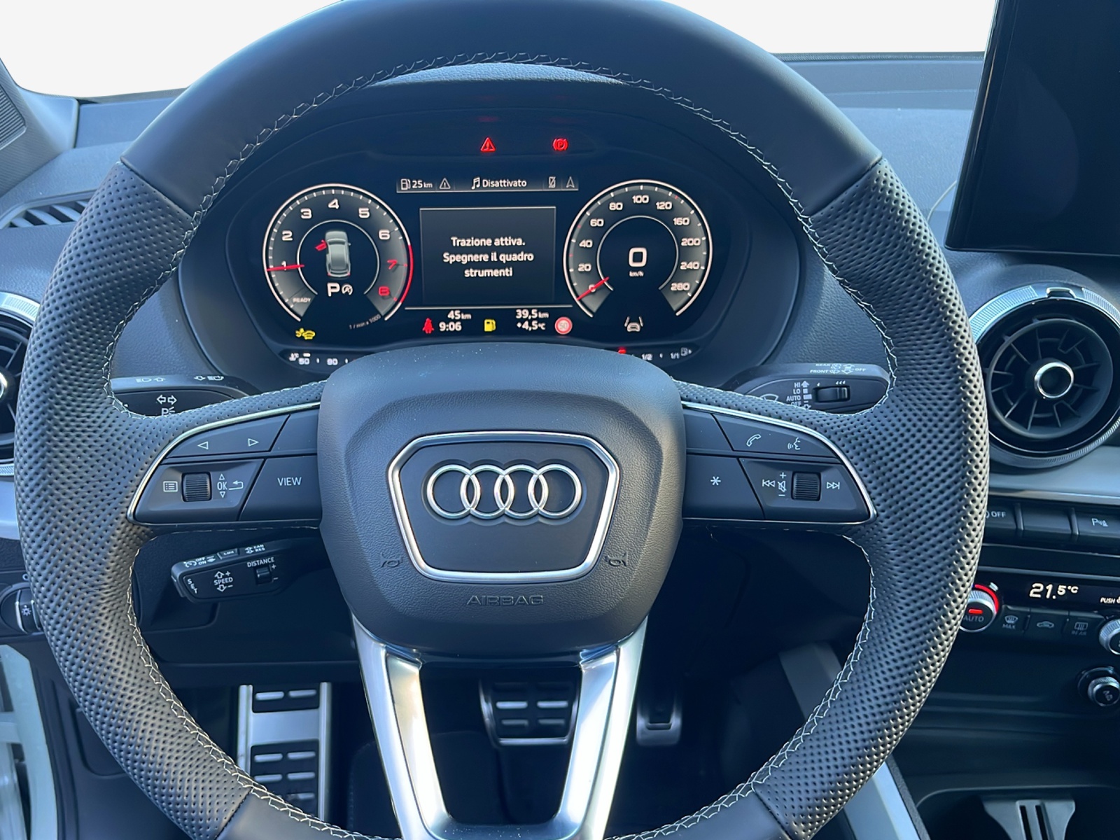 Assist: Adaptiver Geschwindigkeitsassistent Assist: Audi pre sense front Capot de coffre à ouverture et fermeture électriques Clima: Climatisation automatique confort Clé confort (sans verrouillage de sécurité) Dekor: Dekoreinlagen in Aluminium matt gebürstet Intérieur S line avec sièges sport en combinaison tissu/cuir Noir/Gris Lackierung: Metallic-Lackierung Lame en couleur de la carrosserie Mèdias: Prise en charge LTE pour la cabine téléphonique Audi Médias: système de navigation MMI Plus avec MMI touch Pack: Forfait Excellence Q2 Pack: Pack Assistance conduite 2 Pack: Pack optique noir plus noir brillant pour symboles de type et anneaux Audi Pack: Pack technologique Q2 Roues: Jantes en alliage léger, 5 branches segmentées (style S) Sièges: Sièges AV chauffants Sièges: dossier de siège arrière, partiellement rabattable Suppression de la désignation du modèle et du lettrage de service / technologie Vitrage Privacy (glaces assombries)