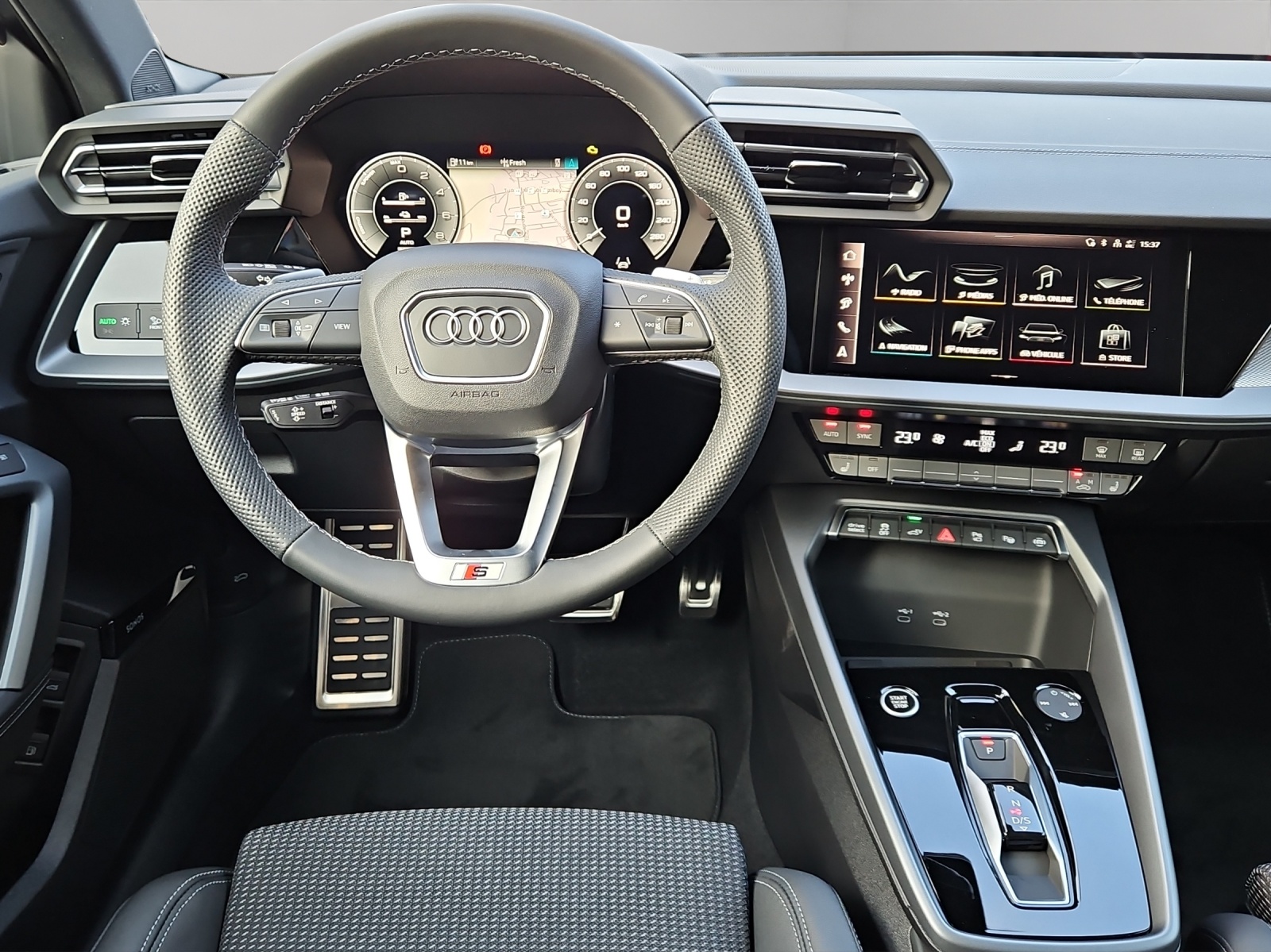 [A41] Garantie: Audi Swiss Service Package+ (ASSP+) - Réparation 3 ans ou 100000 km, entretien 10 ans ou 100000 km - Le premier réalisé s'applique [PX2] Phares à LED avec feux arrière à LED et clignotants séquentiels arrière dynamique [6Y] gris daytona nacré [EI] noir, coutures gris rocher, ciel noir [6FA] Rétroviseurs extérieurs en couleur carrosserie [5MJ] Décor: Application décorative en aluminium Spektrum foncé Véhicule Suisse / Services gratuits 10 ans ou 100'000 kms / Garantie usine 5 ans ou 100'000 kms / Leasing et reprise toutes marques possible / Remise flotte applicable