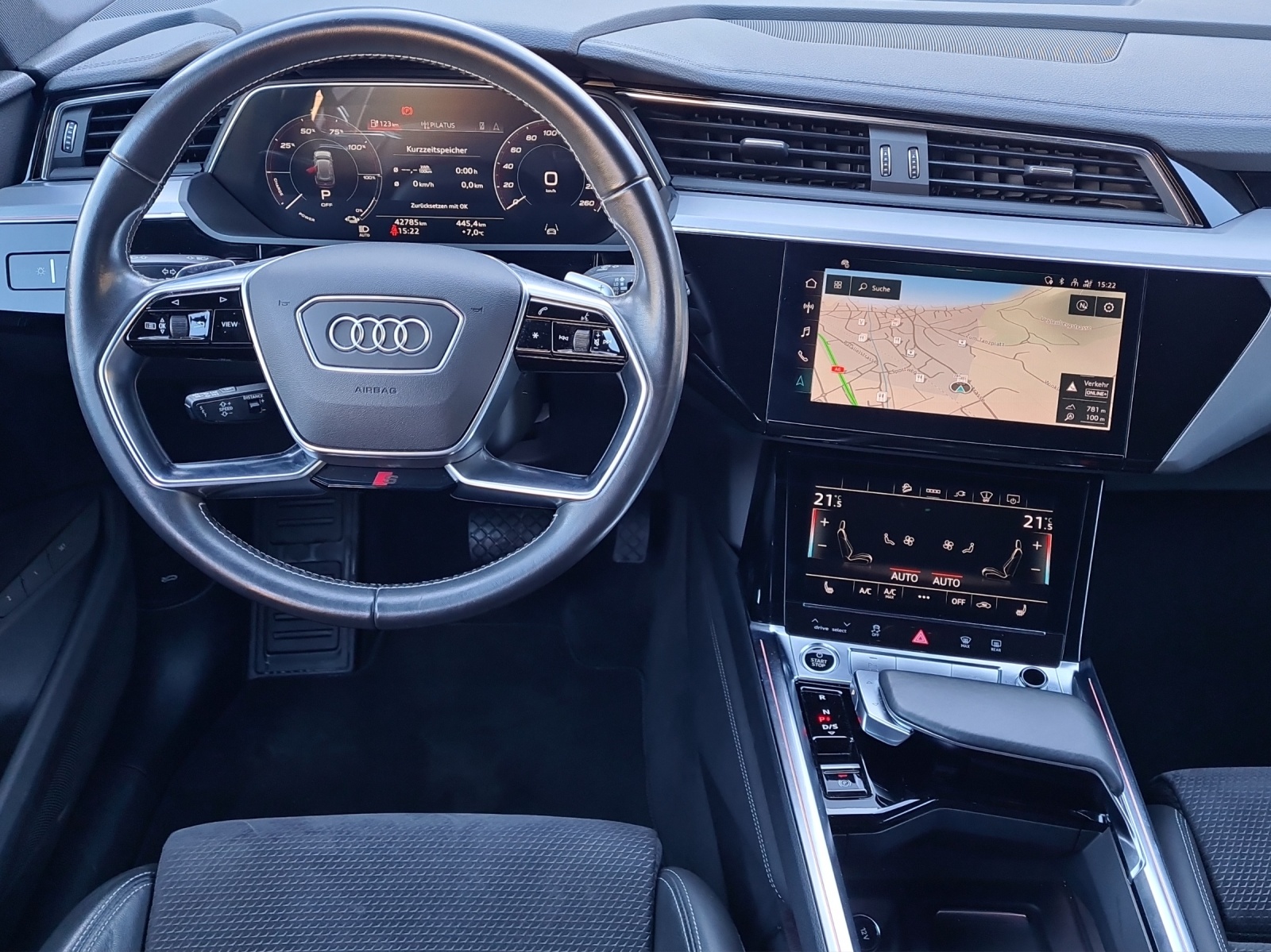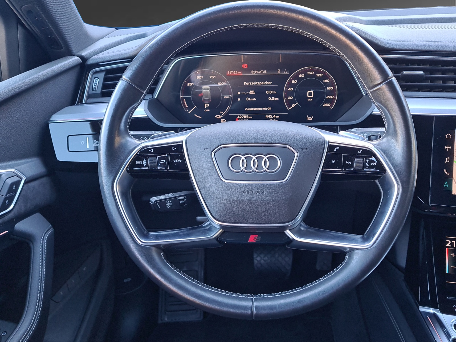 Dotazione di serie Airbag: Airbag Beifahrer deaktivierbar Airbag: Seitenairbags vorne Airbag: Window-Kopfairbags Ancoraggio per seggiolino bambini ISOFIX e Top Tether per i sedili posteriori Assetto: Adaptive air suspension Assist: Audi pre sense front Assist: Impianto di regolazione della velocità incluso limitatore di velocità Assist: Spurverlassenswarnung Audi connect Notruf & Service mit Audi connect Remote & Control Aussenspiegel elektrisch einstell- und beheizbar Capot de coffre à ouverture et fermeture électriques Caricabatterie a bordo fino a 11 kW (AC) Cassetta pronto soccorso e triangolo di segnalazione Cavo di ricarica modalità 3, 22 kW Cerchi in lega leggera con design a 5 razze Clima: Climatizzazione a vettura ferma Clima: climatizzatore automatico comfort a 2 zone Copertura del vano bagagli (manuale) Dachhimmel in Stoff mondsilber Decor: Inserti decorativi vernice fine grigio grafite Denominazione del modello e scritta potenza / tecnologia Einstiegsleisten mit Aluminiumeinlegern vorne und hinten Garantie: 2 Jahre ohne Kilometerbegrenzung (ab 1. Inv.) Kindersitzvorrichtung ISOFIX Beifahrerseite Lackierung: Uni-Lackierung Luce: Fari a LED con predisposizione per ulteriori funzioni luminose Lunghezza cavo di ricarica standard Media: Audi connect Navigation & Infotainment Media: Audi music interface Media: Bluetooth-Schnittstelle Media: Digitaler Radioempfang (DAB) Parabrezza in vetro acustico Paraurti advanced in verniciatura a contrasto Poggiabraccia centrale anteriore Presa di corrente da 12 volt Protezione sottoscocca anteriore appena accennata e diffusore posteriore in Argento Selenite opaco Räder: Reifendruck-Kontrollanzeige Räder: Reifenreparatur-Set (Tire Fit) Schienale posteriore reclinabile Sistema di ausilio al parcheggio plus con visualizzazione dei dintorni dellauto Sistema di avvertimento acustico del veicolo (AVAS) Sistema di ricarica e-tron compatto Sistema navigazione MMI Plus Sitze: Vordersitze höhenverstellbar Sonnenblende Fahrer und Beifahrerseite mit beleuchtetem Spiegel Specchietti esterni colore carrozzeria Specchietto interno fotocromato Spina domestica tipo J (CH) Spina industriale CEE 16A, 400V, lunga e diritta per il sistema di ricarica e-tron Tappetini anteriori e posteriori Tasti di comando neri opachi Verniciatura: Bottom line con verniciatura a contrasto Volante in pelle a razze doppie con multifunzione e bilancieri