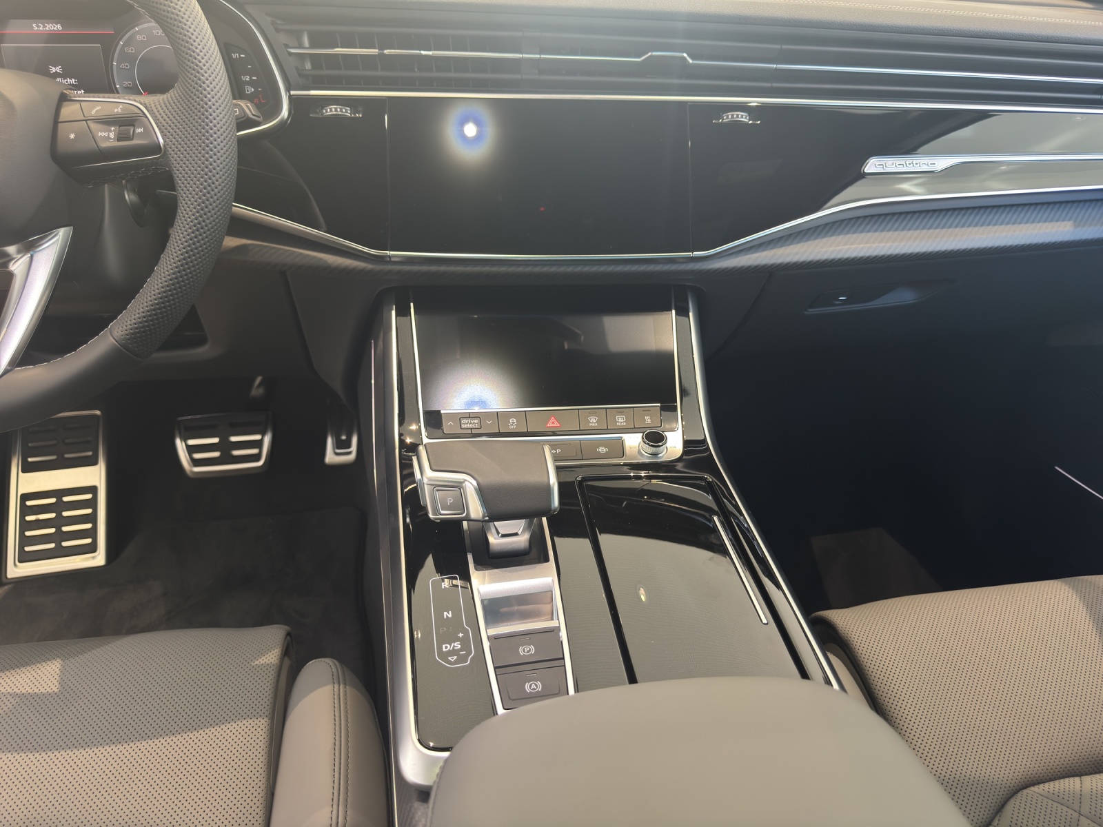 Adaptive Scheibenwischer mit integrierten Waschdüsen Akustikverglasung für Tür- und Seitenscheiben Anhängevorrichtung inklusive Anhängerassistent Audi virtual cockpit plus Aussenspiegel rechts und links beheizt, elektrisch verstell-/ und einklappbar mit Memory Dachhimmel in Mikrofaser Dinamica schwarz Dekor: Dekoreinlagen Aluminium matt gebürstet mit Linearprägung silber Dekor: Dekoreinlagen Carbon Köper matt Frontscheibe mit Klimakomfort- und Akustikverglasung mit grauem Colorstreifen Klima: Ionisator und Aromatisierung Klima: Komfortklimaautomatik 4-Zonen Klima: Standheizung und -lüftung Komfortmittelarmlehne vorn Lackierung: Metallic-Lackierung Lenkrad: Lederlenkrad im 3-Speichen-Design mit Multifunktion, Schaltwippen und Lenkradheizung Lenkrad: Lenkradeinstellung elektrisch Licht: Digitale OLED-Heckleuchten Licht: Einstiegs-LED mit Projektion vorn und hinten Licht: HD Matrix LED-Scheinwerfer mit Audi Laserlicht, LED-Heckleuchten Licht: Scheinwerfer-Reinigungsanlage Media: USB-Anschlüsse mit Ladefunktion im Fond Paket: Ambiente-Lichtpaket plus Paket: Assistenzpaket Plus Paket: Assistenzpaket Stadt Paket: Assistenzpaket Tour Paket: Optikpaket schwarz plus Pedalerie und Fussstütze in Edelstahl Polster : Leder Valcona mit S-Prägung und Rautensteppung Polster: Mikrofaser Dinamica Frequenz/Leder-Kombination mit S-Prägung Räder: Reifendruckkontrollsystem Räder: Räder Audi Sport, Vielspeichen S-Design, schwarz metallic, glanzgedreht Schienensystem mit Fixierset Sitze: Sitzbelüftung und Massagefunktion vorne Sitze: Sitzheizung vorne und hinten Sitze: Sportsitze plus vorne Sonnenschutzverglasung, abgedunkelt