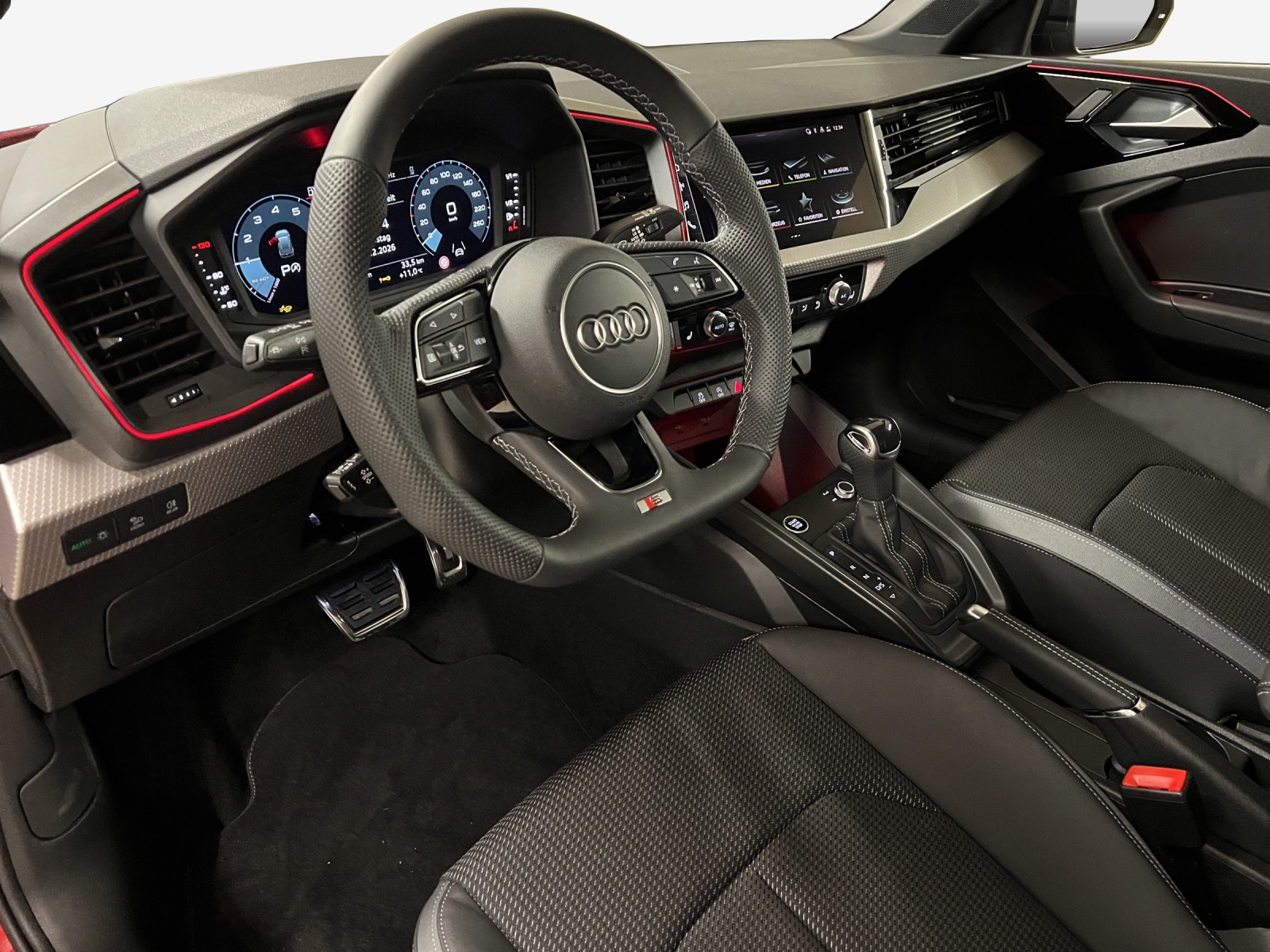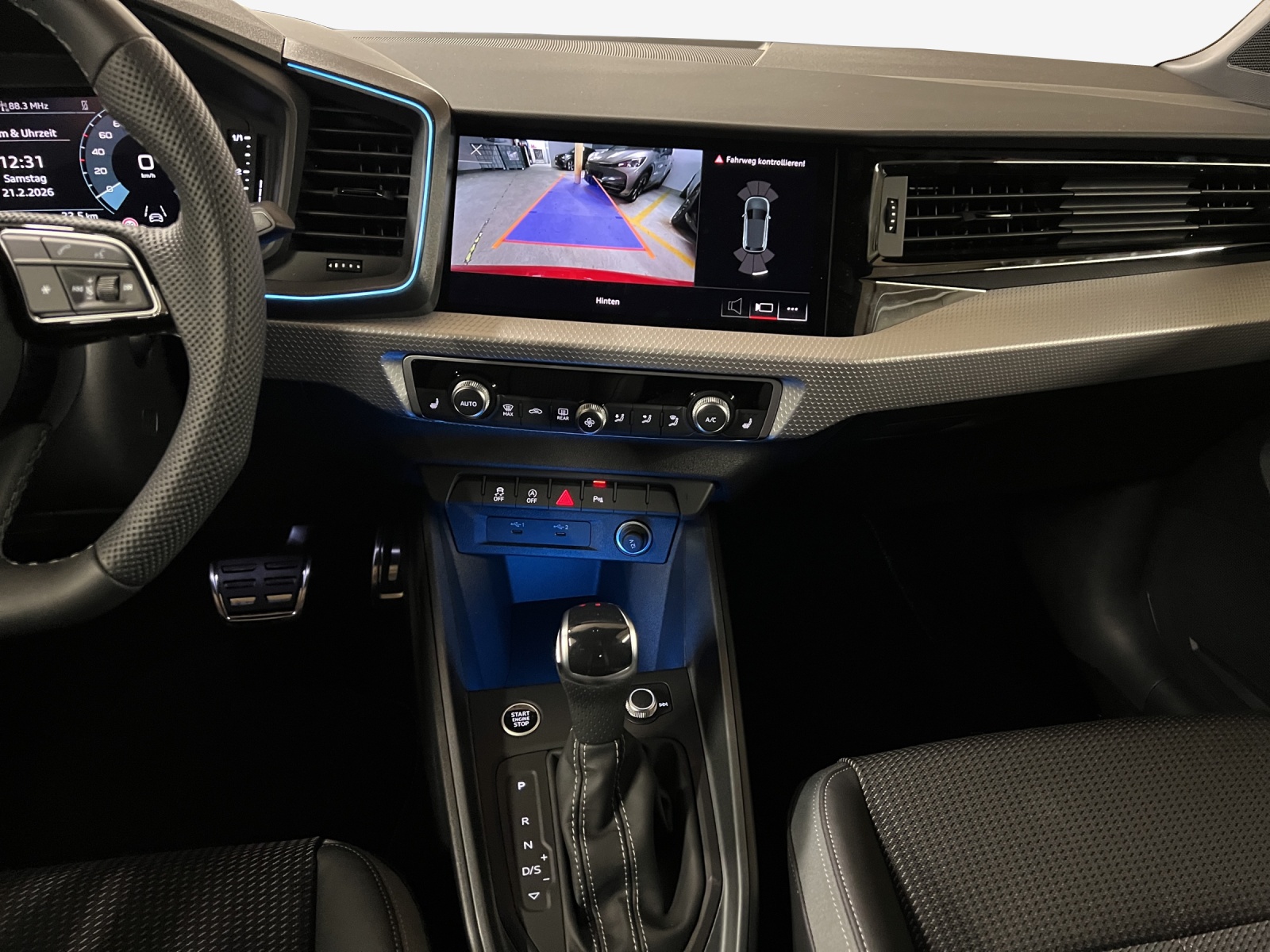 Assist: Adaptiver Geschwindigkeitsassistent Assist: Einparkhilfe plus Assist: Spurwechselwarnung Dachhimmel in Stoff schwarz Entfall Leistungs- / Technologie-Schriftzug Garantie: Audi Garantie: 4 Jahre oder 80'000 km (ab 1. Inv.) Garantie: Audi Swiss Service Package + (ASSP+) Klima: 2-Zonen-Komfortklimaautomatik Komfortschlüssel (ohne Safelock) Lackierung: Dach in Kontrastfarbe Lackierung: Metallic-Lackierung Lenkrad: Sportkontur-Lederlenkrad im 3-Speichen-Design unten abgeflacht mit Multifunktion plus Licht: Fernlicht-Assistent Paket: Kontur / Ambiente Lichtpaket, mehrfarbig Paket: Optikpaket schwarz plus Paket: S line mit Sportsitz (Stoff Puls / Kunstleder mono.pur 550- Kombination schwarz) Räder: Aluminium-Gussräder - 18 Zoll - Audi Sport, 5-Y-Speichen, schwarz metallic, glanzgedreht, Sonnenschutzverglasung abgedunkelt