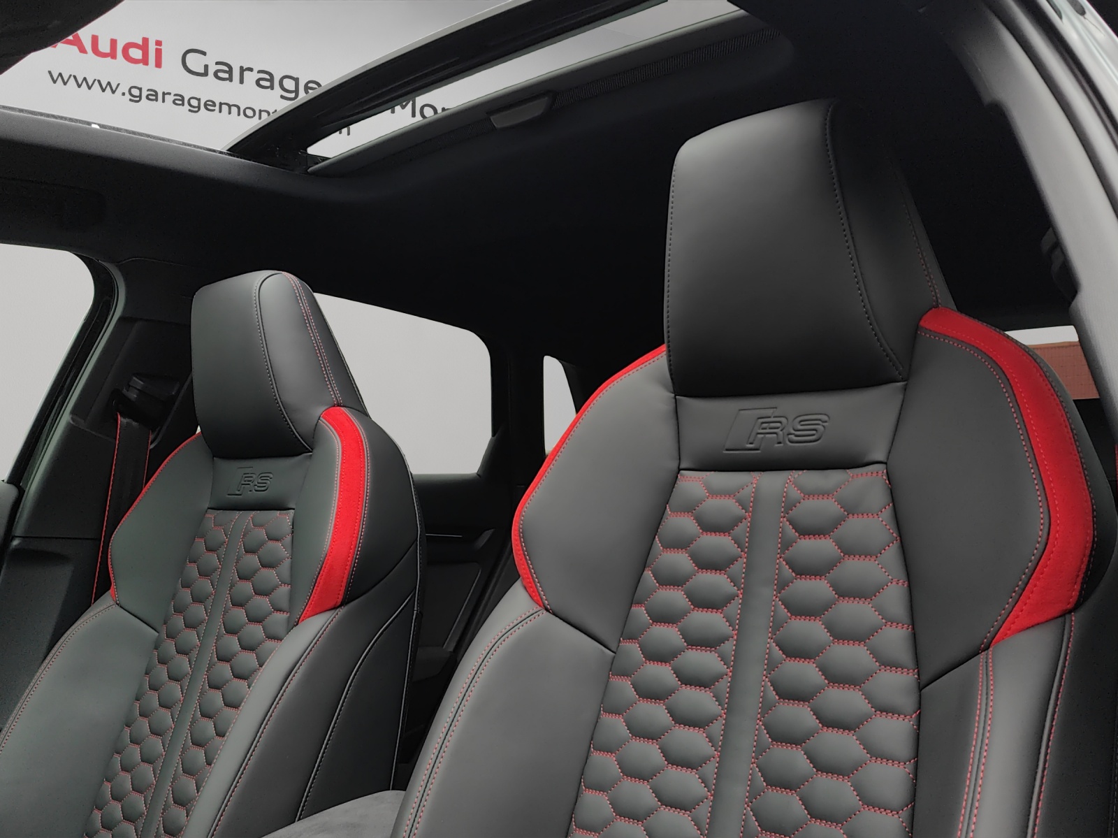 Assist: Assistant de conduite adaptative avec assistant d'urgence Assist: Spurwechselwarnung mit Ausstiegswarnung und Querverkehrassistent hinten Audi Garantie: 5 ans ou 100'000 km Aussenspiegel in Wagenfarbe Décor: inserts décoratifs et surfaces d'accent Carbone Atlas mat Garantie: Audi Swiss Service Package+ (ASSP+) Lumière: Phares Matrix LED, feux arrière LED et dispositif de lave-feux Pack: Pack Design RS rouge plus Pack: Pack Premium Plus Sportback Pack: Pack assistance conduite et stationnement pro et pack assistance Systèmes de protection Pack: Pack climatisation plus Pare-brise avec vitrage athermique Roues: Jantes, 10 branches croisées, noir métallisé Sitze: 4-Wege-Lendenwirbelstütze für die Vordersitze Sièges: Sièges AV à réglage électrique Sièges: Supporto lombare a regolazione pneumatica con funzione massaggio per i sedili anteriori Suspension: Châssis adaptatif avec Audi drive select Suspension: Système de freinage RS avec étriers de frein, rouge Toit panoramique en verre Vitrage de contrôle solaire, obscurci Éléments extérieurs RS en noir brillant