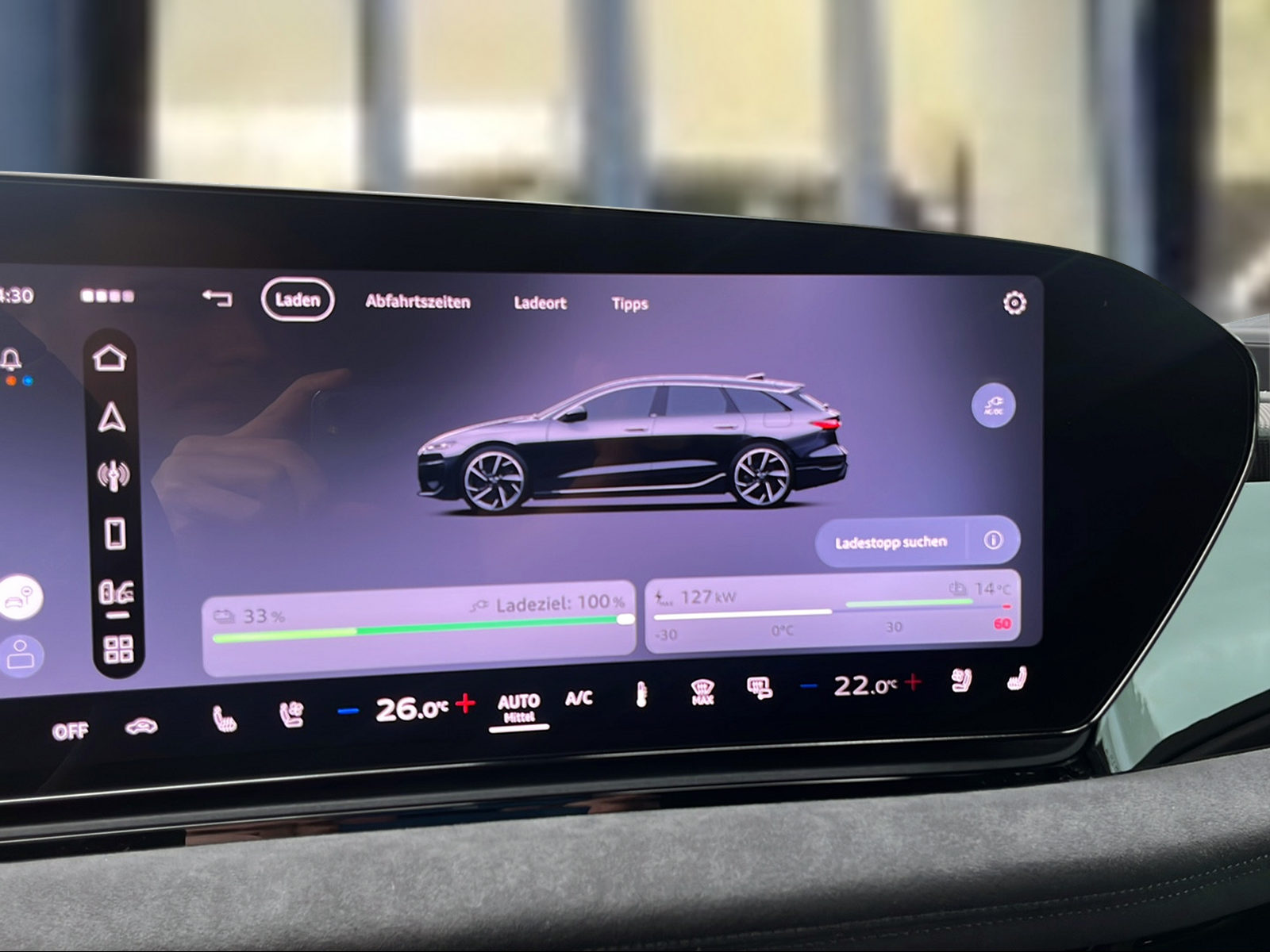 Akustikverglasung für Türscheiben vorn Assist: Audi drive select assistant Assist: Parkassistent pro mit Remote-Funktionalität Dekor: Dekoreinlagen Carbon Quadrat Struktur Dekor: Interieurapplikationen Vanadiumoptik Garantie: Audi Swiss Service Package + (ASSP+) Insassenerkennung im Fond Lackierung: Metallic-Lackierung Lenkrad: Lenkradeinstellung elektrisch Lenkrad: Sportlederlenkrad, 3-Speichen, oben und unten abgeflacht mit Multifunktion und Schaltwippen Licht: Digitale Lichtsignaturen Paket: Ablage- und Gepäckraumpaket und Frontkofferraum Paket: Exterieurpaket schwarz Paket: Interieur S mit Sportsitzen plus, Leder schwarz Paket: Klimatisierungspaket Winter Paket: MMI experience pro Paket: Paket Premium (für A6 AV/SB e-tron) Paket: Tech pro A6 e-tron Räder: Räder Audi Sport, 5-Arm-Dynamik, schwarz metallic, glanzgedreht Sitze: Sitzbelüftung vorne Sitze: Vordersitze elektrisch einstellbar mit Memory-Funktion für Aussenspiegel und Fahrersitz Sonnenschutzverglasung, abgedunkelt