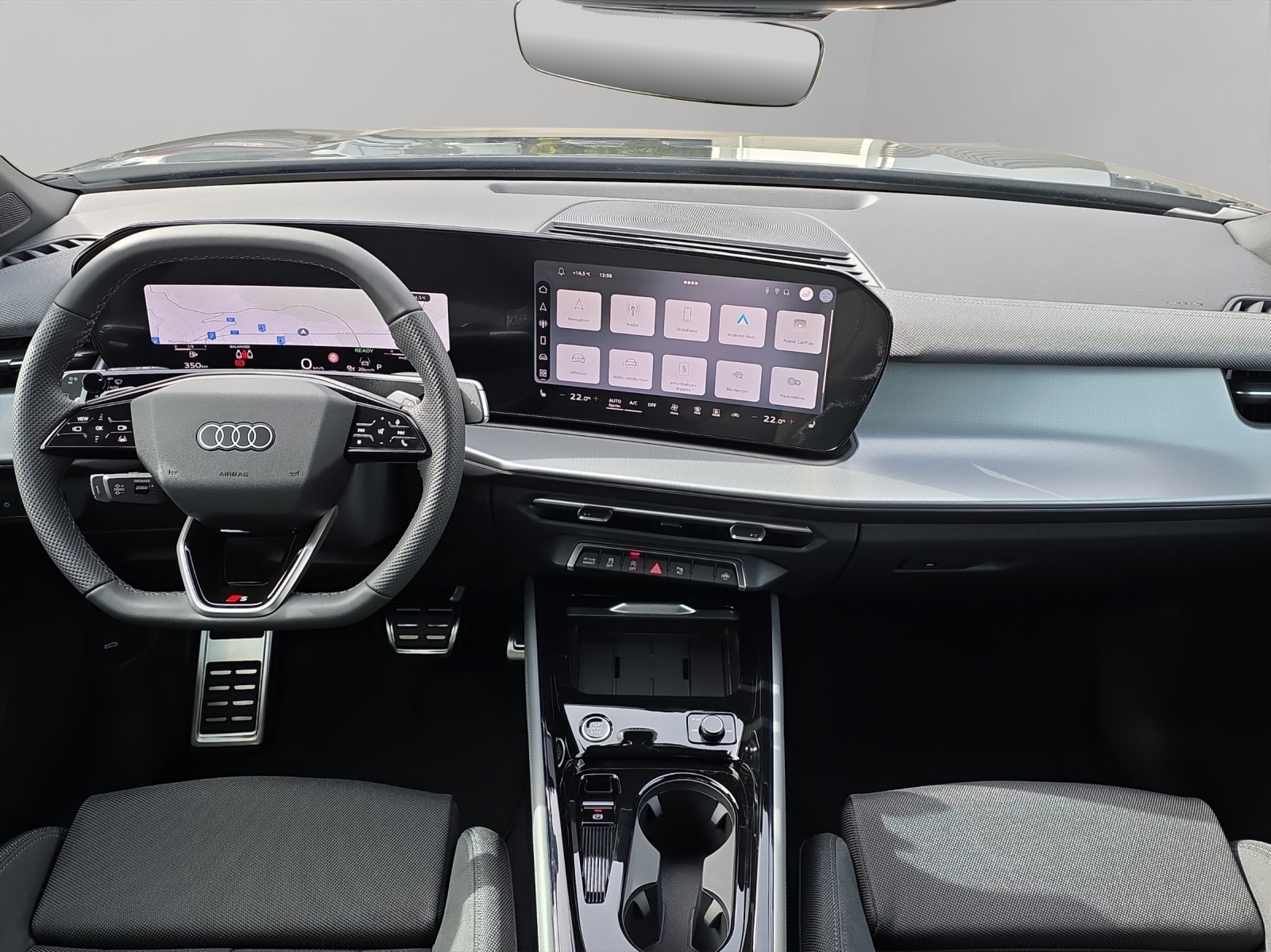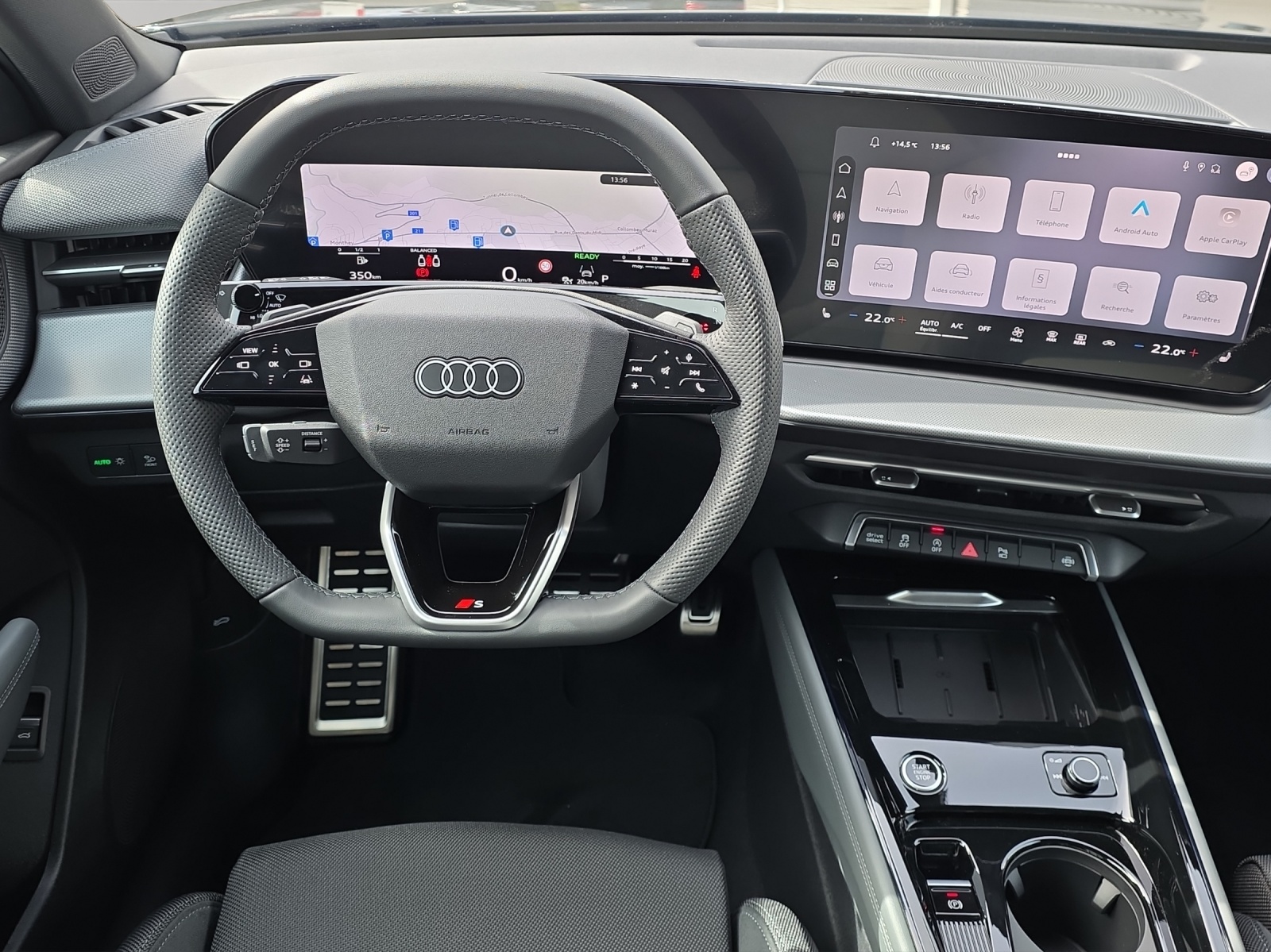 Assist: Assistant de stationnement plus avec aide au stationnement avec affichage de lenvironnement Audi Garantie: 5 ans ou 100'000 km Décor: Insert décoratif en aluminium divergence foncé Garantie: Audi Swiss Service Package+ (ASSP+) Komfortschlüssel ohne Safelock Licht: Fernlicht-Assistent Mèdias: Amplificateur de signal de téléphonie mobile de type 1 Mèdias: Emplacement pour téléphone avec fonction de recharge inductive Pack: Intérieur S line avec sièges sport combinaison tissu/microfibre noir Pack: Intérieur avec sièges sport, tissu noir Pack: Pack climatisation plus Pack: Pack de fonctionnalités Pack: Pack expérience premium Pack: Phares à LED plus avec feux arrière à LED pro, y compris les anneaux Audi éclairés à l'arrièr Peinture: Peinture intégrale Roues: Roues à 5 branches, gris platine Toit ouvrant panoramique (en 1 partie) Vitrage de contrôle solaire, obscurci Volant: Volant sport en cuir, à 3 branches, aplati en haut et en bas avec multifonction