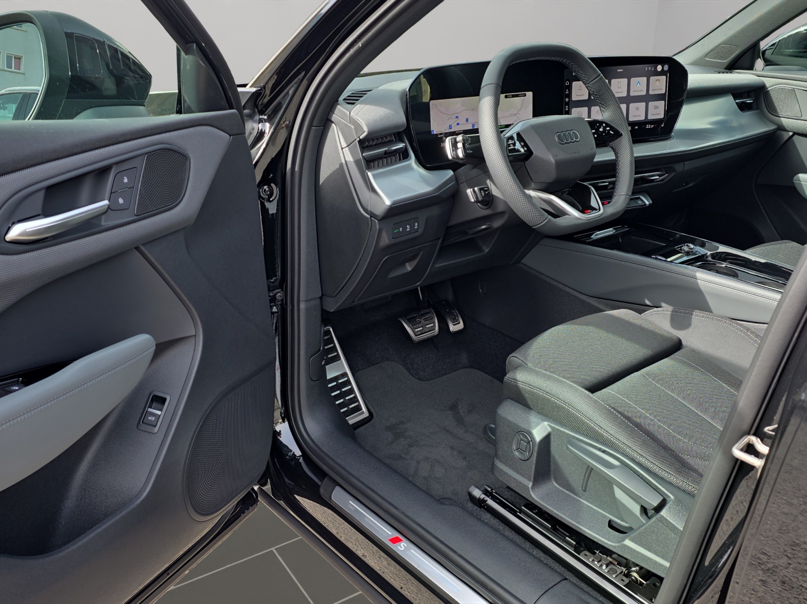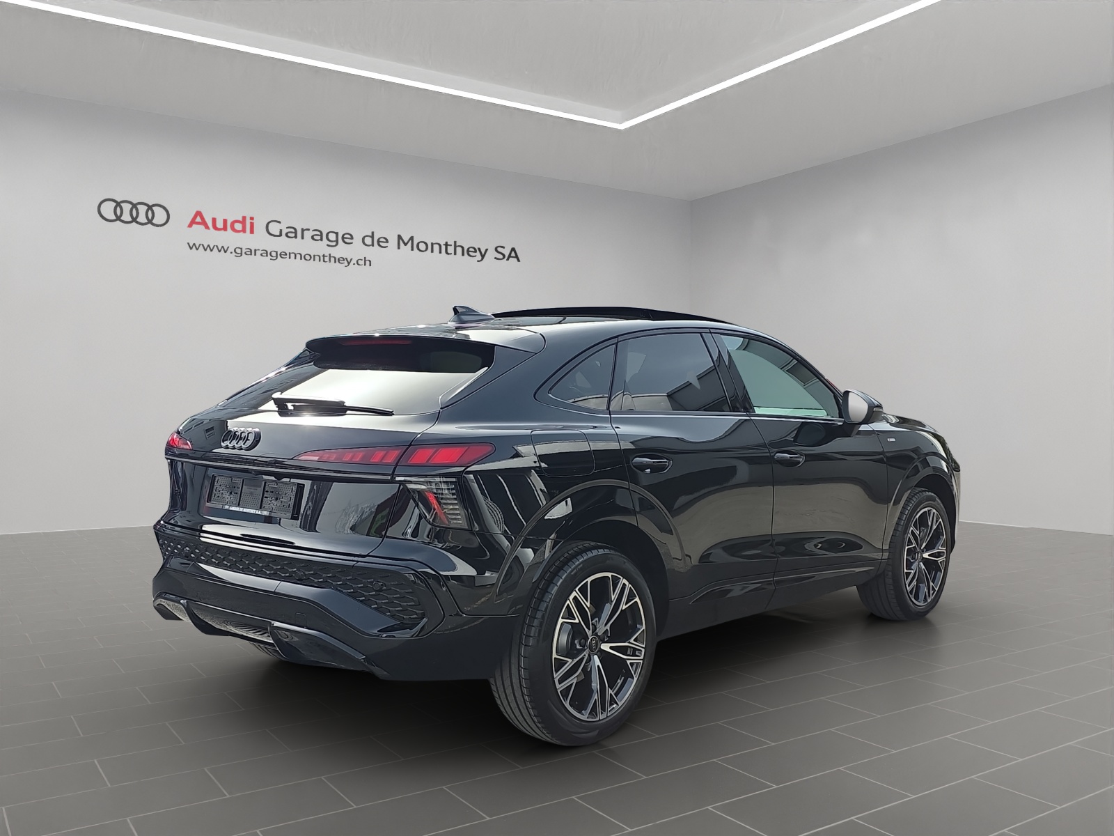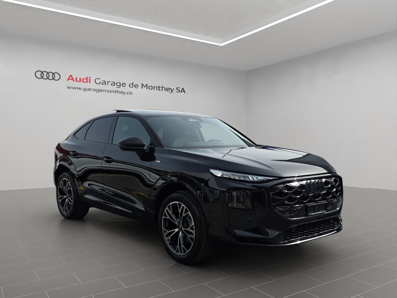 [JW] nero, coutures gris agaves, ciel noir (S line) [0E] noir mythe métallisé [42R] Roues: Jantes Audi Sport Peak à 5 doubles branches, noir métallisé, finition brillante - 8,5 J x 19, pneus 255/45 R19 Véhicule Suisse / Services gratuits 10 ans ou 100'000 kms / Garantie usine 5 ans ou 100'000 kms / Leasing et reprise toutes marques possible / Remise flotte applicable
