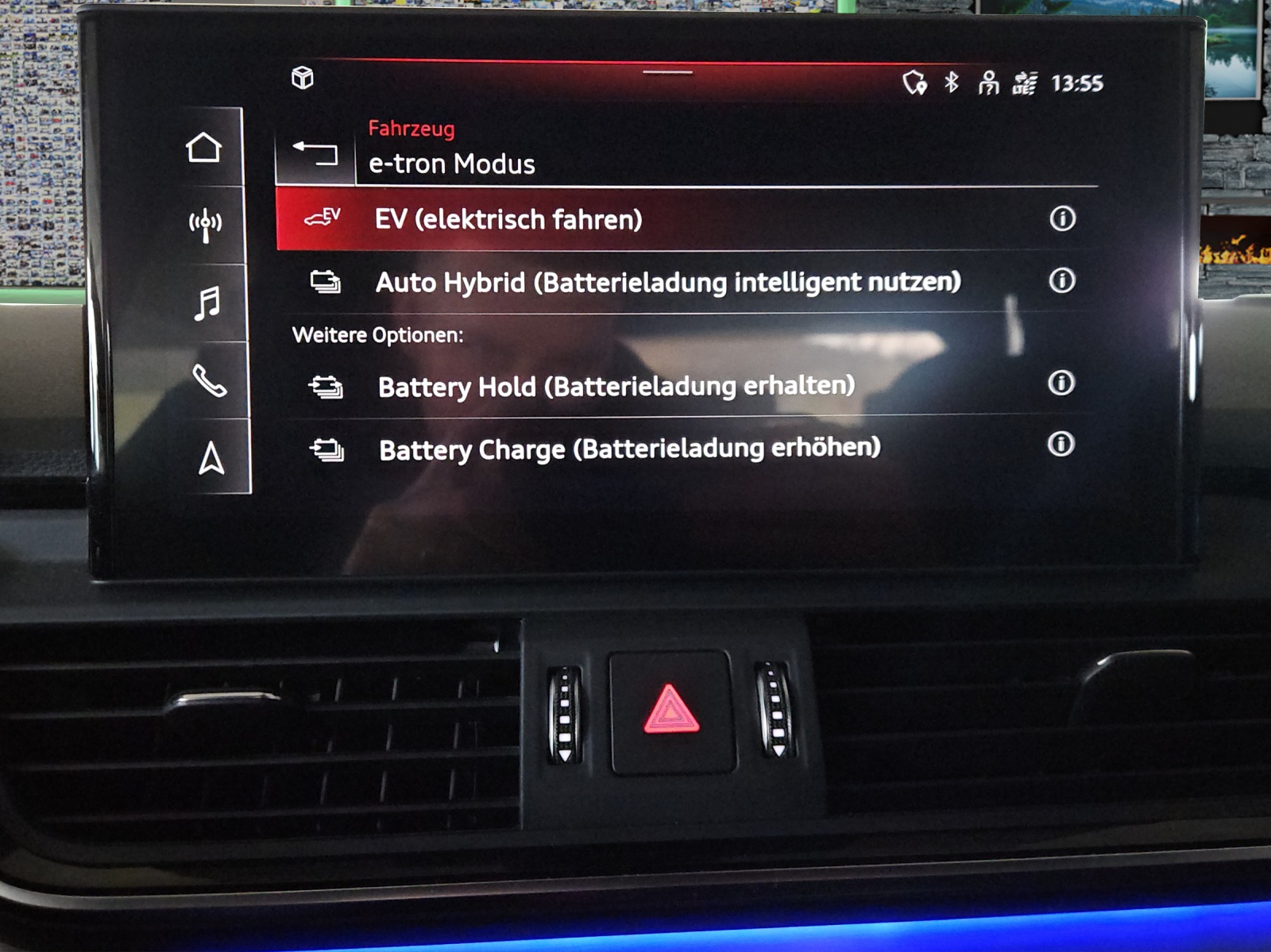 Airbag: Airbag Fahrer und Beifahrer Airbag: Seitenairbags vorne Airbag: Window-Kopfairbags Akustisches Fahrzeug-Warnsystem Assist: Berganfahrassistent Assist: Einparkhilfe plus Assist: Multifunktionskamera Assist: Spurhalteassistent Aussenspiegel in Wagenfarbe Aussenspiegel rechts und links beheizbar und elektrisch anklappbar, automatisch abblendend Dekor: Akzentflächen schwarz matt Dekor: Dekoreinlagen in Micrometallic silber Einstiegsleisten mit Aluminiumeinlegern vorn Elektronisches Stabilitäts-Programm (ESP) Fahrer-Informationssystem mit Farbdisplay Fahrwerk: quattro mit ultra Technologie Frontscheibe in Akustikverglasung Funkschlüssel, ohne Safelock Fussmatten vorne und hinten Garantie: 2 Jahre ohne Kilometerbegrenzung (ab 1. Inv.) Gepäckraumklappe mit automatischer Öffnung Geschwindigkeitsregelanlage und Geschwindigkeitsbegrenzer Getriebe: 7-Gang- Automat S tronic Haushaltsstecker Typ J (Schweiz) für das e-tron Ladesystem Industriestecker CEE 16A, 400V, lang und gerade für das e-tron Ladesystem Innenspiegel automatisch abblendbar Kindersitzbefestigung ISOFIX und Top Tether für die Rücksitzbank Klima: 3-Zonen-Klimatisierungsautomatik Klima: Ohne Wärmespeicher/Zusatzheizung Kopfstützen vorne höhenverstellbar Ladekabel Mode 3 für öffentliches Laden bis 22 kW Ladekantenschutz in Edelstahl Lenkrad: Lederlenkrad im 3-Speichen-Design mit Multifunktion plus Media: Bluetooth-Schnittstelle Media: Digitaler Radioempfang (DAB/DAB+) Modellbezeichnungen (Logo & Model) Paket: Kindersicherheits-Paket Paket: Mit connect Paket 2 Paket: Mit connect Paket 6 Reifendruck-Kontrollanzeige Reifenpannen-Set (Tire Kit) Räder: Leichtmetallräder im 5-Doppelspeichen-Dynamik Räder: Radschrauben Standard Servolenkung Elektromechanisch Sitze: Rücksitzbank verstellbar Sitze: Vordersitze heizbar Sitze: Vordersitze manuell einstellbar Sonnenblende auf Fahrer- und Beifahrerseite Verbandmaterial,Warndreieck und Warnveste Vorbereitung Navigationssystem Wegfahrsperre elektronisch