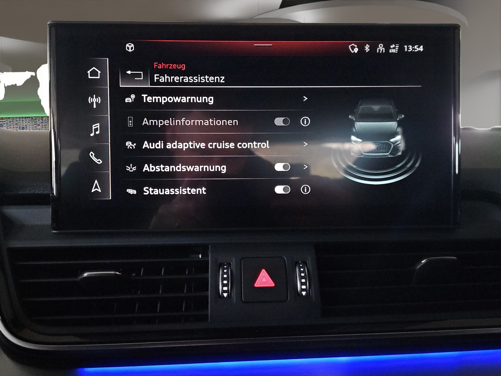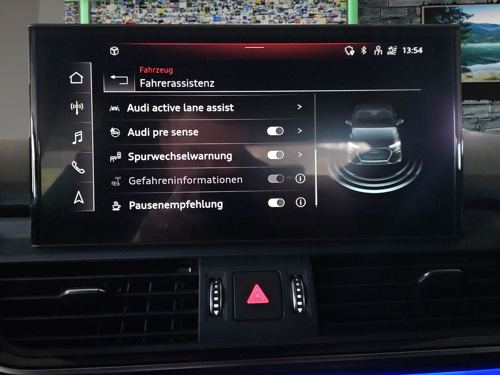 Akustikverglasung für Türscheiben vorn Assist: Kamerabasierte Verkehrszeichenerkennung Assist: Parkassistent mit Einparkhilfe plus Assist: Spurwechselwarnung inklusive Audi pre sense rear Dekor: Akzentflächen schwarz glänzend Dekor: Dekoreinlagen in Aluminium matt gebürstet Fahrwerk: Adaptive air suspension Garantie: Audi Garantie: 5 Jahre oder 100'000 km (ab 1. Inv.) Licht: Matrix LED-Scheinwerfer mit LED-Heckleuchten und Scheinwerfer-Reinigungsanlage Media: Bang & Olufsen Premium Soundsystem mit 3D Klang Media: LTE-Unterstützung für Audi phone box Media: MMI Navigationssystem Plus mit MMI touch Paket: Ablagen- und Gepäckraumpaket Paket: Assistenzpaket Stadt mit Assistenzpaket Parken Paket: Assistenzpaket Tour Paket: Kontur-/Ambiente-Lichtpaket (mehrfarbig) Paket: Optikpaket schwarz Polster: Mikrofaser Frequenz/Leder-Kombination mit S-Prägung Privacy-Verglasung (Scheiben abgedunkelt) Räder: Leichtmetallräder im 10-Y-Speichen Räder: Radschrauben mit Diebstahlsicherung Sitze: 4-Wege-Lendenwirbelstütze für die Vordersitze Variable Kopfstützen für die Vordersitze Vorbereitung für Anhängevorrichtung