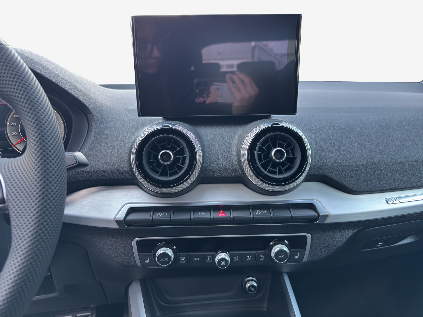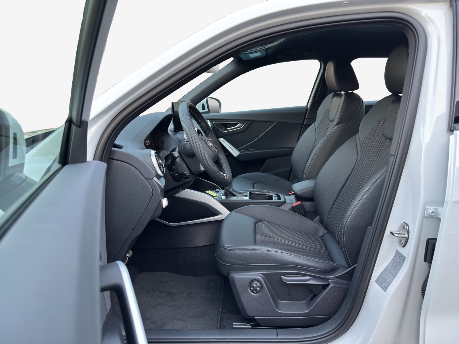Assist: Adaptiver Geschwindigkeitsassistent Assist: Audi pre sense front Assist: Spurwechselwarnung Capot de coffre à ouverture et fermeture électriques Clima: Climatisation automatique confort Clé confort (sans verrouillage de sécurité) Dekor: Dekoreinlagen in Aluminium matt gebürstet Intérieur S line avec sièges sport en combinaison tissu/cuir Noir/Gris Lame en couleur de la carrosserie Lumière: Assistance aux feux de route Lumière: Feux arrière à LED Mèdias: Prise en charge LTE pour la cabine téléphonique Audi Pack: Forfait Excellence Q2 Pack: Pack Assistance au stationnement Pack: Pack Assistance conduite 2 Pack: Pack Assistance sécurité Pack: Pack Infodivertissement Pack: Pack optique noir plus noir brillant pour symboles de type et anneaux Audi Pack: Pack sécurité enfant Pack: Pack technologique Q2 Pack: Sièges du pack confort Pas de lettrage performance / technologie Peinture: Peinture métallisée Roues: Jantes all. léger, st. rotor à 5 bras, Noir Anth., tourn. brill. Sièges: Sièges AV chauffants Sièges: dossier de siège arrière, partiellement rabattable Suppression de la désignation du modèle et du lettrage de service / technologie