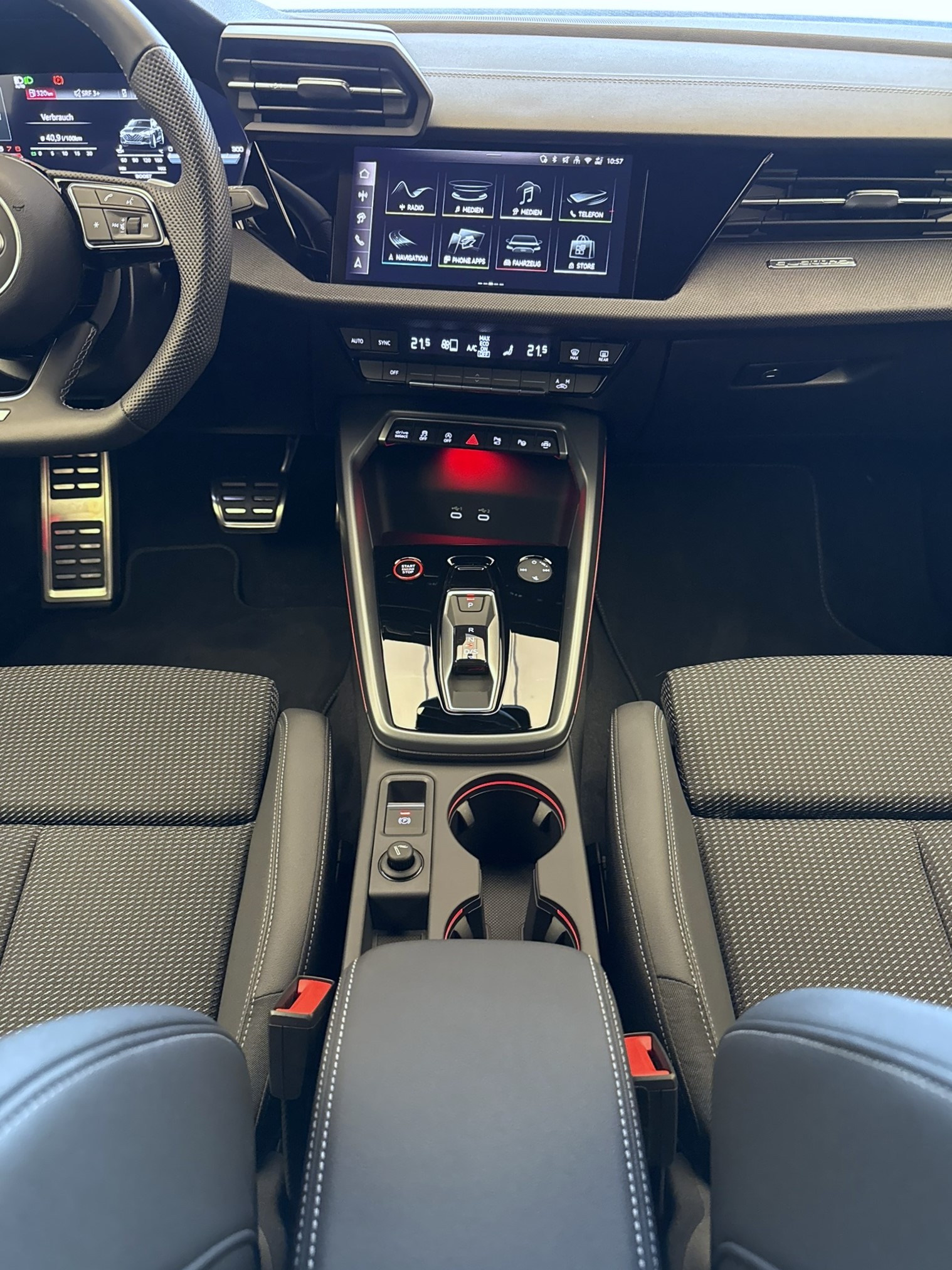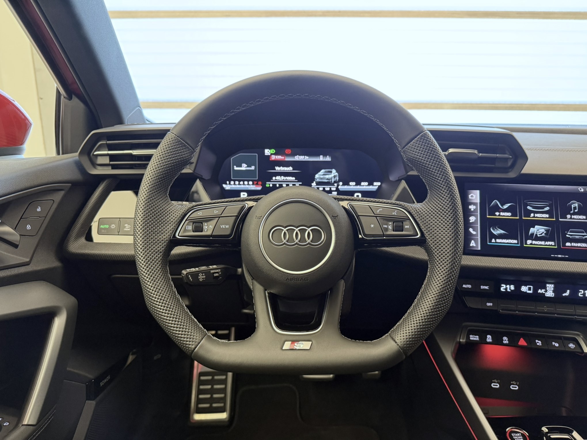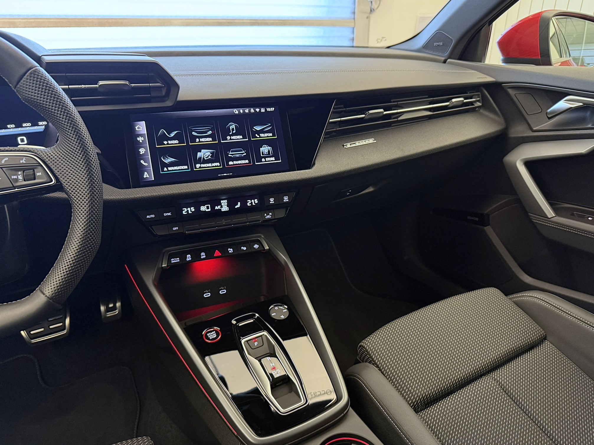 Aussenspiegel in Wagenfarbe Entfall Modellbezeichnung Fahrwerk: S-Sportfahrwerk mit Dämpferregelung Garantie: Audi Garantie: 5 Jahre oder 100'000 km (ab 1. Inv.) Garantie: Audi Swiss Service Package + (ASSP+) Lackierung: Metallic-Lackierung Licht: Einstiegs-LED mit S-Logoprojektion vorn Media: SONOS Premium Soundsystem Paket: Ambiente-Lichtpaket pro Paket: Matrix LED-Scheinwerfer, LED-Heckleuchten und Scheinwerfer-Reinigungsanlage Sitze: Rücksitzlehne, geteilt umklappbar Sonnenschutzverglasung, abgedunkelt Zigarettenanzünder und Aschenbecher