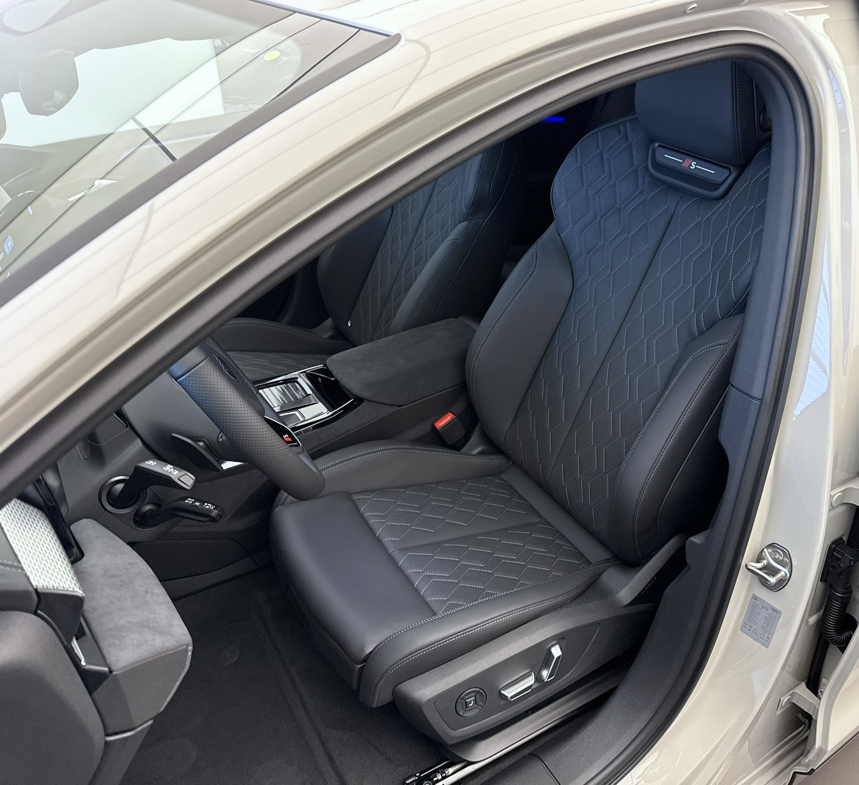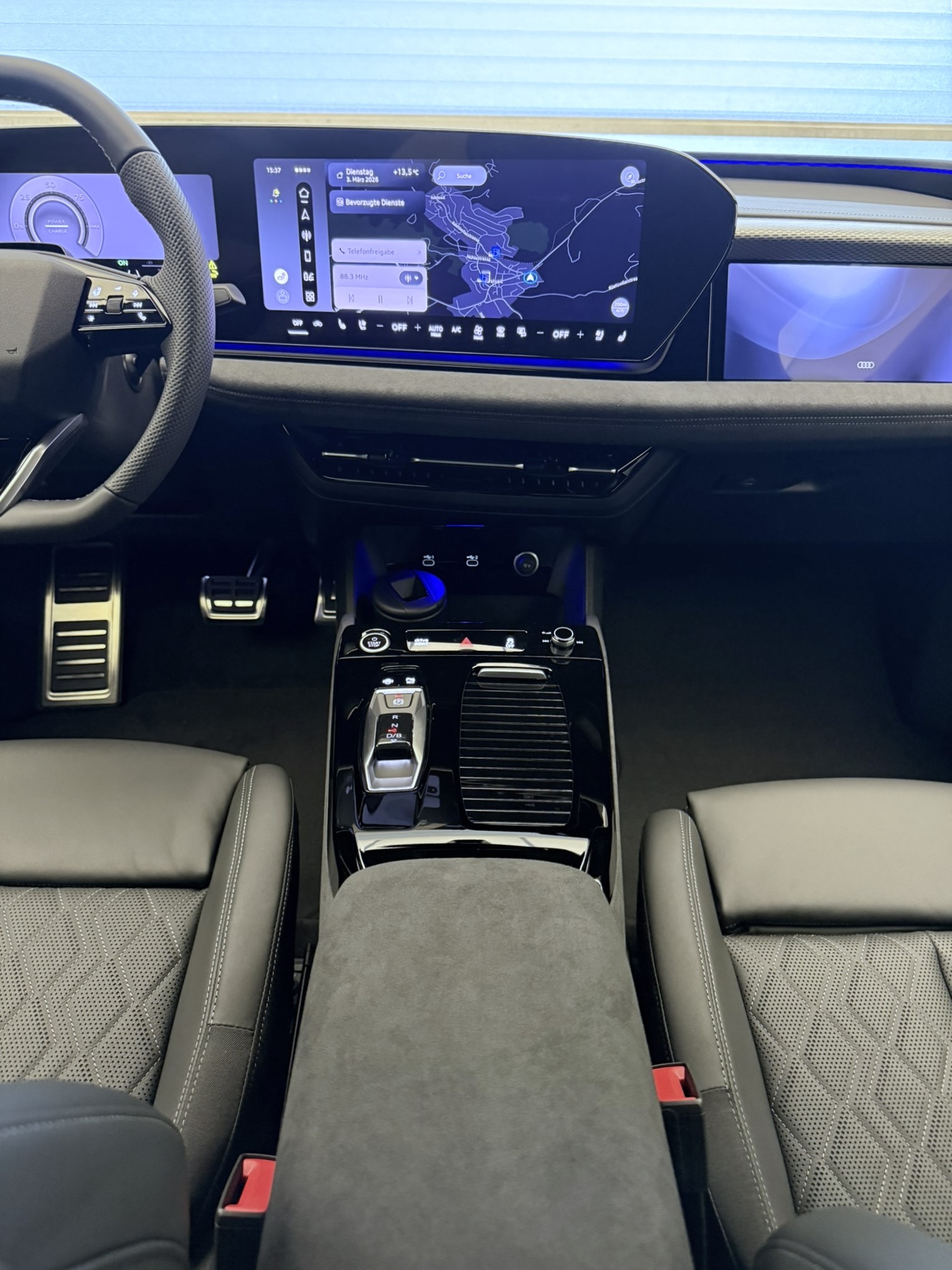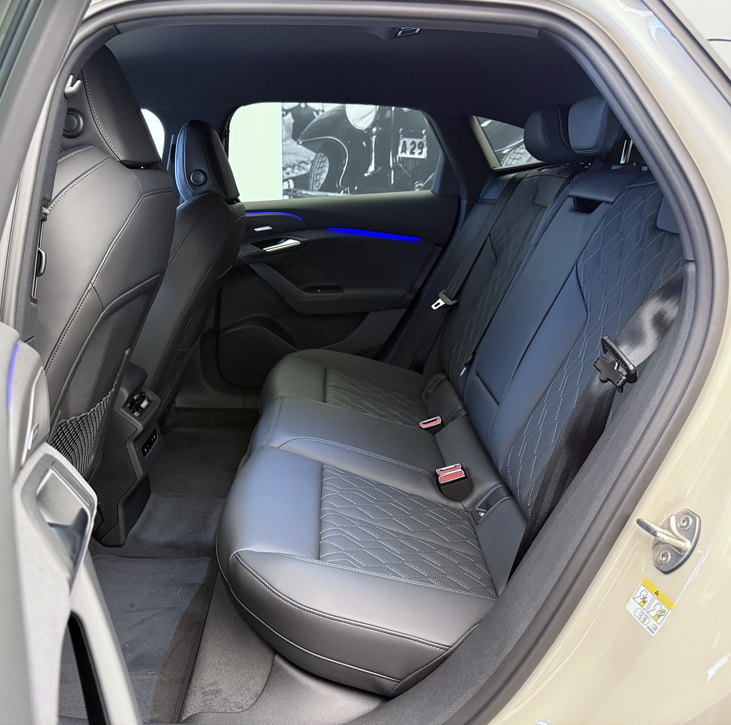 Airbag latéral à lavant, avec airbag latéral de tête et airbag interactif à lavant Airbag: Airbag Fahrer und Beifahrer Akustisches Fahrzeug-Warnsystem Assist: Adaptiver Geschwindigkeitsassistent Assist: Alerte de trafic transversal à lavant Assist: Assistant de maintien de voie Assist: Ausweichassistent und Abbiegeassistent Assist: Avertisseur de changement de voie et de sortie, alerte de trafic transversal à larrière Assist: Détection de l'attention et de la fatigue avec surveillance du conducteur Assist: Einparkhilfe plus mit Distanzanzeige Assist: Kamerabasierte Verkehrszeichenerkennung Assist: Notbremsassistent vorn Assist: Parkassistent plus Assist: Spurverlassenswarnung inkl. Notfallassistent Assist: Système proactif de protection des passagers à lavant, sur le côté et à larrière Assist: Traktionskontrolle Assist: Verkehrszeichenbasierter Geschwindigkeitsbegrenzer Audi virtual cockpit plus Aussenspiegel elektrisch einstell-, beheiz- und anklappbar, beidseitig automatisch abblendend Boîte: Boîte de vitesses manuelle automatisée à 2 rapports Chargeur embarqué jusqu'à 11 kW (AC) Ciel de pavillon en tissu, couleur gris roche Clapet de recharge électrique Clima: Chauffage dappoint électrique Clima: Climatisation automatique confort 3 zones Clima: Climatisation à larrêt Clima: Commutation automatique de lair recyclé Câble de charge mode 3 pour charge publique jusqu'à 22 kW Decór: Partie supérieure du tableau de bord noire avec coutures contrastées Dekor: Interieurapplikationen Aluminiumoptik Deuxième accès de chargement Décor: Application décorative en aluminium mat brossé anthracite Décor: Éléments intérieurs en haut et en bas similicuir Dénomination du modèle à larrière Einstiegsleisten mit Aluminiumeinlegern vorn Elektronisches Stabilitäts-Programm (ESP) Fensterzierleisten Aluminiumoptik Fussmatten vorne und hinten Garantie: Audi Garantie 2 Jahre ohne Kilometerbegrenzung (ab 1. Inv.) Komfortschlüssel ohne Safelock Lackierung: Uni-Lackierung Lenkrad: Lenkradapplikation Chromoptik Lenkrad: Lenkradeinstellung manuell Licht: Fernlicht-Assistent Licht: LED-Heckleuchten pro Licht: LED-Scheinwerfer plus Licht: Scheinwerfer-Reinigungsanlage Licht: Tagesfahrlicht mit Assistenzfahrlicht u.Coming- u. Leaving-home Funktion automatisch Lumière: Anneaux Audi éclairés à larrière Lumière: Projecteur dans les rétroviseurs extérieurs Lève-vitres électrique avant Media: Audi Application Store und Smartphone-Interface Media: Audi connect Navigation & Infotainment Media: Audi connect Notruf & Service mit Audi connect Remote & Control Media: Digitaler Radioempfang (DAB) Media: FOD Funktionen online verfügbar Media: USB-Anschlüsse mit Ladefunktion in erster und zweiter Sitzreihe Mèdias: Emplacement pour téléphone avec fonction de recharge inductive Mèdias: MMI Experience avec système audio Audi Mèdias: Module de données Europe Pack: Pack Assistance systèmes de protection et davertissement plus Pack: pack Ambiente Light Paket: Assistenzpaket Fahren und Parken Pare-brise avec vitrage athermique et acoustique Prise de charge Combo 2 (EU) Préparation pour dispositif d'attelage Préparation pour fonctions de recharge intelligentes Roues: Jantes, 5 branches dynamiques, gris Platine Räder: Reifendruck-Kontrollanzeige Räder: Reifenreparatur-Set (Tire Fit) Rétroviseur intérieur photochromatique automatique Rétroviseurs ext. couleur carosserie Scheiben seitlich und hinten in Wärmeschutzverglasung Schlüssel für Schliesssystem mit Fernbedienung Sitze: 4-Wege-Lendenwirbelstütze für die Vordersitze Sitze: Vordersitze heizbar Sitze: Vordersitze manuell einstellbar Sièges: Banquette arrière dun seul tenant, dossier fractionné et rabattable (trois éléments) Sièges: Fixation pour siège enfant i-Size côté passager et i-Size et Top Tether sur les sièges Sièges: Intérieur avec sièges normaux, tissu noir Suspension: Châssis dynamique Türen: Gepäckraumklappe elektrisch öffnend und schliessend Türen: Türgriffe in Wagenfarbe Verbandmaterial,Warndreieck und Warnveste Verrouillage centralisé à télécommande Volant: Volant cuir à branches doubles avec multifonctions Wegfahrsperre elektronisch