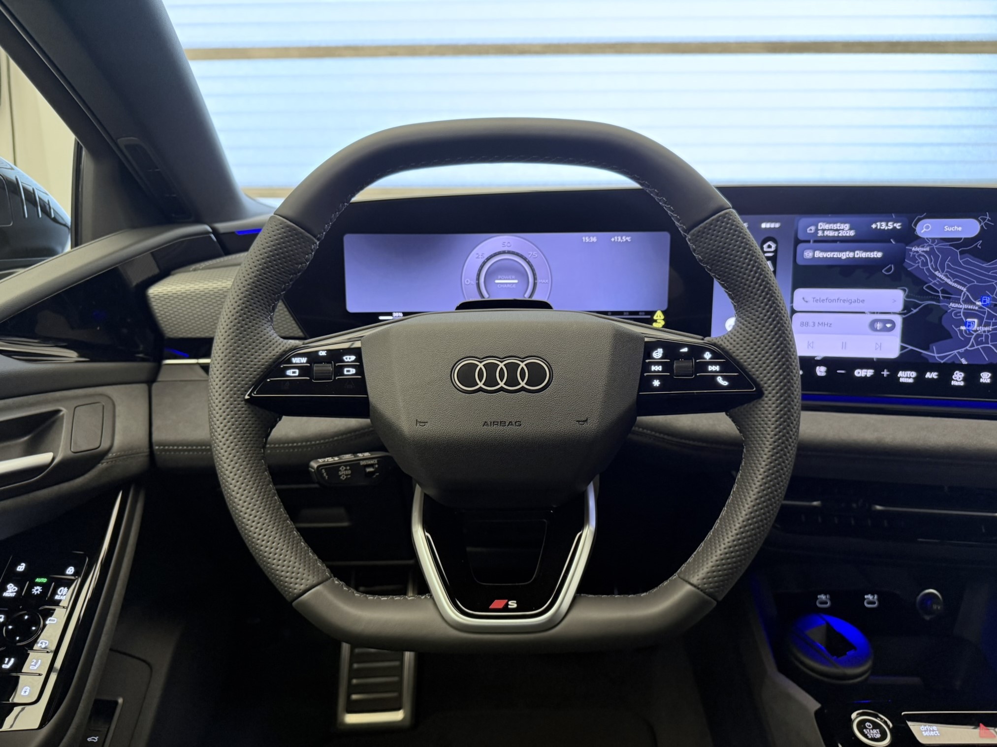 Affichage tête haute à réalité augmentée Assist: Assistant de conduite adaptatif plus Assist: Assistant de stationnement professionnel avec fonction de télécommande Assist: Audi drive select assistant Décor: Applications décoratives aluminium mat brossé avec gaufrage linéaire anthracite Détection des passagers à larrière Garantie: Audi Swiss Service Package+ (ASSP+) Lackierung: Metallic-Lackierung Lenkrad: Doppelspeichen-Lederlenkrad mit Multifunktion und Schaltwippen Lenkrad: Lenkradeinstellung elektrisch Lumière: Signatures lumineuses numériques Media: LTE-Unterstützung für Audi phone box Mèdias: Écran MMI du passager avant Pack: Intérieur S avec sièges sport plus, cuir noir Pack: Intérieur avec sièges sport, tissu noir Pack: Pack Extérieur noir Pack: Pack Premium (pour A6 AV/SB e-tron) Pack: Pack climatisation hiver Pack: Pack de rangement et coffre et coffre avant Roues: Jantes Audi Sport, design à 5 doubles branches noir métallisé, finition brillante Sitze: Sitzbelüftung vorne Sièges: Sièges avant à réglage électrique avec fonction de mémoire Suspension: adaptive air suspension Vitrage acoustique pour fenêtres de porte d'entrée Vitrage de contrôle solaire, obscurci Volant: Volant sport en cuir à 3 branches, aplati en haut et en bas