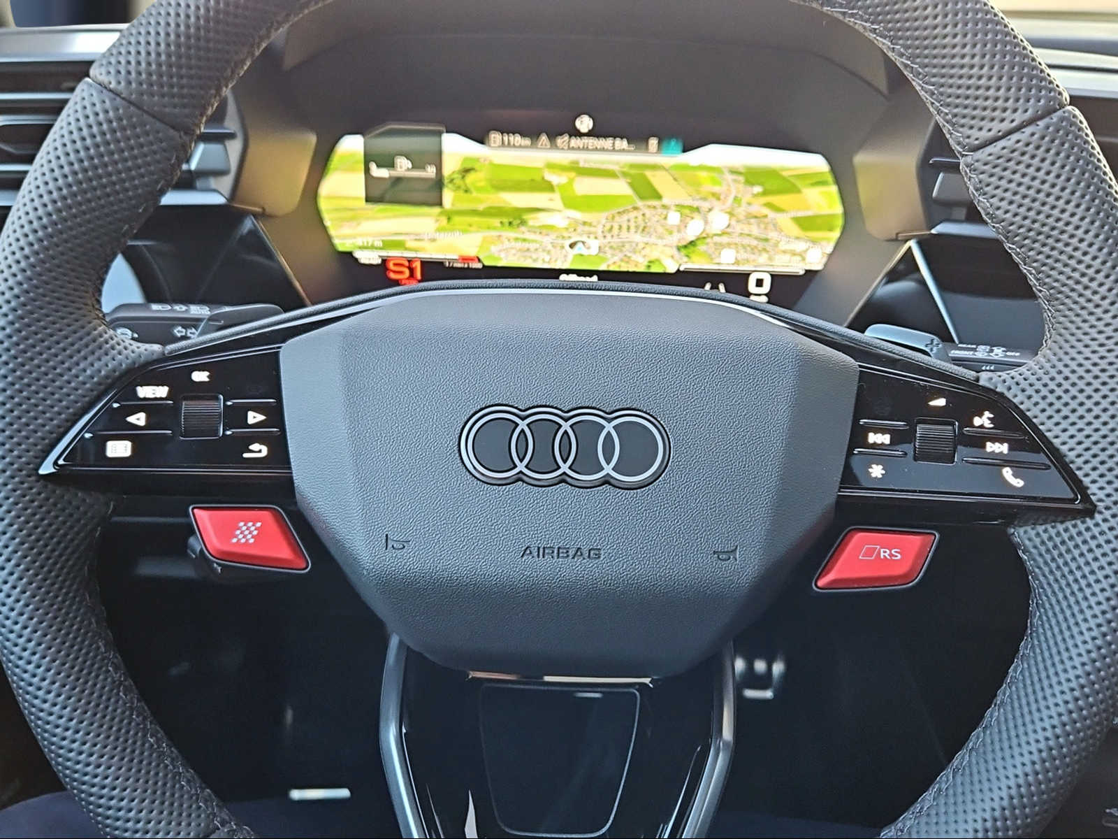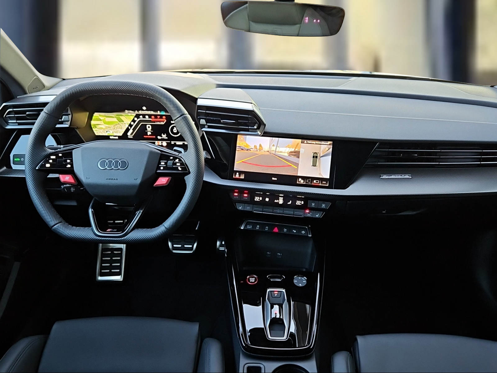 Assetto: Impianto frenante RS con pinze freno, rosso Assist: Assistente alla guida adattivo con assistente di emergenza Assist: Assistente per mantenimento della corsia Decor: inserti decorativi e superfici accentate Carbon Atlas matt Dotazioni esterne RS in nero lucido Garanzia: Audi Swiss Service Package+ (ASSP+) Lackierung: Metallic-Lackierung Luce: Proiettori a LED Matrix, luci posteriori a LED e sistema di pulizia dei proiettori Pacchetto: Pacchetto Navigazione Pacchetto: Pacchetto Premium Plus Sportback Pacchetto: Pacchetto climatizzazione plus Pacchetto: Pacchetto comfort pro Pacchetto: Pacchetto di assistenza alla guida e al parcheggio pro e pacchetto di assistenza sistemi Specchietti esterni colore carrozzeria Tappezzeria: Pelle nappa fine con trapuntatura a nido dape e punzonatura RS Tettuccio panoramico in vetro Vetrate a controllo solare, oscurate