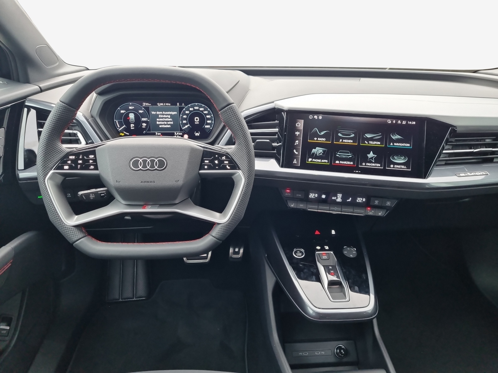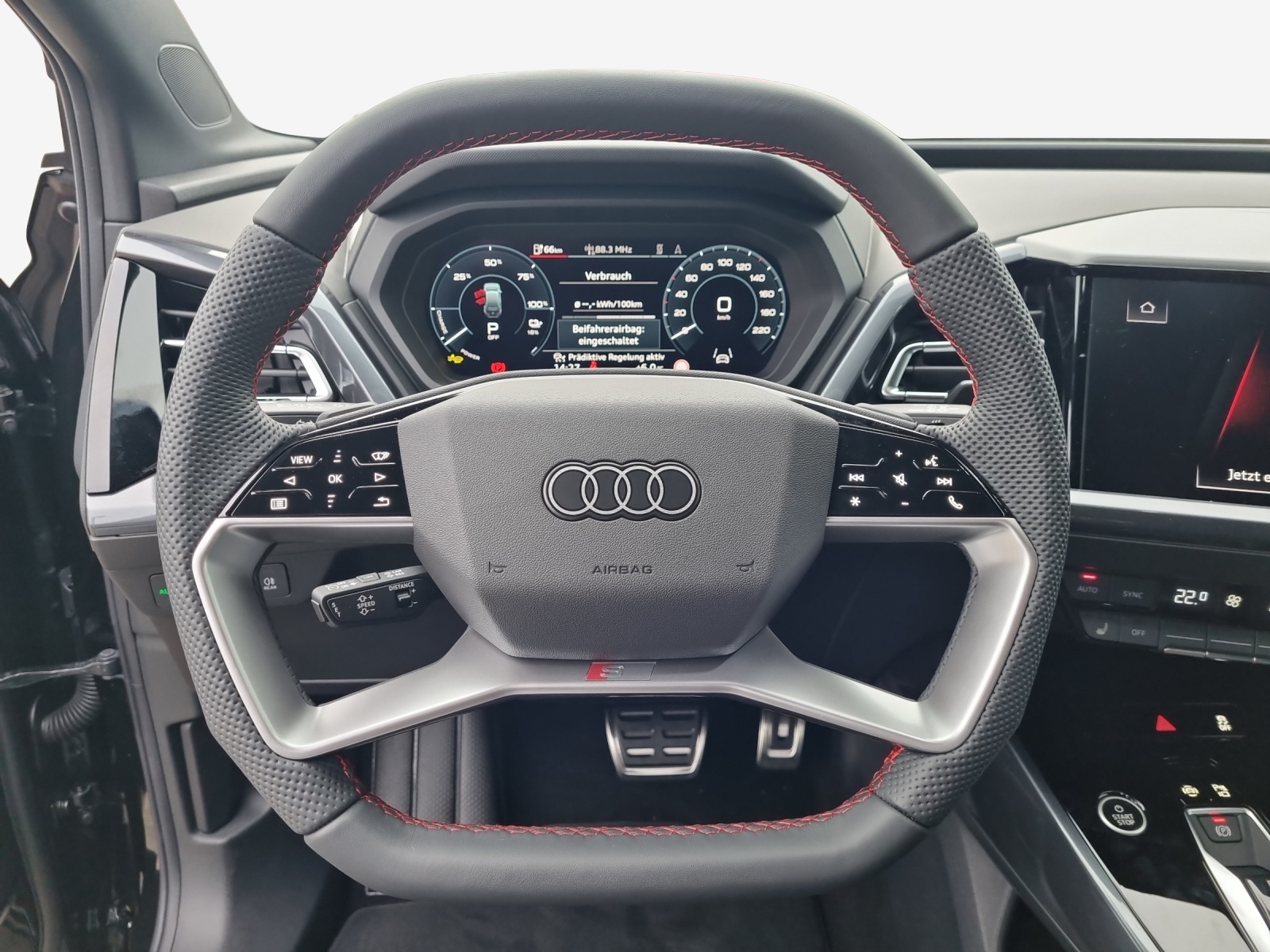 Airbag laterali anteriori, con airbag per la testa e airbag interattivo anteriore Airbag: Airbag per conducente e passeggero con disattivazione dell'airbag del passeggero Assist: Ablenkungs- und Müdigkeitserkennung Assist: Kamerabasierte Verkehrszeichenerkennung Assist: Sistema proattivo di protezione degli occupanti per parte frontale, fiancate e retro Assist: Speedlimiter con Intelligent Speed Assist Assist: Stabilizzatore di velocità FOD: Possibile ACC Assist: Stabilizzatore di velocità con limitatore di velocità Cavo di ricarica modalità 3 tipo 2 32A Chiave telecomando, senza Safelock Chiusura delle porte centralizzata con telecomando Cinture di sicurezza a 3 punti a tutti i posti Clima: Climatizzazione a vettura ferma Conclusione tutt'intorno con un aspetto granuloso Cuciture Audi Sport rosse Denominazione del modello Iscrizione tecnologica Simbolo del tipo di prestazione Garanzia: 2 anni / chilomettraggio Getriebe: Direktantrieb, kein Getriebe Komfortmittelarmlehne vorne Lackierung: Uni-Lackierung Licht: Drittes Bremslicht Licht: Nebelschlussleuchte Media: Digitaler Radioempfang (DAB) Pacchetto: Interni S line con sedili sportivi in combinazione microfibra Dinamica / pelle sintetica Pacchetto: Pacchetto comfort svizzero Pacchetto: Pacchetto esterno avanzato Pacchetto: Pacchetto infotainment Svizzera Pacchetto: Pacchetto lucido con listelli decorativi orizzontali in alluminio anodizzato Pacchetto: Pacchetto ottica nera plus Pacchetto: Pacchetto sicurezza plus Programma elettronico della stabilità (ESP) Route: Indicatore di controllo della pressione dei pneumatici Sedili: Fissaggio per seggiolino per bambini i-Size sul lato passeggero e i-Size e Top Tether Sedili: Interni con sedili standard in tessuto Index nero Set riparazione pneumatici (Tire Fit) Sistema antibloccaggio delle ruote (ABS) Verbandmaterial,Warndreieck und Warnveste Vetri termoisolanti colorati di verde Wegfahrsperre elektronisch senza assistente alla luce senza cavo di ricarica (spina industriale) senza inserto per tetto (tetto pieno) senza riscaldamento del volante senza sistema di ricarica