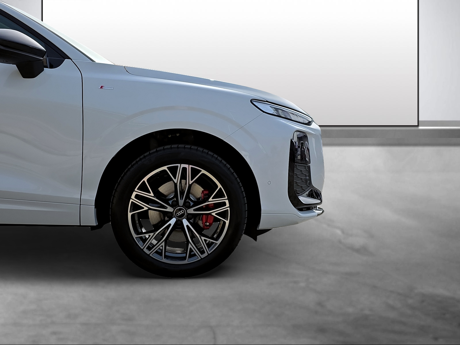 [42R] Räder: Räder Audi Sport, 5-Doppelspeichen-Peak, schwarz metallic, glanzgedreht - 8,5 J x 19, Reifen 255/45 R19 [2FT] Lenkrad: Doppelspeichen-Sportlederlenkrad, oben und unten abgeflacht, mit Multifunktion, - Schaltwippen und Lenkradheizung [UG5] Assist: Bergabfahrassistent [8A2] Assist: Parkassistent plus mit Einparkhilfe mit Umgebungsanzeige [2Y] gletscherweiss metallic [FZ] schwarz, Nähte schwarz, Himmel mondsilber
