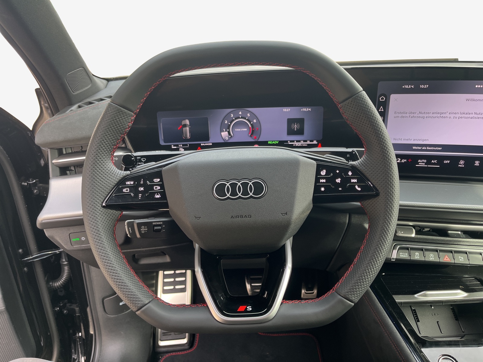 Assist: Assistant de stationnement plus avec aide au stationnement avec affichage de lenvironnement Assist: Bergabfahrassistent Clé de confort sans Safelock Coutures de couleur rouge Audi Sport Lackierung: Metallic-Lackierung Licht: Fernlicht-Assistent Mèdias: Amplificateur de signal de téléphonie mobile de type 1 Mèdias: Emplacement pour téléphone avec fonction de recharge inductive Pack: Intérieur S line avec sièges sport en microfibre noire Pack: Pack Assistance Conduite et Stationnement pro et Pack Assistance Systèmes de Protection et d' Pack: Pack climatisation plus Pack: Pack de fonctionnalités Pack: Pack expérience premium Pack: Phares à LED matriciels numériques avec feux arrière à LED, Roues: Jantes Audi Sport, tripode à 5 branches, noir métallisé, brillant, foncé Roues: Écrous de roues antivol Toit ouvrant panoramique (en 2 partie) Vitrage de contrôle solaire, obscurci Volant: Volant sport en cuir, à 3 branches, aplati en haut et en bas avec multifonction,