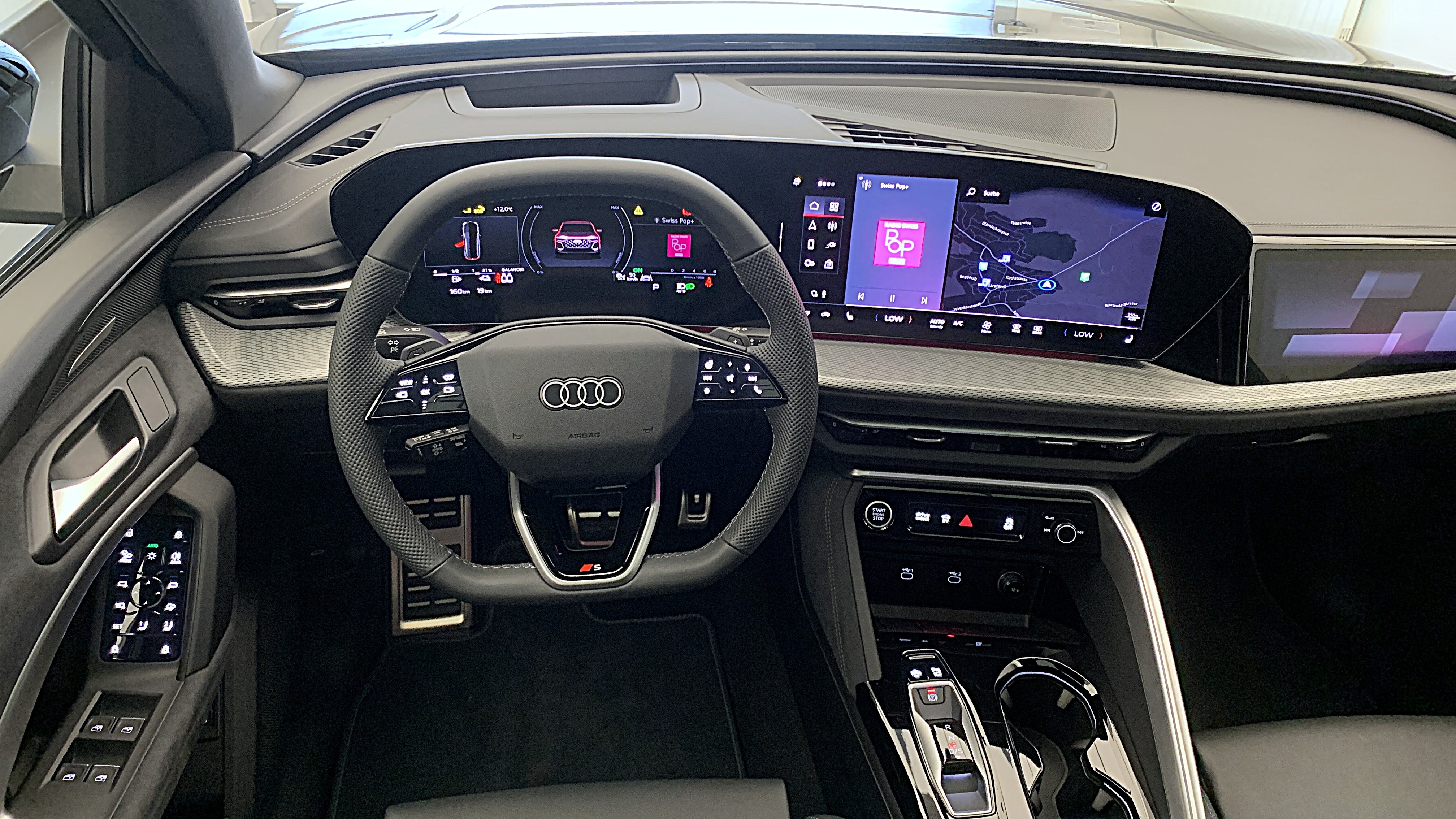 Assist: Assistant de conduite adaptatif plus Attelage pour remorque orientable mécaniquement Boîtier de rétroviseur extérieur en noir Clima: Chauffage & Climatisation autonome Détection des passagers à larrière Garantie: Audi Swiss Service Package+ (ASSP+) Pack: Intérieur S avec sièges sport, combinaison microfibre Dinamica / cuir noir Pack: Pack Extérieur noir Pack: Pack éclairage dambiance pro Peinture: Peinture intégrale Peinture: Peinture nacrée Gris Daytona Roues: Jantes Audi Sport, 5 branches Split, noir métallisé, finition brillante Sièges: Siège conducteur et rétroviseur extérieur avec fonction de mémoire Suspension: Châssis adaptatif à suspension pneumatique (e-hybrid) Toit panoramique en verre Vitrage acoustique pour fenêtres de porte d'entrée Vitrage de contrôle solaire, obscurci