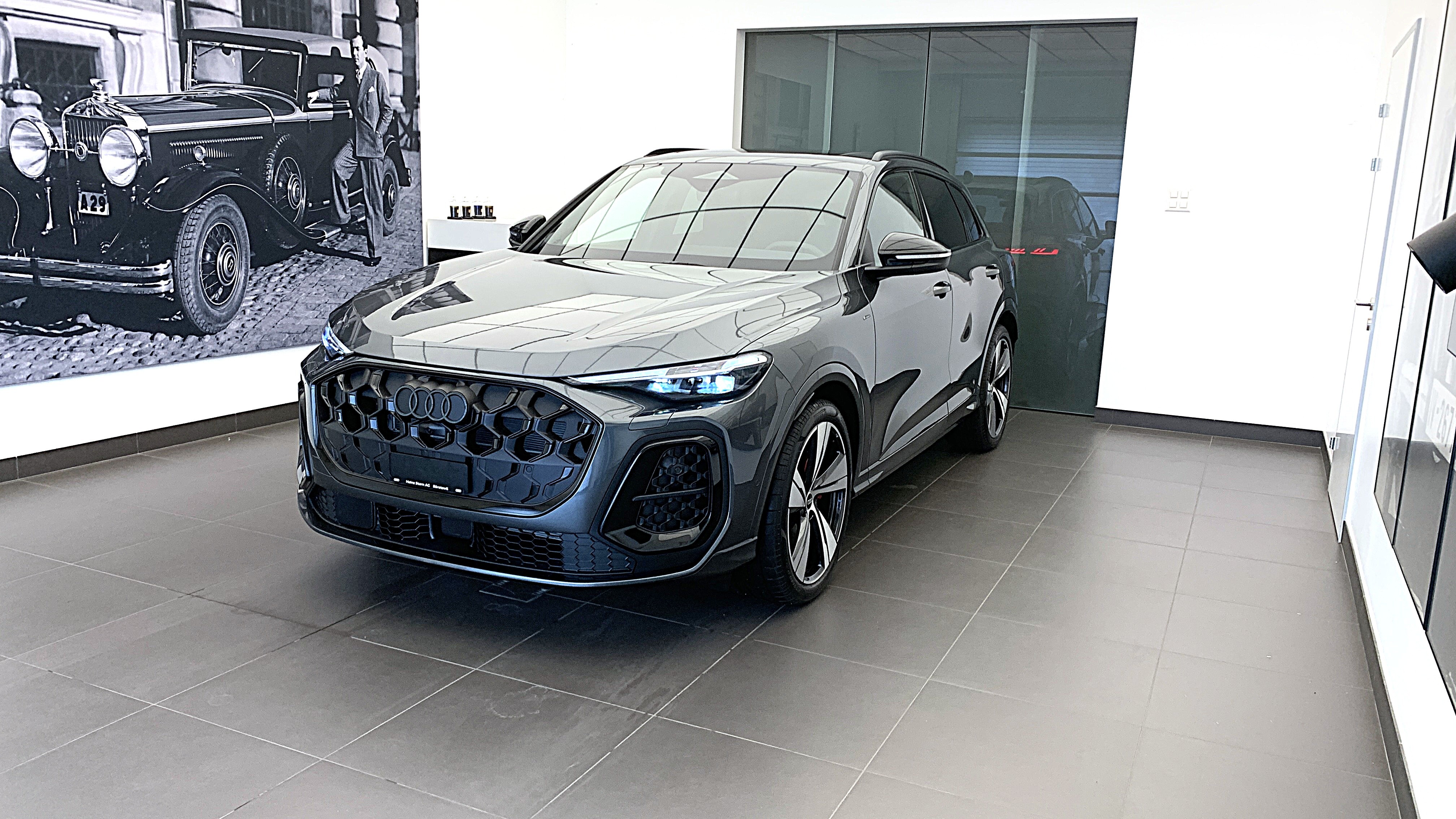 Alloggiamento dello specchietto esterno in nero Assetto: Assetto adattivo con sospensioni pneumatiche (e-hybrid) Assist: Assistente alla guida adattivo plus Clima: Sistema di climatizzazione ausiliario Gancio da traino orientabile meccanicamente Garanzia: Audi Swiss Service Package+ (ASSP+) Giunta di traino per rimorchio Lackierung: Perleffekt-Lackierung Pacchetto: Esperienza MMI Plus con sistema audio premium Bang & Olufsen Pacchetto: Interni S con sedili sportivi, combinazione pelle/similpelle in nero Pacchetto: MMI experience pro Pacchetto: Pacchetto Premium experience SQ5 e Q5 e-hybrid 270 kW Pacchetto: Pacchetto dilluminazione Ambiente pro Pacchetto: Pacchetto esterni in nero Rilevamento degli occupanti nei sedili posteriori Ruote: Cerchi Audi Sport dal design Split a 5 bracci, nero metallizzato, torniti a specchio Sedili: Sedile del conducente e specchietto esterno con funzione di memoria Tettuccio in vetro panorama Verniciatura: Vernice integrale Verniciatura: Verniciature effetto perlato Grigio Daytona Vetrate a controllo solare, oscurate Vetri acustici per finestre delle porte anteriori