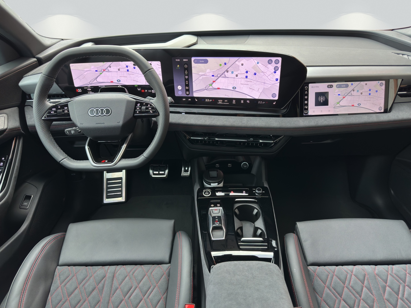[CT0] Räder: Räder Audi Sport, 5-Y-Speichen-Dynamik, schwarz metallic, glanzgedreht - 9,0 J / 10,0 J x 21, Reifen 255/45 / 285/40 R21 [JH1] Media: MMI Beifahrerdisplay [%99] Ladekarte inkl. Startguthaben (im Handschuhfach) [2H6] Assist: Audi drive select assistant [2C7] Lenkrad: Lenkradeinstellung elektrisch [6Y] daytonagrau perleffekt [5P2] Insassenerkennung im Fond [8RT] Media: Bang & Olufsen Premium Soundsystem mit 3D-Klang und Kopfstützenlautsprechern [AR] schwarz, Naht expressrot, Himmel schwarz (Interieur S) Für eine Besichtigung, Probefahrt und Beratung rufen sie uns an, Tel: 041 799 02 33. Ihr Garage Wismer Verkaufsteam.