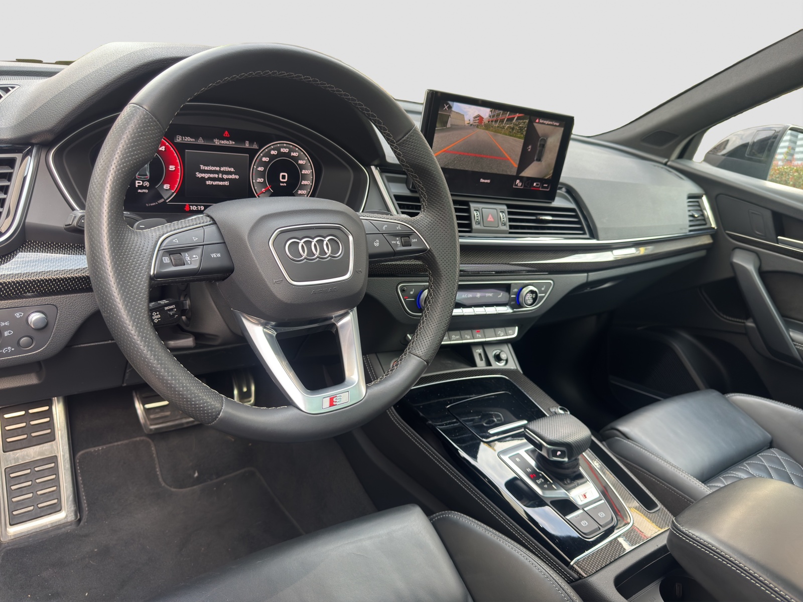 Airbag: Airbag Fahrer und Beifahrer Airbag: Seitenairbags vorne Airbag: Window-Kopfairbags Ancoraggio per seggiolino bambini ISOFIX e Top Tether per i sedili posteriori Assetto: S sospensione sportiva con controllo della serranda Assetto: quattro (con differenziale centrale autobloccante) Assist: Berganfahrassistent Assist: Einparkhilfe plus Assist: Multifunktionskamera Assist: Spurhalteassistent Aussenspiegel rechts und links beheizbar und elektrisch anklappbar, automatisch abblendend Clima: Senza accumulatore di calore/riscaldamento supplementare Decor: Accenti in nero lucido Dekor: Dekoreinlagen in Aluminium matt gebürstet Elektronisches Stabilitäts-Programm (ESP) Fahrer-Informationssystem mit Farbdisplay Frontscheibe in Akustikverglasung Funkschlüssel, ohne Safelock Fussmatten vorne und hinten Garantie: 2 Jahre ohne Kilometerbegrenzung (ab 1. Inv.) Gepäckraumklappe mit automatischer Öffnung Geschwindigkeitsregelanlage und Geschwindigkeitsbegrenzer Getriebe: 8-Stufen-Automat sequentiell Indicatore della pressione dei pneumatici Innenspiegel automatisch abblendbar Klima: Klimatisierungsautomatik Klima: Standheizung/-Lüftung Kopfstützen vorne höhenverstellbar Ladekantenschutz in Edelstahl Lenkrad: Lederlenkrad im 3-Speichen-Design mit Multifunktion plus Listelli sottoporta anteriori con inserti in alluminio, illuminati, con scritta «S» Media: Bluetooth-Schnittstelle Media: Digitaler Radioempfang (DAB/DAB+) Modellbezeichnungen (Logo & Model) Pacchetto: Pacchetto Sicurezza Pacchetto: con pacchetto Connect 2 Pacchetto: con pacchetto connect 6 Partikelfilter und Oxydationskatalysator Reifenpannen-Set (Tire Kit) Ruote: cerchi in lega a stella a 5 doppie razze (design S), grigio grafite, tornito a specchio Räder: Radschrauben Standard Sedili: Sedili anteriori a regolazione elettrica Sedili: Sedili posteriori a 3 posti Serbatoio del carburante da 70 litri con serbatoio AdBlue supplementare di 24 litri Servolenkung Elektromechanisch Sitze: 4-Wege-Lendenwirbelstütze für die Vordersitze Sitze: Vordersitze heizbar Sonnenblende auf Fahrer- und Beifahrerseite Tappezzeria: combinazione di frequenza / pelle microfibra con S goffratura Verbandmaterial,Warndreieck und Warnveste Wegfahrsperre elektronisch involucri degli specchietti retrovisivi esterni in look alluminio