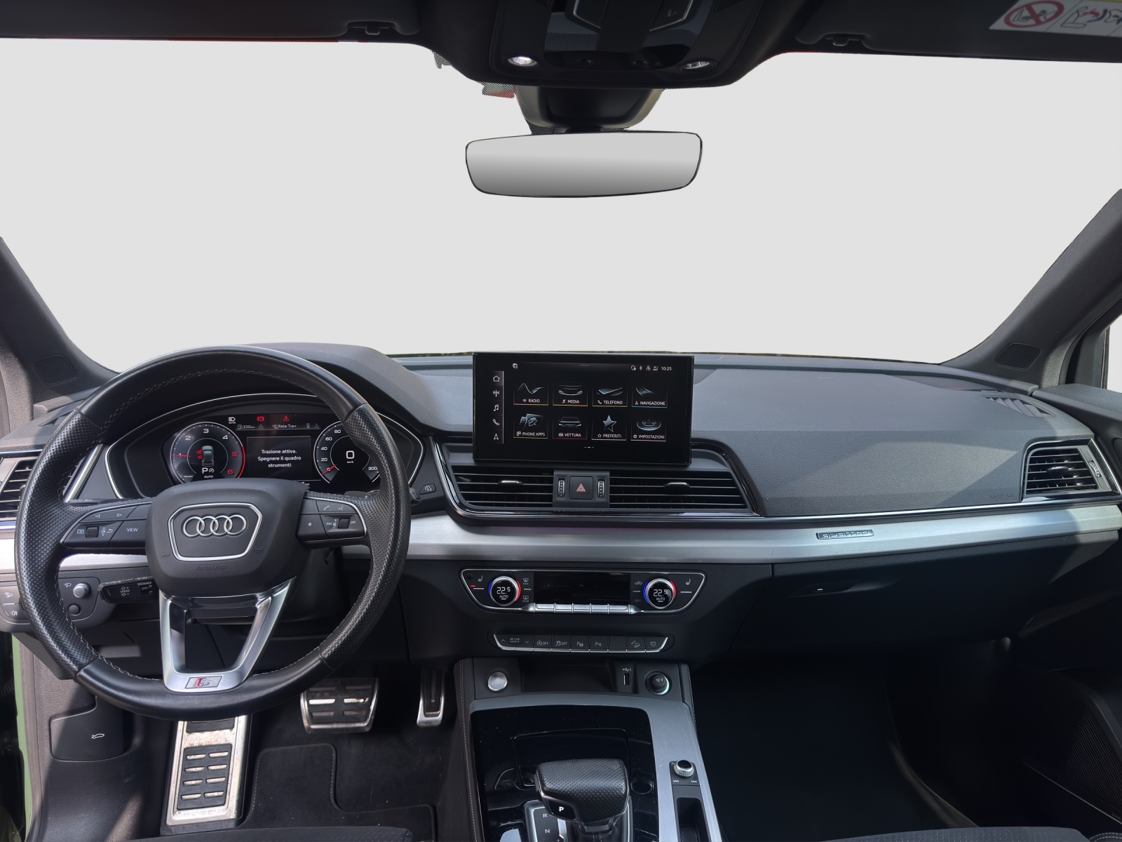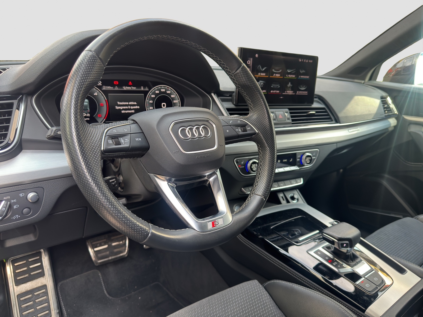 Airbag: Airbag Fahrer und Beifahrer Airbag: Seitenairbags vorne Airbag: Window-Kopfairbags Assist: Einparkhilfe plus Assist: Spurhalteassistent Aussenspiegel rechts und links beheizbar und elektrisch anklappbar, automatisch abblendend Clima: Riscaldamento aria supplementare elettrico Decor: Inserti in Micrometallic argento Dekor: Akzentflächen schwarz matt Elektronisches Stabilitäts-Programm (ESP) Fahrer-Informationssystem Frontscheibe in Akustikverglasung Funkschlüssel, ohne Safelock Fussmatten vorne und hinten Garantie: 2 Jahre ohne Kilometerbegrenzung (ab 1. Inv.) Gepäckraumklappe mit automatischer Öffnung Geschwindigkeitsregelanlage und Geschwindigkeitsbegrenzer Getriebe: 7-Gang- Automat S tronic Indicatore della pressione dei pneumatici Innenspiegel automatisch abblendbar Klima: Klimatisierungsautomatik Kopfstützen vorne höhenverstellbar Ladekantenschutz in Edelstahl Lenkrad: Lederlenkrad im 3-Speichen-Design mit Multifunktion plus Listelli sottoporta anteriori con inserti in alluminio, illuminati, con scritta «S» Mancorrenti tetto in nero incl. supporto traversale per il tetto Media: Audi connect Notruf & Service mit Audi connect Remote & Control Media: Bluetooth-Schnittstelle Media: Digitaler Radioempfang (DAB/DAB+) Modellbezeichnungen (Logo & Model) Pacchetto: Pacchetto Sicurezza Pacchetto: Pacchetto look nero Paraurti rinforzato S line Partikelfilter und Oxydationskatalysator Pneumatici 235/60 R18 103W Privacy-Verglasung (Scheiben abgedunkelt) Reifenpannen-Set (Tire Kit) Ruote: Cerchi in lega leggera, a 5 razze segmentate, grigio grafite, torniti a specchio Räder: Radschrauben Standard Sedili: Sedili posteriori a 3 posti Serbatoio del carburante da 70 litri con serbatoio AdBlue supplementare di 24 litri Servolenkung Elektromechanisch Sitze: Vordersitze heizbar Sitze: Vordersitze manuell einstellbar Sonnenblende auf Fahrer- und Beifahrerseite Specchietti esterni in nero Verbandmaterial,Warndreieck und Warnveste Wegfahrsperre elektronisch