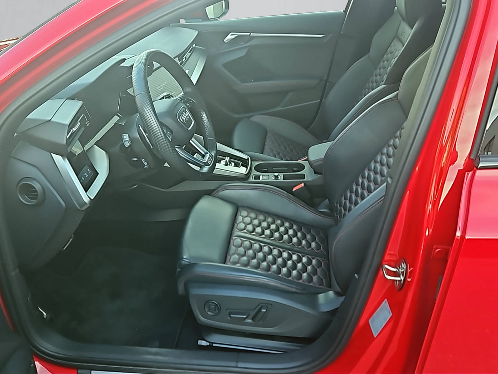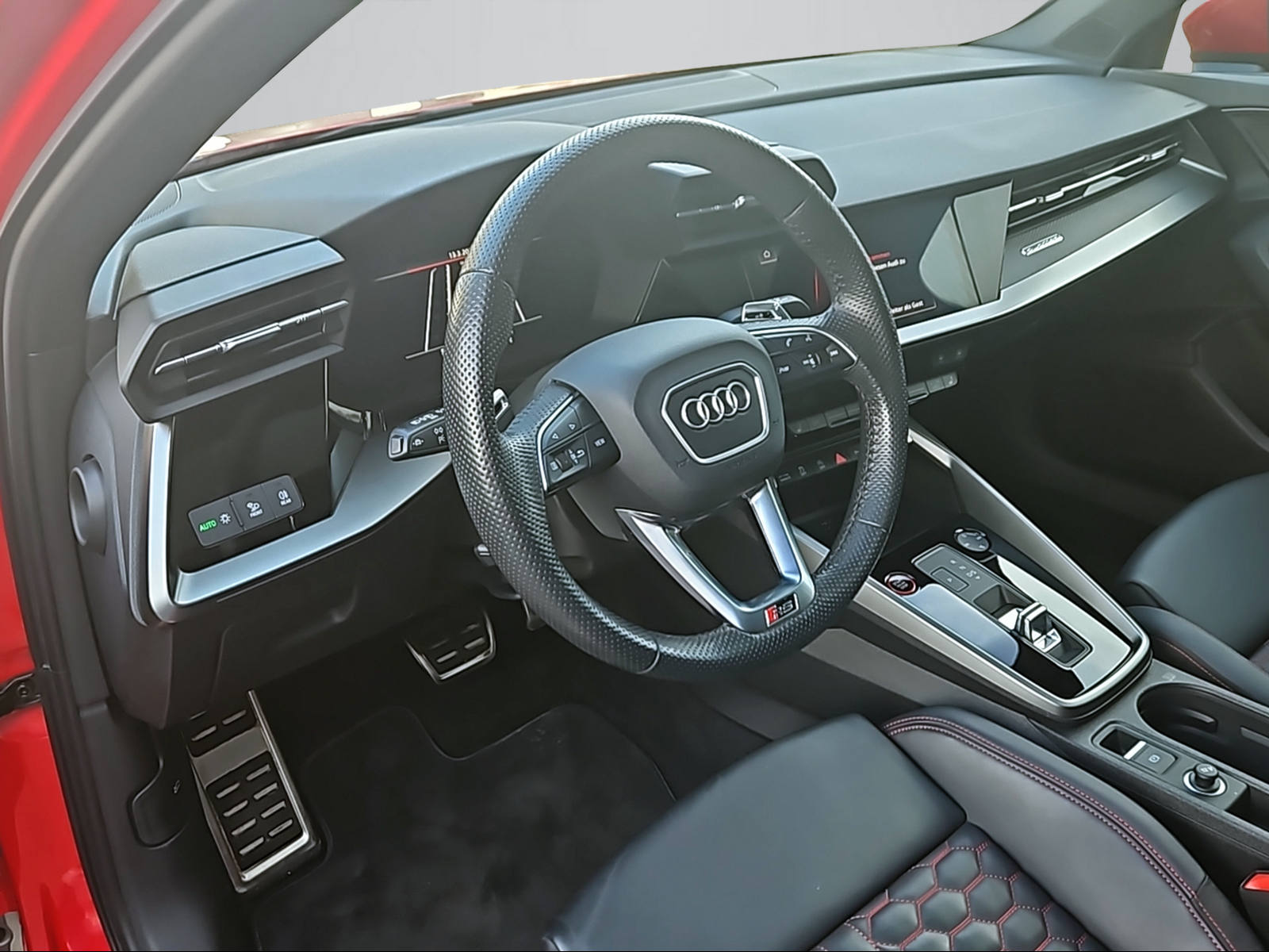 3-Punkt-Sicherheitsgurte auf allen Plätzen Airbag: Airbag für Fahrer und Beifahrer mit Beifahrer-Airbag-Deaktivierung Airbag: Seitenairbags vorn mit Kopfairbagsystem Assist: Geschwindigkeitsbegrenzungsanlage bis 250 km/h Assist: Geschwindigkeitsregelanlage plus Assist: Parkassistent mit Einparkhilfe plus Assist: Proaktiver Insassenschutz Front, Seite und Heck Audi virtual cockpit plus mit zusätzlichem RS-Layout Aussenspiegel elektrisch einstell- und beheizbar Dachhimmel in Stoff schwarz Dachkantenspoiler in Wagenfarbe Dekor: Dekoreinlage Carbon Atlas Struktur Einstiegsleisten in den Türausschnitten, beleuchtet Elektromechanische Parkbremse Elektronische Stabilisierungskontrolle (ESC) Fahrwerk: RS-Sportfahrwerk Frontscheibe in Akustikverglasung Fussmatten vorne und hinten Garantie: 2 Jahre ohne Kilometerbegrenzung (ab 1. Inv.) Getriebe: 7-Gang- Automat S tronic Klima: 2-Zonen-Komfortklimaautomatik Lackierung: Uni-Lackierung Lenkrad: RS-Sportkontur-Lederlenkrad im 3-Speichen-Design Licht: Drittes Bremslicht Licht: Einstiegs LED mit RS-Projektion vorn Licht: LED Heckleuchten mit dynamischem Blinklicht Licht: Nebelschlussleuchte Media: Bluetooth-Schnittstelle Media: Digitaler Radioempfang Media: Lautsprecher (passiv) Paket: Ablagen- und Gepäckraumpaket Paket: Ambiente Lichtpaket plus Paket: Optikpaket schwarz Pedalerie und Fussstütze in Edelstahl Polster: Sitzbezüge in Mikrofaser Dinamica / Kunstleder mono.pur RS-Exterieurumfänge in schwarz matt Räder: Reifendruck-Kontrollanzeige Räder: Reifenreparatur-Set (Tire Fit) Räder: Räder, 10-Y-Speichen, platingrau, glanzgedreht Scheinwerfer-Reinigungsanlage Sitze: Rücksitzlehne, geteilt umklappbar Sitze: Vordersitze manuell einstellbar Verbandmaterial und Warndreieck Wegfahrsperre elektronisch Zentralverriegelung mit Fernbedienung