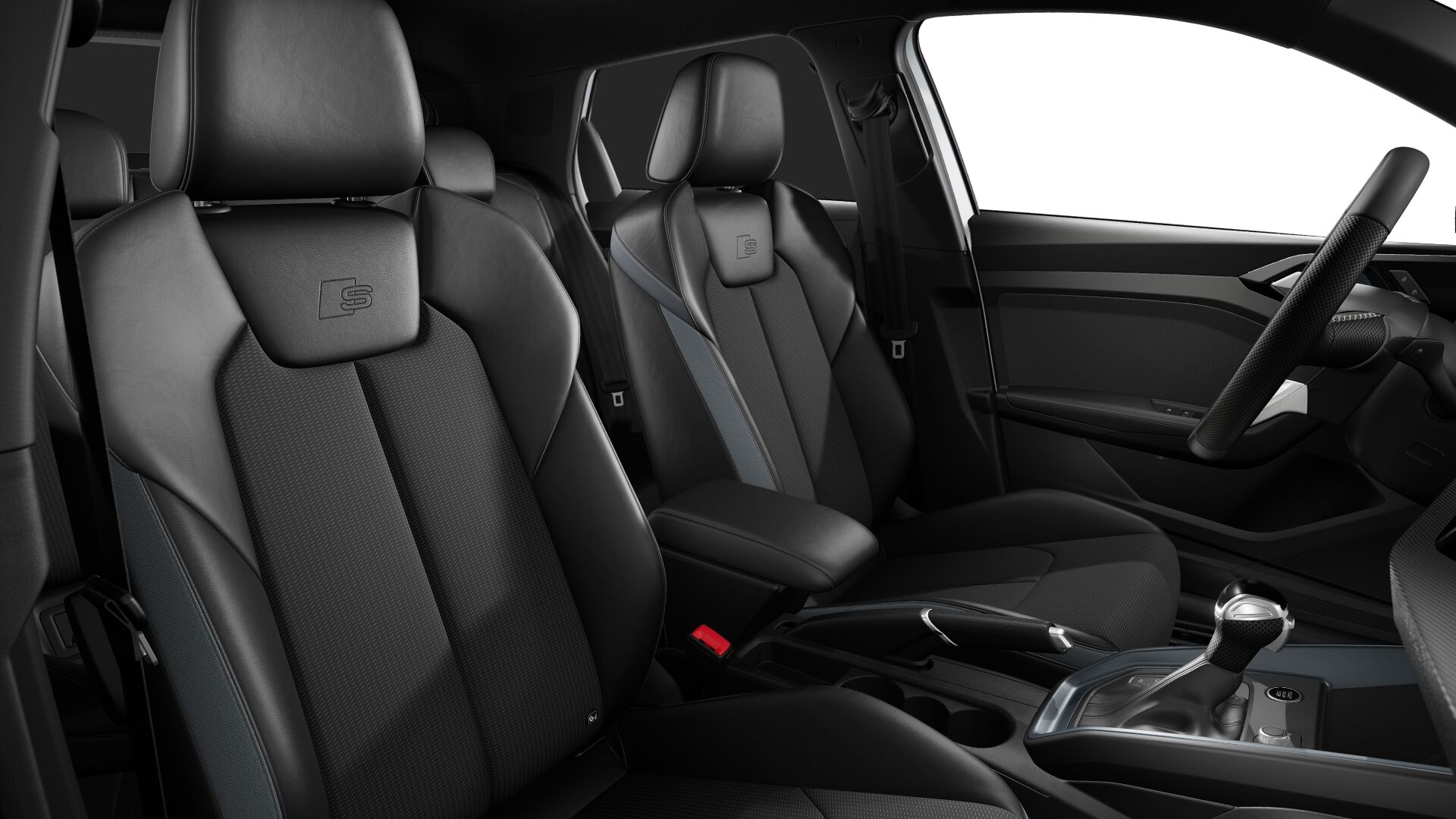 Clé confort (sans verrouillage de sécurité) Dachhimmel in Stoff schwarz Decór: Elements intérieur cuir artificiel Dekor: Aluminiumoptik im Interieur Entfall Modellbezeichnung und Leistungs- / Technologie-Schriftzug Klima: 2-Zonen-Komfortklimaautomatik Pack: Paquet contour/éclairage dambiance, multicolore Pack: S line avec siège sport (combinaison tissu Puls / similicuir mono.pur 550 noir) Peinture: Toit de couleur contrastante Roues: Roues en fonte daluminium Audi Sport - 18 pouces - au design rotor à 7 branches en noir Sièges: Sièges sport à lavant Vitrage de protection solaire assombri