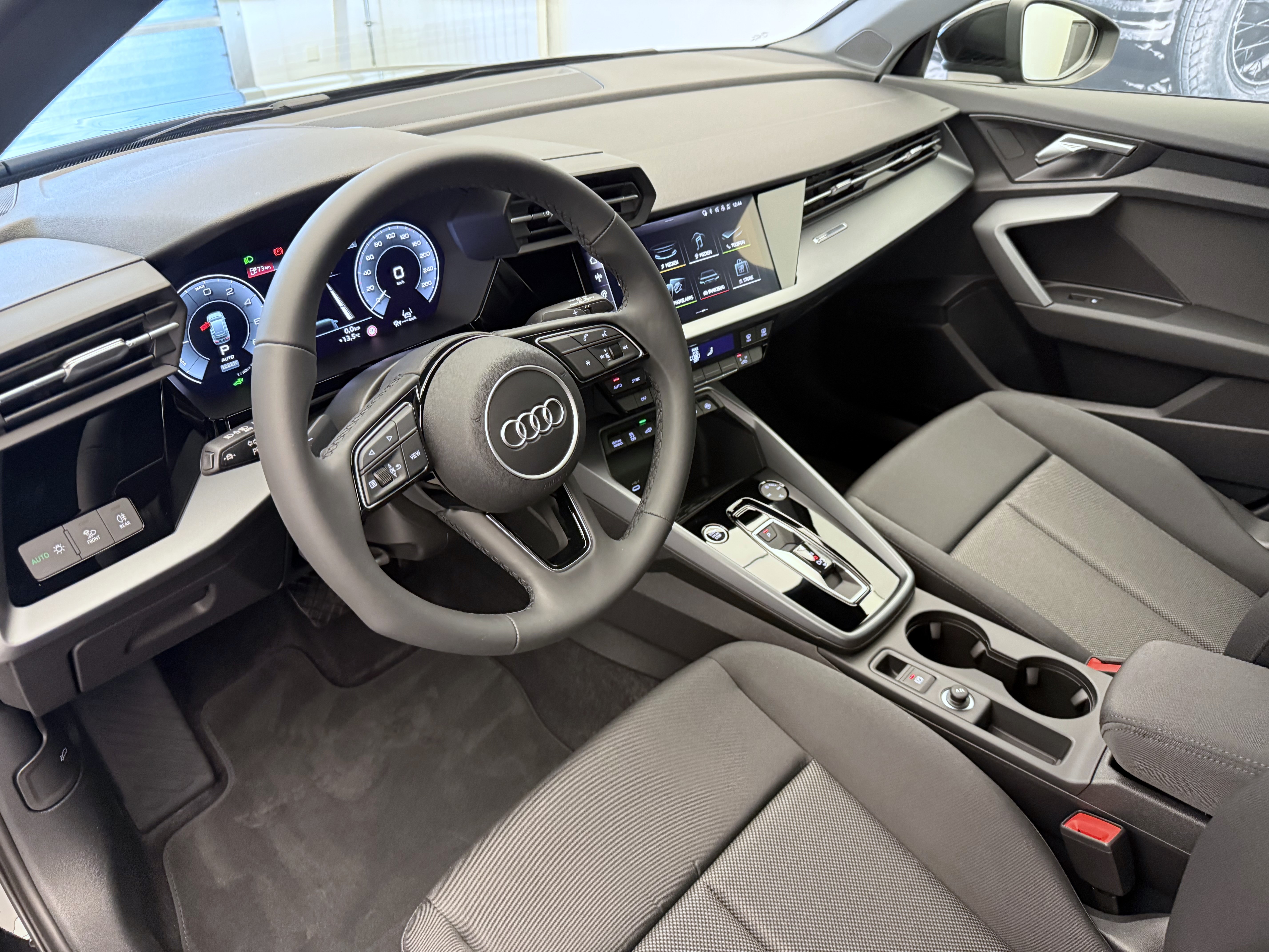 Airbag: Airbag Beifahrer deaktivierbar Airbag: Airbag conducteur Assist: Adaptiver Geschwindigkeitsassistent Assist: Audi pre sense front Assist: Ausweichassistent und Abbiegeassistent Assist: Kamerabasierte Verkehrszeichenerkennung Assist: Parklenkassistent IPA (Intelligent Park Assist) Assist: Spurverlassenswarnung inkl. Notfallassistent Assist: Système proactif de protection des passagers à lavant, sur le côté et à larrière Assist: Traktionskontrolle Audi connect Notruf & Service mit Audi connect Remote & Control Baguettes dappuis de vitres en noir Clima: Climatisation automatique 1 zone avec préparation pour dautres fonctions de climatisation Clima: Climatisation à larrêt Câble de charge mode 3 pour charge publique 11 kW Diffuseur arrière noir mat nervuré Décor: Marqueterie décorative laque fine gris volcan Elektronisches Stabilitäts-Programm (ESP) Garantie: 2 Jahre ohne Kilometerbegrenzung (ab 1. Inv.) Getriebe: 7-Gang- Automat S tronic Grille de calandre noire mate nervurée Insert des prises dair avant noir mat nervuré Insert du diffuseur en argent Sélénite Intérieur avec sièges standard en tissu noir Kindersicherung, elektrisch Komfortschlüssel ohne Safelock Lackierung: Uni-Lackierung Lenkrad: Lederlenkrad im 3-Speichen-Design mit Multifunktion plus und Schaltwippen Licht: Fernlicht-Assistent Lumière et capteur de pluie Lève-vitres électrique avant Media: Audi Application Store und Smartphone-Interface Media: Audi connect Navigation & Infotainment plus Media: LTE-Unterstützung für Audi phone box Media: Ports USB avec fonction de charge à larrière Pack: Pack Assistance conduite et stationnement plus Pack: Pack Info-divertissement Connectivity Pack: Phares avant LED et feux arrière LED avec clignotants arrière dynamiques Pack: pack Ambiente Light Pare-brise avec vitrage athermique Prise de recharge CA de type 2 Prise domestique type J (Suisse) pour le système de charge e-tron Prise industrielle CEE 16A, 400V, longue et droite pour le système de charge e-tron Roues: Jantes, design à 5 branches en V Räder: Reifendruck-Kontrollanzeige Räder: Reifenreparatur-Set (Tire Fit) Rétroviseurs ext. couleur carosserie Sitze: Rücksitzlehne umklappbar Sièges: Fixation de siège enfant conforme i-Size sur les sièges passager et arrière extérieurs, Sièges: i-Size et Top Tether pour les sièges extérieurs à larrière Suspension: Adaptation du système de freinage Système de recharge compact e-tron Verrouillage centralisé à télécommande Wegfahrsperre elektronisch