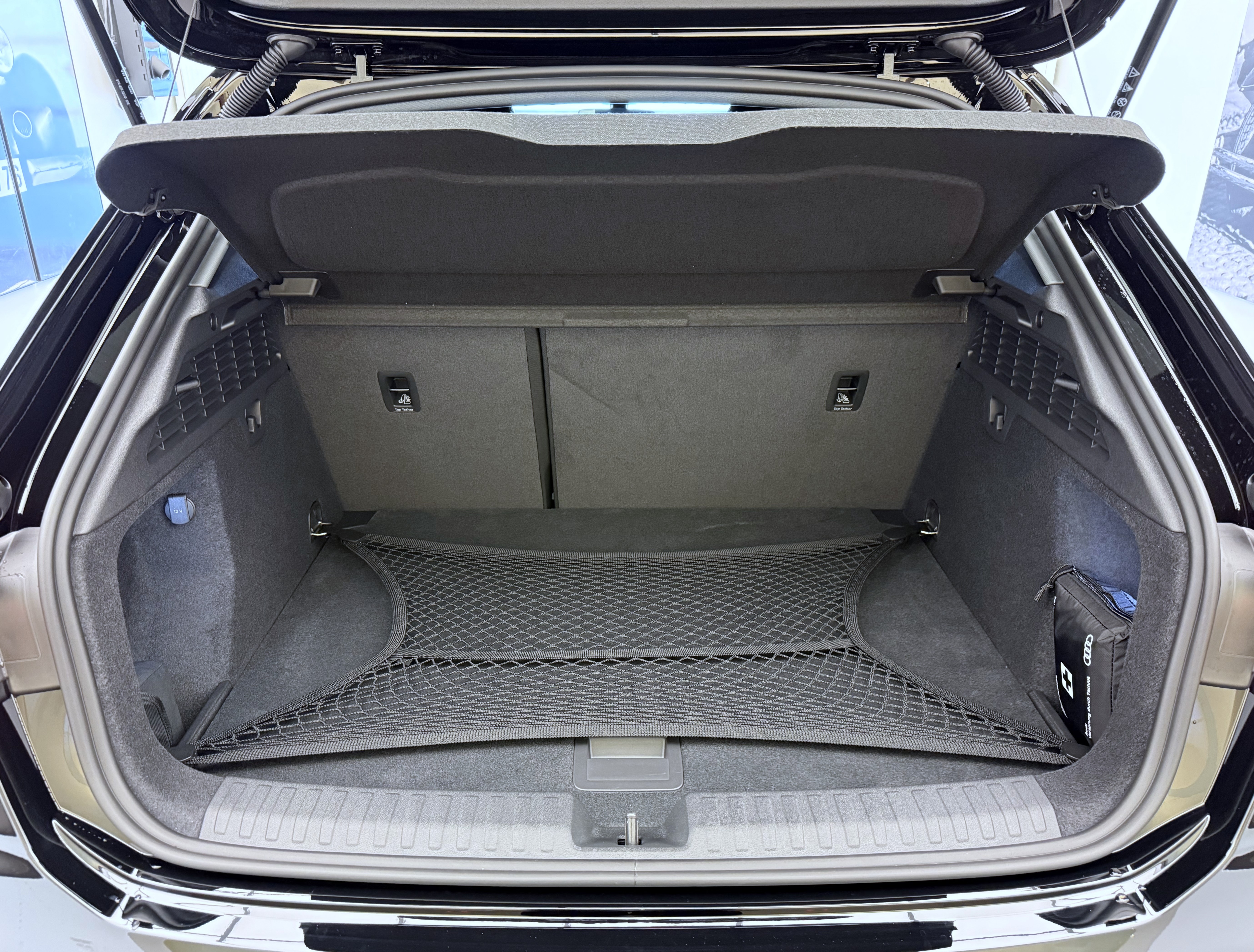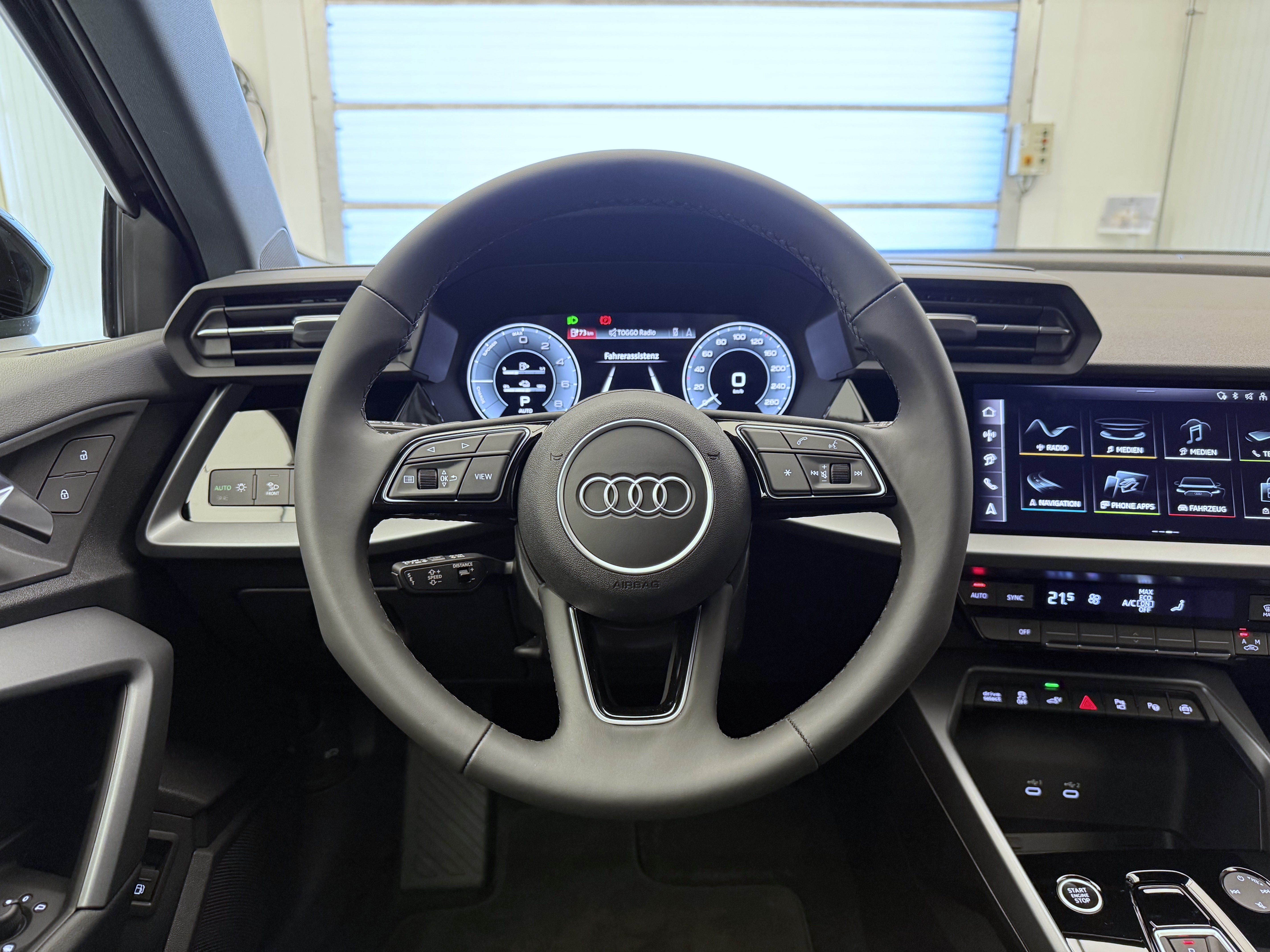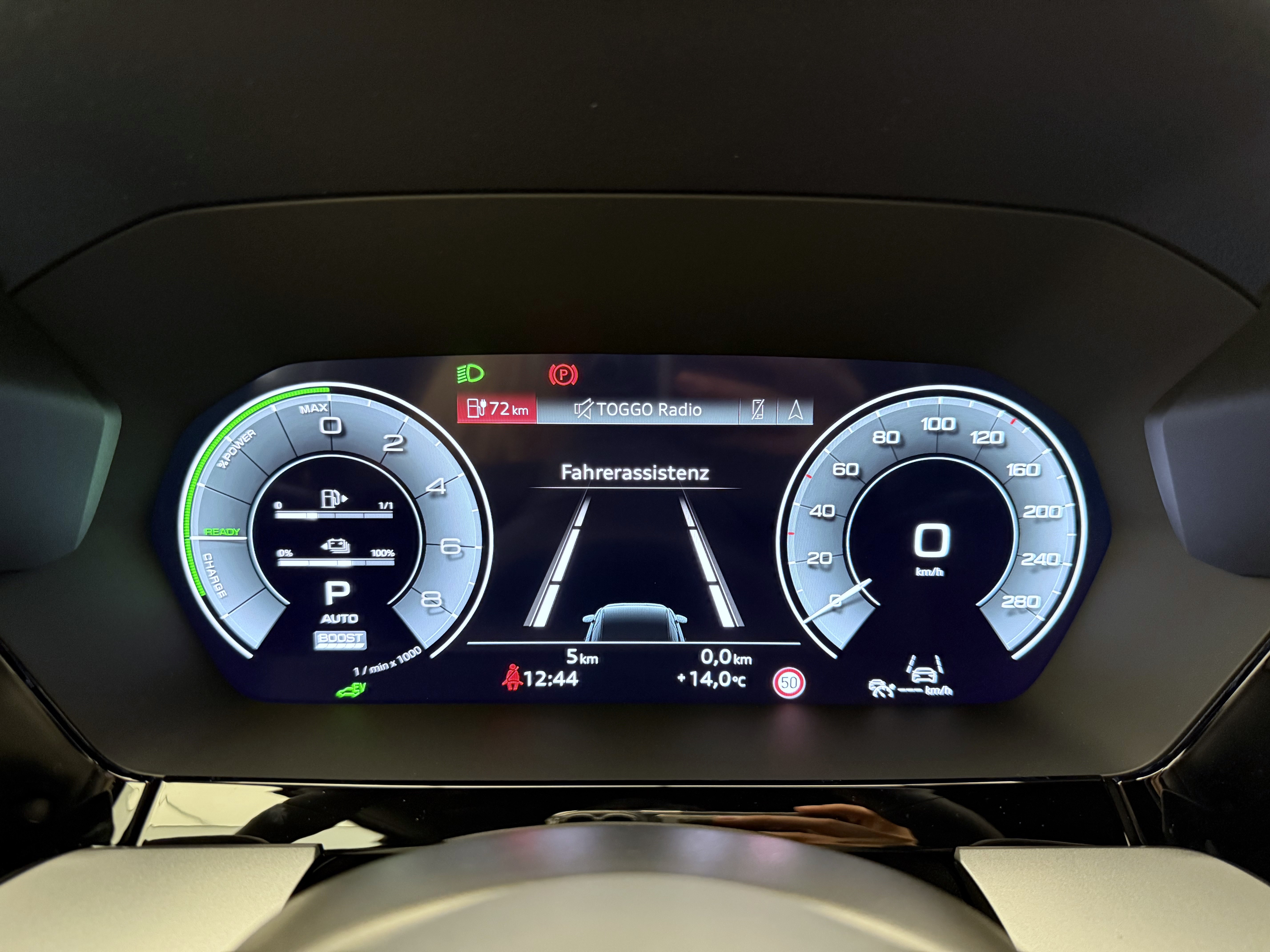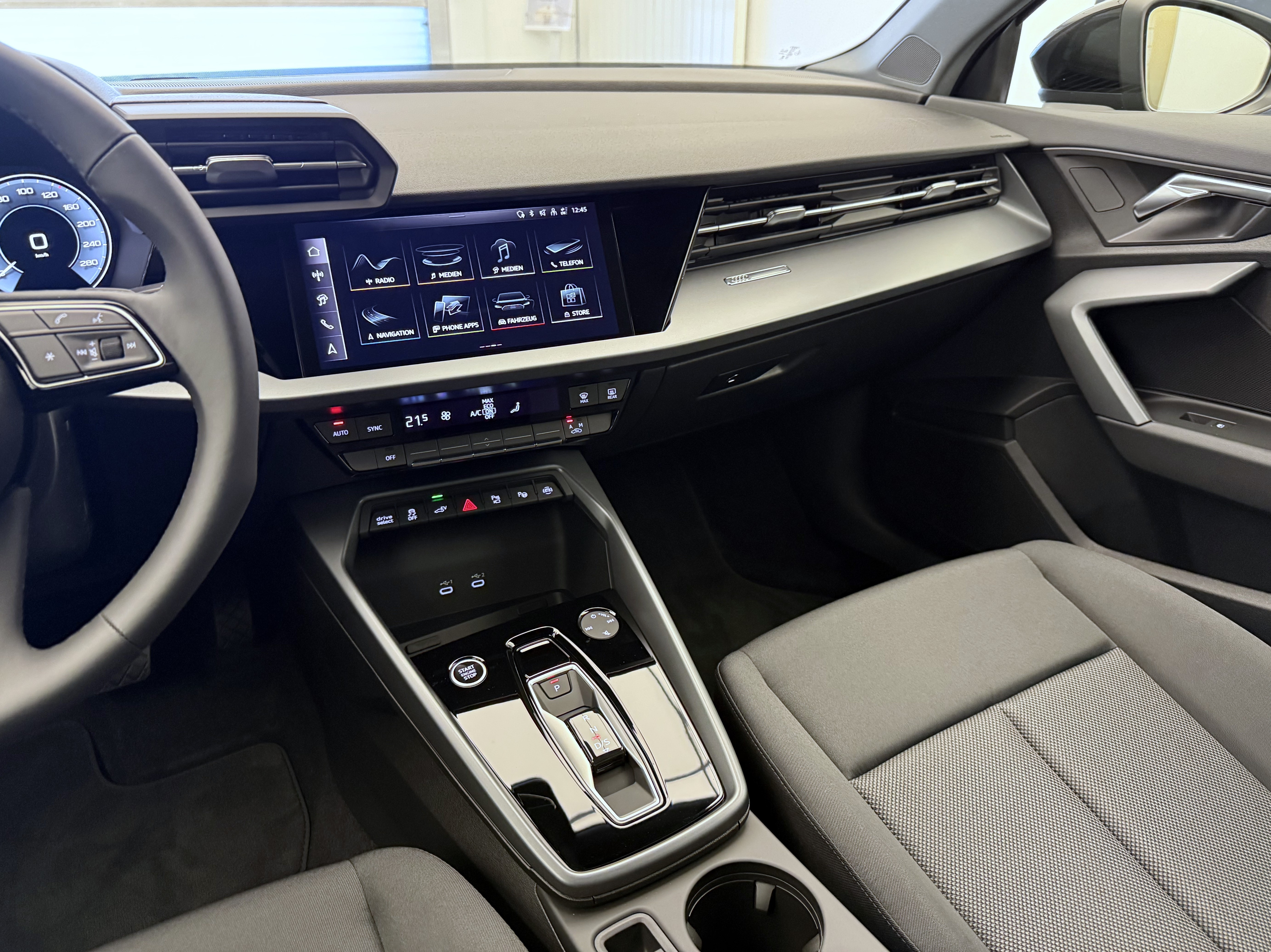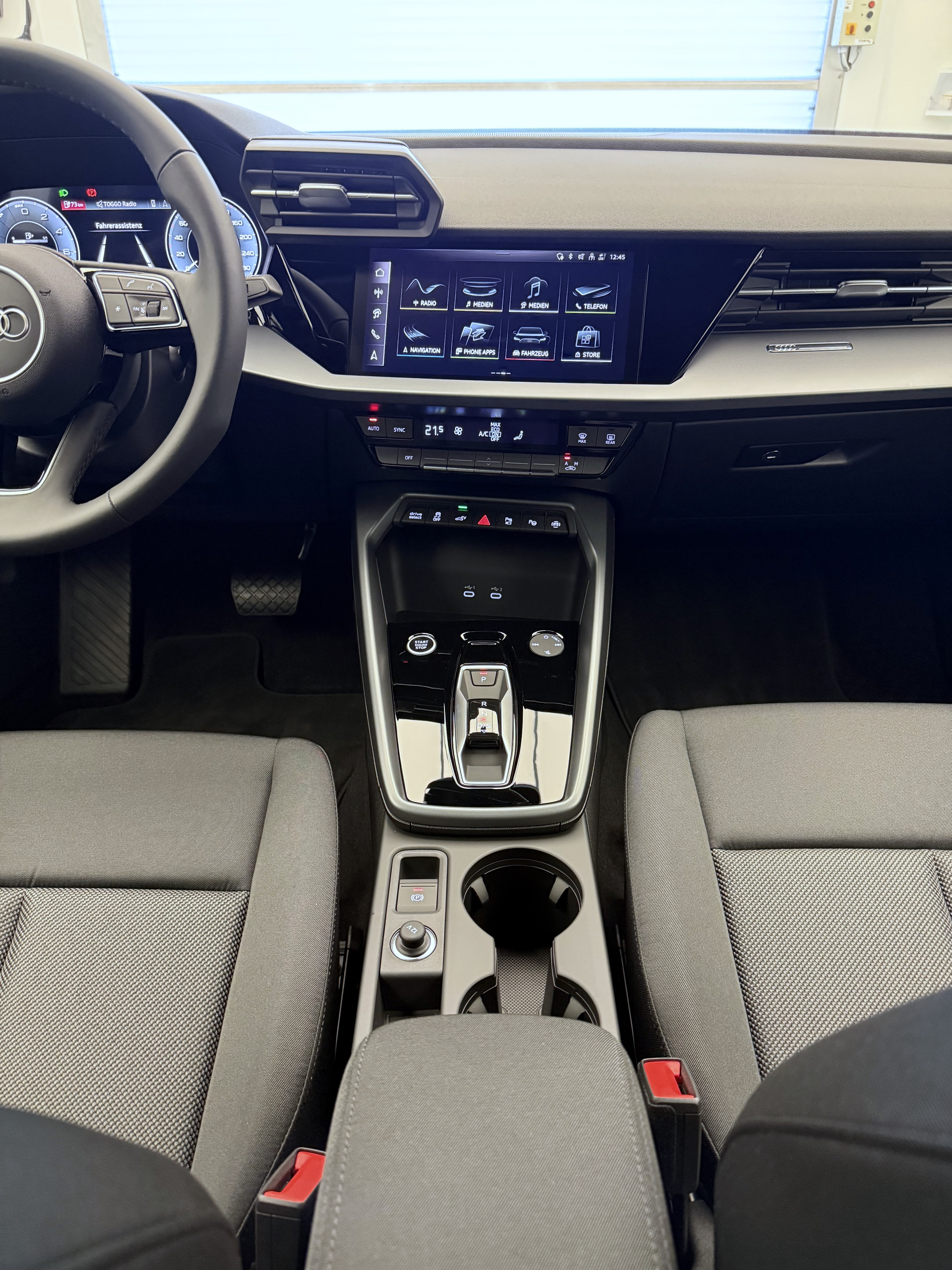 Airbag: Airbag Beifahrer deaktivierbar Airbag: Airbag conducteur Assist: Adaptiver Geschwindigkeitsassistent Assist: Audi pre sense front Assist: Ausweichassistent und Abbiegeassistent Assist: Kamerabasierte Verkehrszeichenerkennung Assist: Parklenkassistent IPA (Intelligent Park Assist) Assist: Spurverlassenswarnung inkl. Notfallassistent Assist: Système proactif de protection des passagers à lavant, sur le côté et à larrière Assist: Traktionskontrolle Audi connect Notruf & Service mit Audi connect Remote & Control Baguettes dappuis de vitres en noir Clima: Climatisation automatique 1 zone avec préparation pour dautres fonctions de climatisation Clima: Climatisation à larrêt Câble de charge mode 3 pour charge publique 11 kW Diffuseur arrière noir mat nervuré Décor: Marqueterie décorative laque fine gris volcan Elektronisches Stabilitäts-Programm (ESP) Garantie: 2 Jahre ohne Kilometerbegrenzung (ab 1. Inv.) Getriebe: 7-Gang- Automat S tronic Grille de calandre noire mate nervurée Insert des prises dair avant noir mat nervuré Insert du diffuseur en argent Sélénite Intérieur avec sièges standard en tissu noir Kindersicherung, elektrisch Komfortschlüssel ohne Safelock Lackierung: Uni-Lackierung Lenkrad: Lederlenkrad im 3-Speichen-Design mit Multifunktion plus und Schaltwippen Licht: Fernlicht-Assistent Lumière et capteur de pluie Lève-vitres électrique avant Media: Audi Application Store und Smartphone-Interface Media: Audi connect Navigation & Infotainment plus Media: LTE-Unterstützung für Audi phone box Media: Ports USB avec fonction de charge à larrière Pack: Pack Assistance conduite et stationnement plus Pack: Pack Info-divertissement Connectivity Pack: Phares avant LED et feux arrière LED avec clignotants arrière dynamiques Pack: pack Ambiente Light Pare-brise avec vitrage athermique Prise de recharge CA de type 2 Prise domestique type J (Suisse) pour le système de charge e-tron Prise industrielle CEE 16A, 400V, longue et droite pour le système de charge e-tron Roues: Jantes, design à 5 branches en V Räder: Reifendruck-Kontrollanzeige Räder: Reifenreparatur-Set (Tire Fit) Rétroviseurs ext. couleur carosserie Sitze: Rücksitzlehne umklappbar Sièges: Fixation de siège enfant conforme i-Size sur les sièges passager et arrière extérieurs, Sièges: i-Size et Top Tether pour les sièges extérieurs à larrière Suspension: Adaptation du système de freinage Système de recharge compact e-tron Verrouillage centralisé à télécommande Wegfahrsperre elektronisch