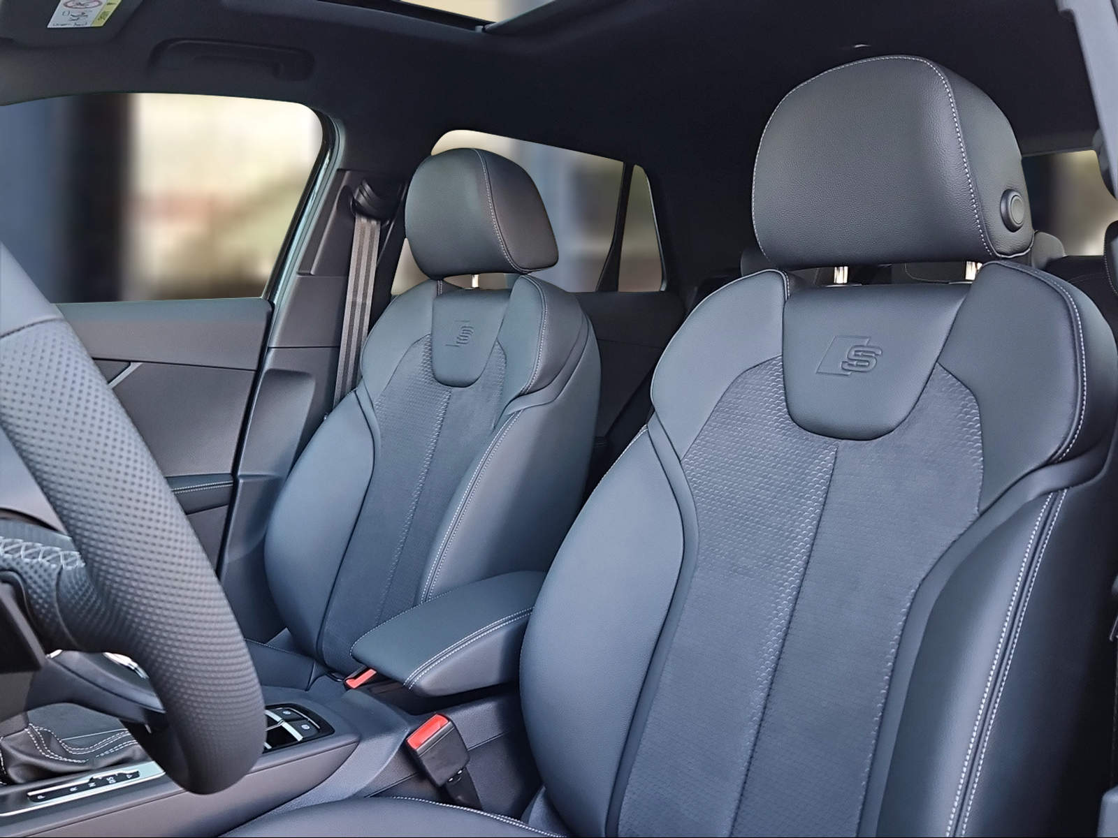 Assist: Parkassistent mit Einparkhilfe plus Audi virtual cockpit plus Aussenspiegel in Wagenfarbe Dekor: Dekoreinlagen Lichtgrafik Format Garantie: Audi Swiss Service Package + (ASSP+) Interieur S line mit Sportsitzen in Mikrofaser Dinamica/Leder-Kombination schwarz Komfortschlüssel (ohne Safelock) Lackierung: Metallic-Lackierung Lenkrad: Sportkontur-Lederlenkrad im 3-Speichen-Design mit Multifunktion plus und Schaltwippen, Media: SONOS Premium Soundsystem Paket: Ambiente Lichtpaket plus Paket: Assistenzpaket Fahren 2 Paket: Assistenzpaket Parken Paket: Assistenzpaket Sicherheit Paket: Excellence Paket SQ2 Paket: Kindersicherheits-Paket Paket: Optikpaket schwarz plus schwarz Hochglanz für Typenzeichen und Audiringe Privacy Verglasung (Scheiben abgedunkelt) Räder: Leichtmetallräder, 5-Doppelspeichen-Edge titangrau matt, glanzgedreht Scheibenbremsen hinten, 15 Zoll, Bremssättel rot lackiert Vorrüstung Anhängerkupplung