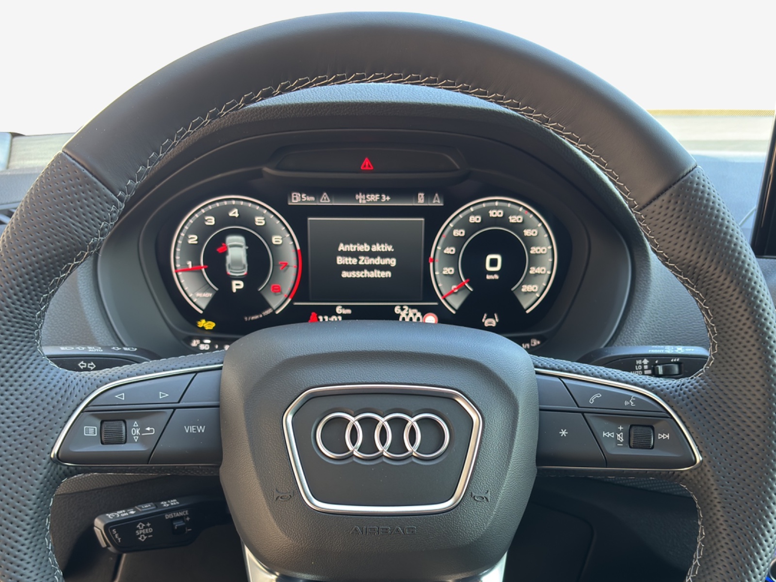 Assist: Adaptiver Geschwindigkeitsassistent Assist: Audi pre sense front Assist: Spurwechselwarnung Capot de coffre à ouverture et fermeture électriques Clima: Climatisation automatique confort Clé confort (sans verrouillage de sécurité) Dekor: Dekoreinlagen in Aluminium matt gebürstet Décor: Inserts décoratifs format graphique lumineux Intérieur S line avec sièges sport en combinaison tissu/cuir Noir/Gris Lackierung: Metallic-Lackierung Licht: Fernlicht-Assistent Lumière: Feux arriere a DEL Media: LTE-Unterstützung für Audi phone box Pack: Forfait Excellence Q2 Pack: Pack Assistance au stationnement Pack: Pack Assistance conduite 2 Pack: Pack Assistance sécurité Pack: Pack Infodivertissement Pack: Pack sécurité enfant Pack: Pack technologique Q2 Pack: Paquet optique noir Pack: Sièges du pack confort Paket: Ambiente Lichtpaket plus Roues: Jantes all. léger, style trap. à 5 br. dbles, Noir, tourn. brill. Sitze: Rücksitzlehne, geteilt umklappbar Sitze: Vordersitze heizbar