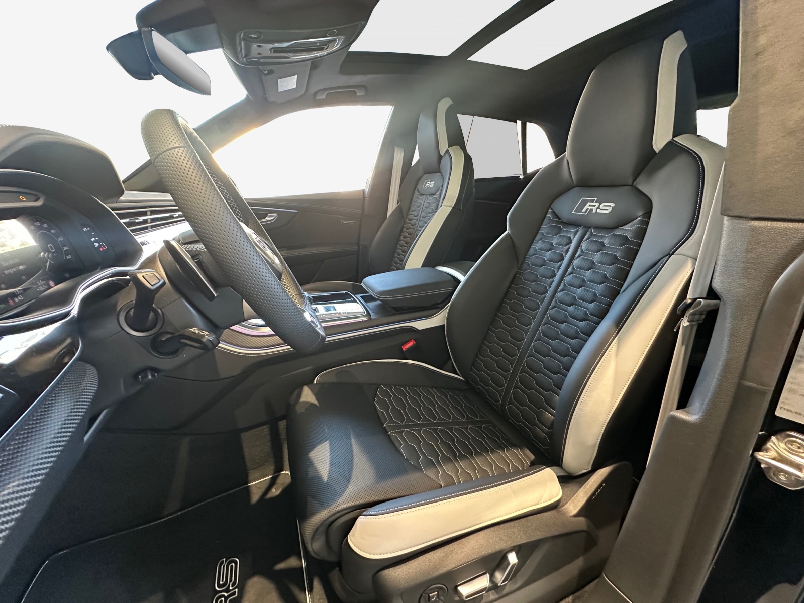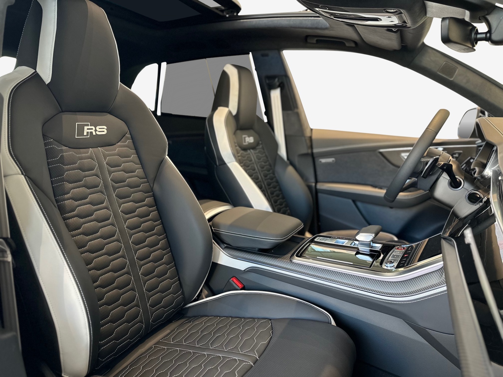 48-Volt-Bordnetz plus aktive Batteriekühlung Airbag: Airbag Beifahrer deaktivierbar Airbag: Seitenairbags vorn und Kopfairbagsystem Assist: Audi pre sense basic Assist: Audi pre sense front Assist: Geschwindigkeitsregelanlage mit Geschwindigkeitsbegrenzer Assist: Kamerabasierte Verkehrszeichenerkennung Assist: Multifunktionskamera Assist: Spurverlassenswarnung Audi virtual cockpit plus mit zusätzlichem RS-Layout Aussenspiegel elektrisch, beheiz- und anklappbar, mit Memory-Funktion Aussenspiegelgehäuse in Grau matt Dachhimmel in Stoff schwarz Dekor: Bedientasten schwarz glänzend mit haptischem Feedback und Aluminiumoptik Interieur Dekor: Dekoreinlagen in Aluminium Race anthrazit Dekor: Interieurelemente in Leder oben und unten Fahrwerk: Adaptive air suspension sport Fahrwerk: RS-Keramikbremsanlage mit Bremssätteln anthrazitgrau Fahrwerk: quattro mit selbstsperrendem Mittendifferenzial Fensterzierleisten in Grau matt mit Audi Ringen in Polarweiss und Typzeichen in Schwarz Frontscheibe in Wärmeschutzverglasung Fussmatten vorne und hinten Garantie: Audi Garantie 2 Jahre ohne Kilometerbegrenzung (ab 1. Inv.) Getriebe: tiptronic 8-stufig Innenspiegel automatisch abblendend, rahmenlos Klima: Ionisator und Aromatisierung Klima: Komfortklimaautomatik 4-Zonen Komfortmittelarmlehne vorn Kraftstoffbehälter mit erhöhtem Füllvolumen Lackierung: Uni-Lackierung Ladekantenschutz in Edelstahl Lenkrad: Lederlenkrad im 3-Speichen-Design mit Multifunktion, Schaltwippen und Lenkradheizung Lenkrad: Lenkradeinstellung elektrisch Licht: LED Heckleuchten plus Licht: Scheinwerfer-Reinigungsanlage Licht: Warnleuchten Türen vorn und Rückstrahler Türen hinten Media: Audi connect Navigation & Infotainment Media: Audi connect Notruf & Service mit Audi connect Remote & Control Media: Audi music interface Media: Audi phone box light Media: Bang & Olufsen Premium Soundsystem mit 3D Klang Media: Digitaler Radioempfang Paket: Ambiente-Lichtpaket plus Pedalerie und Fussstütze in Edelstahl Polster: Lederausstattung Valcona perforiert mit Wabensteppung RS Exterieurumfänge grau matt RS-Dachkantenspoiler in Wagenfarbe RS-Stossfänger in Wagenfarbe Räder: Radschrauben mit Diebstahlsicherung und Radlöseerkennung Räder: Reifendruckkontrollsystem Räder: Reifenreparatur-Set (Tire Fit) Räder: Räder, 10-Speichen-Stern Scheiben seitlich und hinten in Wärmeschutzverglasung Servolenkung Elektromechanisch Singleframe Maske in Schwarz Sitze: 4-Wege-Lendenwirbelstütze für die Vordersitze Sitze: Kindersitzbefestigung ISOFIX-konform für den Beifahrersitz Sitze: Kindersitzbefestigung ISOFIX-konform und Top Tether für die Rücksitzbank Sitze: Sitzbelüftung vorne Sitze: Sportsitze plus vorne Sitze: Vordersitze elektrisch einstellbar mit Memory-Funktion Sitze: Vordersitze heizbar Sonnenblenden vorn, verschiebbar Türen: Gepäckraumklappe elektrisch öffnend und schliessend Verbandmaterial und Warndreieck