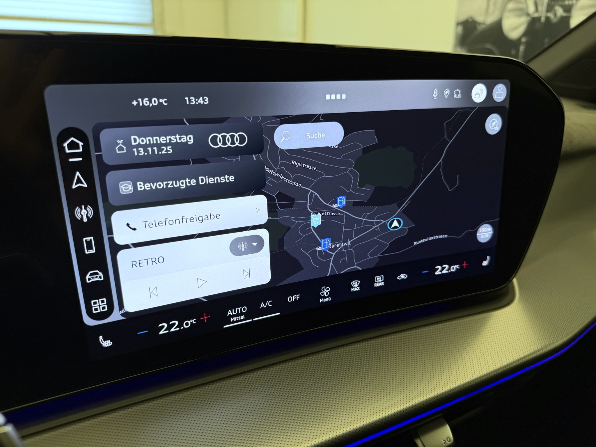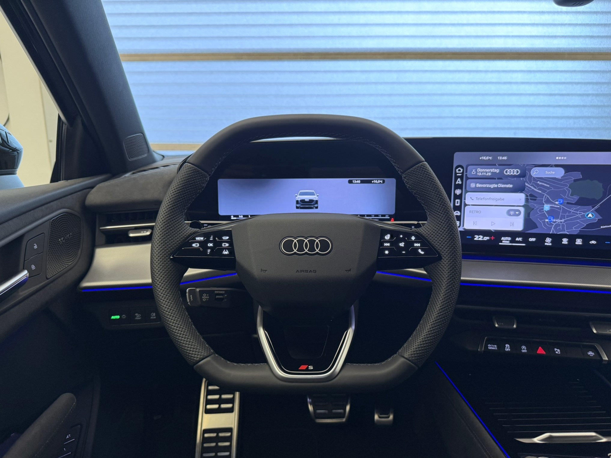Garantie: Audi Swiss Service Package+ (ASSP+) Komfortschlüssel ohne Safelock Licht: Fernlicht-Assistent Mèdias: Amplificateur de signal de téléphonie mobile de type 1 Mèdias: Emplacement pour téléphone avec fonction de recharge inductive Pack: Intérieur S line avec sièges sport en cuir noir/similicuir Pack: Intérieur S line avec sièges sport en microfibre noire Pack: Pack Assistance Conduite et Stationnement pro et Pack Assistance Systèmes de Protection et d' Pack: Pack climatisation plus Pack: Pack expérience premium Pack: Phares à LED matriciels numériques avec feux arrière à LED, Peinture: Peinture nacrée Gris Daytona Roues: Jantes Audi Sport, tripode à 5 branches, noir métallisé, brillant, foncé Toit ouvrant panoramique (en 2 partie) Vitrage de contrôle solaire, obscurci Volant: Volant sport en cuir, à 3 branches, aplati en haut et en bas avec multifonction,