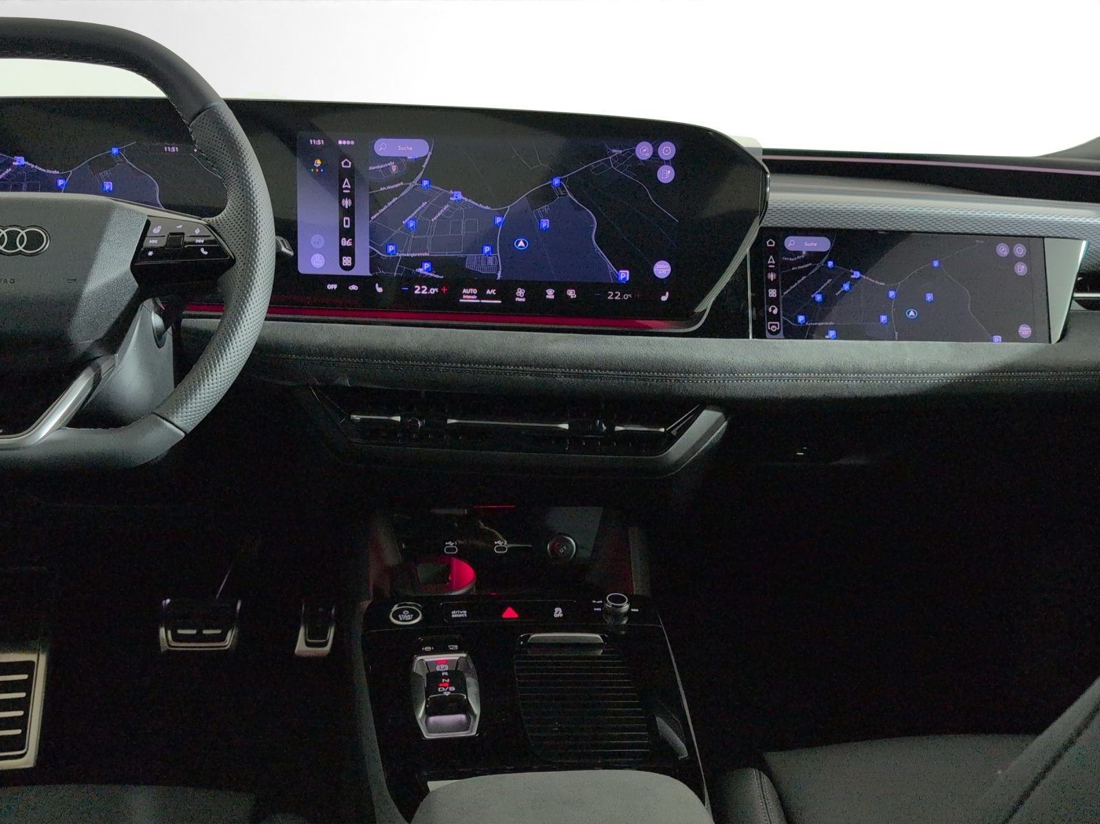 Airbag: Airbag Fahrer und Beifahrer Airbag: Seitenairbag vorn, mit Kopfairbag und Interaktionsairbag vorn Akustisches Fahrzeug-Warnsystem Assist: Adaptiver Geschwindigkeitsassistent Assist: Aufmerksamskeits-und Müdigkeitserkennung mit Fahrerbeobachtung Assist: Ausweichassistent und Abbiegeassistent Assist: Einparkhilfe plus mit Distanzanzeige Assist: Kamerabasierte Verkehrszeichenerkennung Assist: Notbremsassistent vorn Assist: Parkassistent plus Assist: Proaktiver Insassenschutz Front, Seite und Heck Assist: Querverkehrassistent vorn Assist: Spurverlassenswarnung inkl. Notfallassistent Assist: Spurwechsel- und Ausstiegswarnung, Querverkehrassistent hinten und Abbiegeassistent hinten Assist: Traktionskontrolle Assist: Verkehrszeichenbasierter Geschwindigkeitsbegrenzer Audi virtual cockpit plus Aussenspiegel elektrisch einstell-, beheiz- und anklappbar, beidseitig automatisch abblendend Aussenspiegel in Wagenfarbe Dachhimmel Stoff, Farbe felsgrau Dekor: Dekoreinlage Aluminium matt gebürstet anthrazit Dekor: Instrumententafel-Oberseite schwarz mit Kontrastnaht Dekor: Interieurapplikationen Aluminiumoptik Dekor: Interieurelemente oben und unten Kunstleder Einstiegsleisten mit Aluminiumeinlegern vorn Elektrische Fensterheber vorne Elektronisches Stabilitäts-Programm (ESP) Fahrwerk: Dynamikfahrwerk Fensterzierleisten Aluminiumoptik Fussmatten vorne und hinten Garantie: Audi Garantie 2 Jahre ohne Kilometerbegrenzung (ab 1. Inv.) Getriebe: 2-Stufen Automatisiertes Schaltgetriebe Innenspiegel automatisch abblendbar Klima: Automatische Umluftregelung Klima: Elektrische Luftzusatzheizung Klima: Komfortklimaautomatik 3-Zonen Klima: Standklimatisierung Komfortschlüssel ohne Safelock Lackierung: Uni-Lackierung Ladekabel Mode 3 für öffentliches Laden bis 22 kW Lenkrad: Doppelspeichen-Lederlenkrad mit Multifunktion Lenkrad: Lenkradapplikation Chromoptik Lenkrad: Lenkradeinstellung manuell Licht: Fernlicht-Assistent Licht: LED-Heckleuchten pro Licht: LED-Scheinwerfer plus Licht: Leuchtende Audi Ringe hinten Licht: Projektionsleuchte in den Aussenspiegeln Licht: Scheinwerfer-Reinigungsanlage Licht: Tagesfahrlicht mit Assistenzfahrlicht u.Coming- u. Leaving-home Funktion automatisch Media: Audi Application Store und Smartphone-Interface Media: Audi connect Navigation & Infotainment Media: Audi connect Notruf & Service mit Audi connect Remote & Control Media: Digitaler Radioempfang (DAB) Media: FOD Funktionen online verfügbar Media: MMI experience mit Audi Soundsystem Media: Telefonablage mit induktiver Ladefunktion Media: USB-Anschlüsse mit Ladefunktion in erster und zweiter Sitzreihe Modellkennzeichnung am Heck On-board-Ladegerät bis 11 kW (AC) Paket: Ambiente Lichtpaket Paket: Assistenzpaket Fahren und Parken Paket: Assistenzpaket Schutz- und Warnsysteme plus Räder: Reifendruck-Kontrollanzeige Räder: Reifenreparatur-Set (Tire Fit) Räder: Räder, 5-Arm-Dynamik, platingrau Scheiben seitlich und hinten in Wärmeschutzverglasung Schlüssel für Schliesssystem mit Fernbedienung Sitze: 4-Wege-Lendenwirbelstütze für die Vordersitze Sitze: Interieur mit Normalsitzen, Stoff schwarz Sitze: Kindersitzbefestigung i-Size auf der Beifahrerseite und i-Size und Top Tether Sitze: Rücksitzbank ungeteilt, Lehne geteilt umlegbar (dreiteilig) mit Mittelarmlehne Sitze: Vordersitze heizbar Sitze: Vordersitze manuell einstellbar Türen: Gepäckraumklappe elektrisch öffnend und schliessend Türen: Türgriffe in Wagenfarbe Verbandmaterial,Warndreieck und Warnveste Vorbereitung für Anhängevorrichtung Vorbereitung für intelligente Ladefunktionen Wegfahrsperre elektronisch Wärmeschutz- und Akustikverglasung Frontscheibe Zentralverriegelung mit Fernbedienung