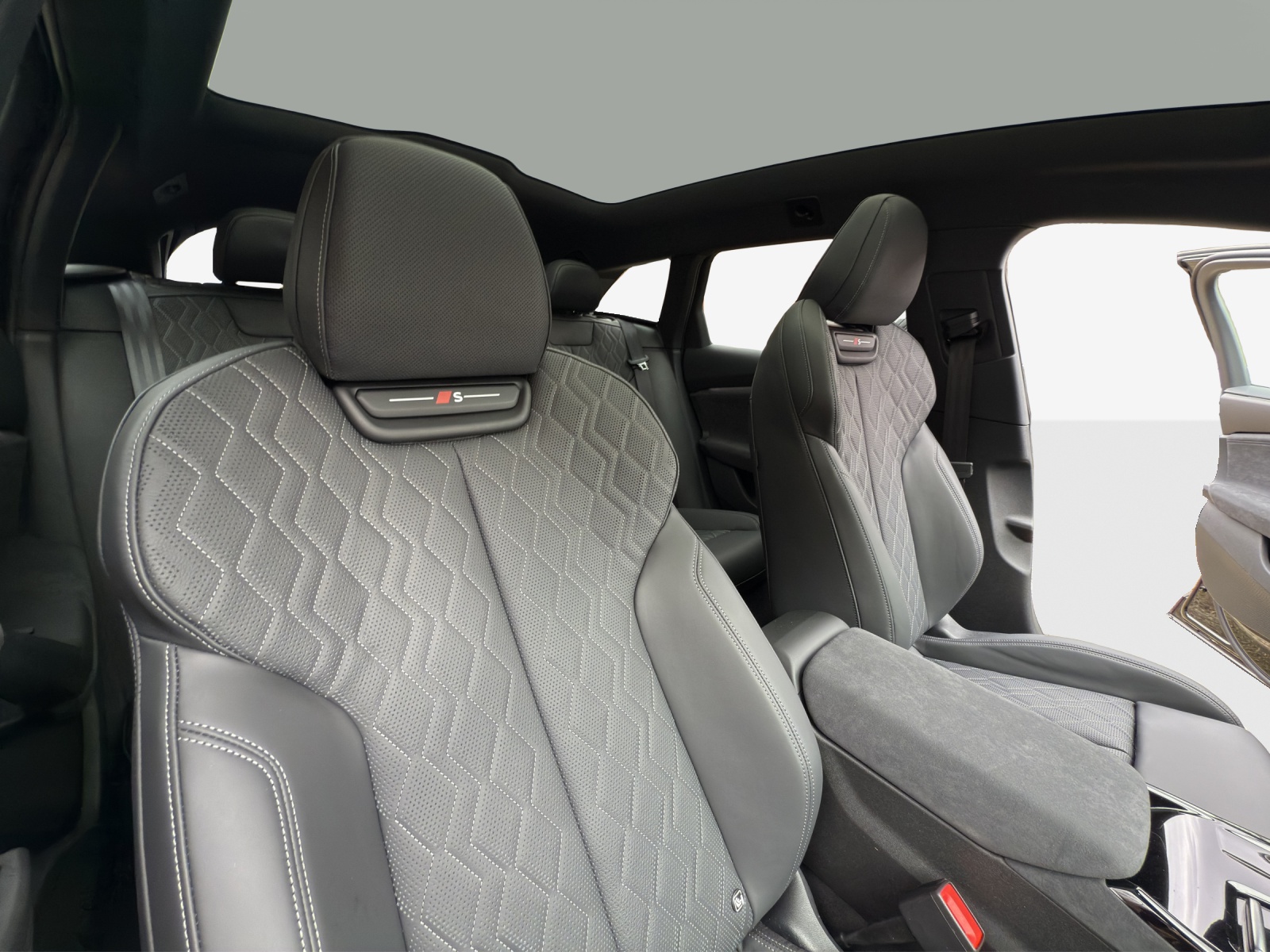 Airbag: Airbag Fahrer und Beifahrer Airbag: Seitenairbag vorn, mit Kopfairbag und Interaktionsairbag vorn Akustikverglasung für Türscheiben vorn Assist: Adaptiver Geschwindigkeitsassistent Assist: Aufmerksamskeits-und Müdigkeitserkennung mit Fahrerbeobachtung Assist: Ausweichassistent und Abbiegeassistent Assist: Einparkhilfe plus mit Distanzanzeige Assist: Kamerabasierte Verkehrszeichenerkennung Assist: Notbremsassistent vorn Assist: Parkassistent plus Assist: Querverkehrassistent vorn Assist: Spurverlassenswarnung Assist: Traktionskontrolle Assist: Verkehrszeichenbasierter Geschwindigkeitsbegrenzer Audi virtual cockpit plus Aussenspiegel elektrisch einstell-, beheiz- und anklappbar, beidseitig automatisch abblendend Aussenspiegelgehäuse Chromoptik matt silber Dachhimmel in Stoff schwarz Dekor: Akzentflächen und Bedientasten schwarz glänzend Dekor: Dekoreinlagen Aluminium matt gebürstet mit Linearprägung anthrazit Dekor: Instrumententafel-Oberseite schwarz mit Kontrastnaht Dekor: Interieurapplikationen Aluminiumoptik Dekor: Interieurelemente oben und unten Kunstleder plus Einstiegsleisten mit Aluminiumeinlagen, vorne, beleuchtet, mit S-Schriftzug Elektrische Fensterheber vorne Elektronisches Stabilitäts-Programm (ESP) Fahrwerk: Adaptives S-Luftfederfahrwerk Fahrwerk: Bremssättel rot lackiert Fensterzierleisten Aluminiumoptik Fussmatten vorne und hinten Garantie: Audi Garantie 2 Jahre ohne Kilometerbegrenzung (ab 1. Inv.) Getriebe: 2-Stufen Automatisiertes Schaltgetriebe Innenspiegel automatisch abblendbar Klima: Automatische Umluftregelung Klima: Elektrische Luftzusatzheizung Klima: Komfortklimaautomatik 3-Zonen Klima: Standklimatisierung Komfortschlüssel ohne Safelock Lackierung: Uni-Lackierung Ladekabel Mode 3 für öffentliches Laden bis 22 kW Lenkrad: Lenkradapplikation Chromoptik, S-Emblem Lenkrad: Lenkradeinstellung manuell Lenkrad: Sportlederlenkrad, 3-Speichen, oben und unten abgeflacht mit Multifunktion und Schaltwippen Licht: LED-Heckleuchten pro Licht: LED-Scheinwerfer plus Licht: Leuchtende Audi Ringe hinten Licht: Projektionsleuchte in den Aussenspiegeln Licht: Scheinwerfer-Reinigungsanlage Licht: Tagesfahrlicht mit Assistenzfahrlicht u.Coming- u. Leaving-home Funktion automatisch Media: Audi Application Store und Smartphone-Interface Media: Audi connect Navigation & Infotainment Media: Audi connect Notruf & Service mit Audi connect Remote & Control Media: Digitaler Radioempfang (DAB) Media: FOD Funktionen online verfügbar Media: MMI Beifahrerdisplay Media: MMI experience mit Audi Soundsystem Media: Telefonablage mit induktiver Ladefunktion Media: USB-Anschlüsse mit Ladefunktion in erster und zweiter Sitzreihe Modellkennzeichnung am Heck On-board-Ladegerät bis 11 kW (AC) Paket: Ablage- und Gepäckraumpaket und Frontkofferraum Paket: Ambiente Lichtpaket Paket: Assistenzpaket Fahren und Parken Pedalerie und Fussstütze in Edelstahl Räder: Reifendruck-Kontrollanzeige Räder: Reifenreparatur-Set (Tire Fit) Räder: Räder Audi Sport, 5-Speichen-Tripod, schwarz metallic, glanzgedreht Scheiben seitlich und hinten in Wärmeschutzverglasung Schlüssel für Schliesssystem mit Fernbedienung Sitze: 4-Wege-Lendenwirbelstütze für die Vordersitze Sitze: Interieur mit Sportsitzen, Leder/Kunstleder-Kombination mit S-Prägung Sitze: Kindersitzbefestigung i-Size auf der Beifahrerseite und i-Size und Top Tether Sitze: Rücksitzbank ungeteilt, Lehne geteilt umlegbar (dreiteilig) mit Mittelarmlehne Sitze: Vordersitze elektrisch einstellbar mit Memory-Funktion für Aussenspiegel und Fahrersitz Sitze: Vordersitze elektrisch verstellbar Sitze: Vordersitze heizbar Sonnenschutzverglasung, abgedunkelt Türen: Gepäckraumklappe elektrisch öffnend und schliessend Türen: Türgriffe in Wagenfarbe Verbandmaterial,Warndreieck und Warnveste Vorbereitung für Anhängevorrichtung Vorbereitung für intelligente Ladefunktionen Wegfahrsperre elektronisch Wärmeschutz- und Akustikverglasung Frontscheibe Zentralverriegelung mit Fernbedienung