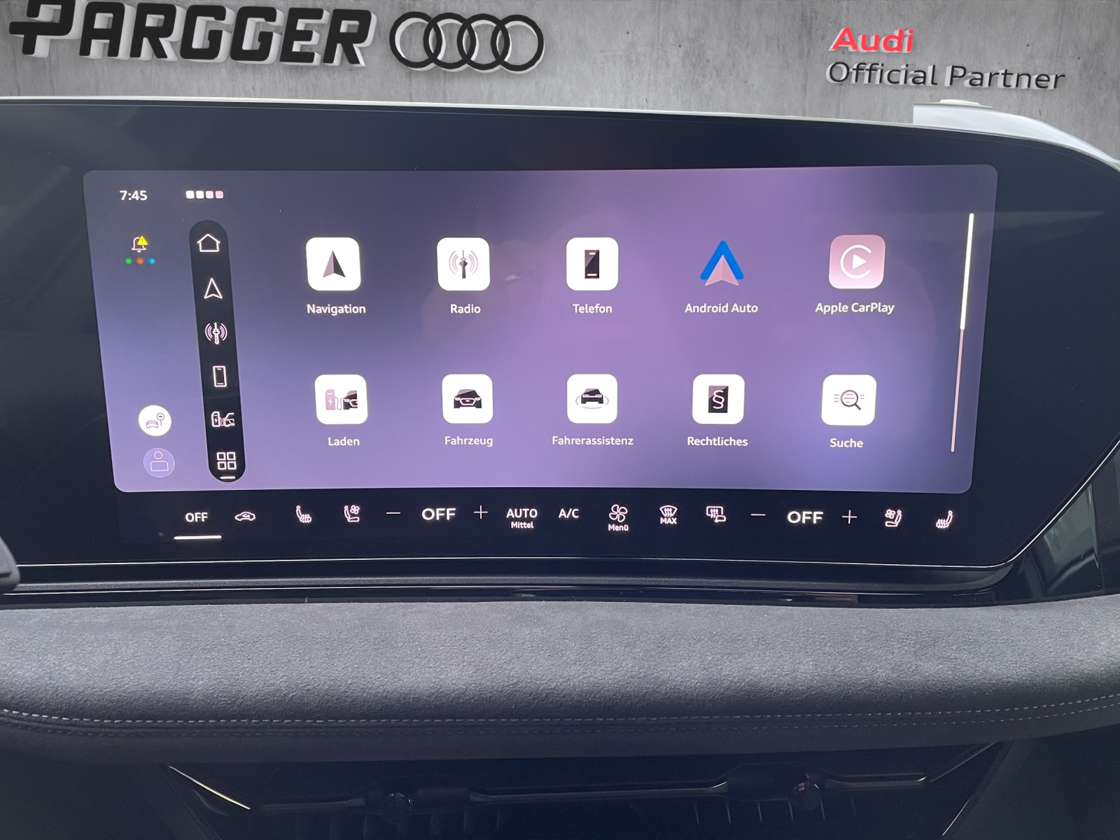 [QJ3] Dekor: Interieurapplikationen Vanadiumoptik [GX] schwarz, Naht stahlgrau, Himmel schwarz [%99] Ladekarte inkl. Startguthaben (im Handschuhfach) [1XY] Lenkrad: Sportlederlenkrad, 3-Speichen, oben und unten abgeflacht mit Multifunktion und Schaltwippen [7M] siambeige metallic [2C7] Lenkrad: Lenkradeinstellung elektrisch [8RT] Media: Bang & Olufsen Premium Soundsystem mit 3D-Klang und Kopfstützenlautsprechern [JH1] Media: MMI Beifahrerdisplay [5P2] Insassenerkennung im Fond [D12] Kundenvorteil Paket "Business" Herzlich Willkommen bei der Garage Pargger AG in Stans, Ihrem offiziellen Audi Partner für Ob- und Nidwalden. Offizieller Audi Verkaufs- und Servicepartner, sowie Servicepartner Skoda. Fremdsprachen sind uns nicht fremd, gerne kommunizieren wir mit Ihnen in Englisch, Italienisch und Französisch. Seit Generationen sicher Mobil!