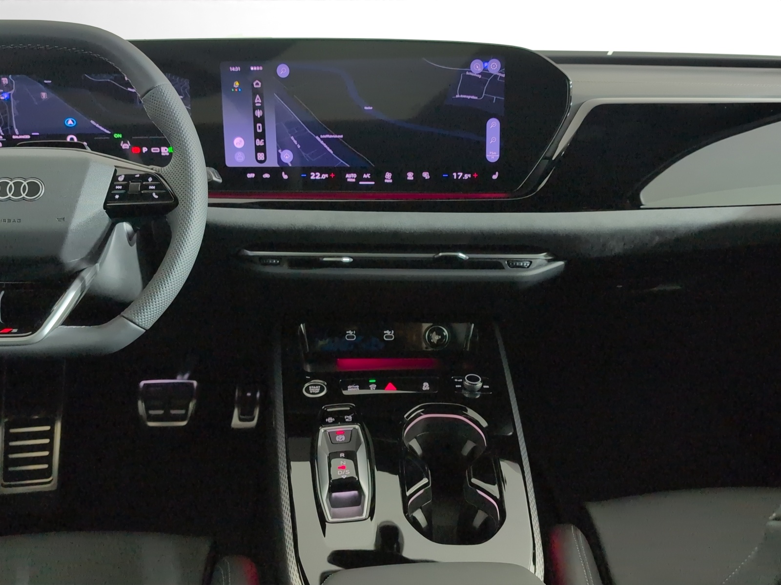 Sonderausstattung Akustikverglasung für Türscheiben vorn Assist: Adaptiver Fahrassistent plus Assist: Audi drive select assistant Assist: Parkassistent pro mit Remote-Funktionalität Assist: Spurverlassenswarnung inkl. Notfallassistent Entfall Modellbezeichnung Haushaltsstecker Typ J (Schweiz) für das e-tron Ladesystem Industriestecker CEE 32A, 400V, lang und gerade Insassenerkennung im Fond Klima: Standklimatisierung Komfort Lackierung: Metallic-Lackierung Licht: Einstiegs-LED mit Logoprojektion vorn Media: Bang & Olufsen Premium Soundsystem mit 3D Klang Media: Mobilfunk-Signalverstärker Typ 1 Media: Telefonablage mit induktiver Ladefunktion und Mobilfunk-Koppelantenne Paket: Ambiente-Lichtpaket pro Paket: Interieur S mit Sportsitzen plus, Mikrofaser Dinamica/Leder-Kombination schwarz Paket: Klimatisierungspaket Winter Paket: MMI experience plus mit Bang & Olufsen Premium Soundsystem Räder: Räder Audi Sport, Vielspeichen-S, schwarz metallic, glanzgedreht Sitze: Memory-Funktion für den Fahrersitz und die Aussenspiegel e-tron Ladesystem kompakt