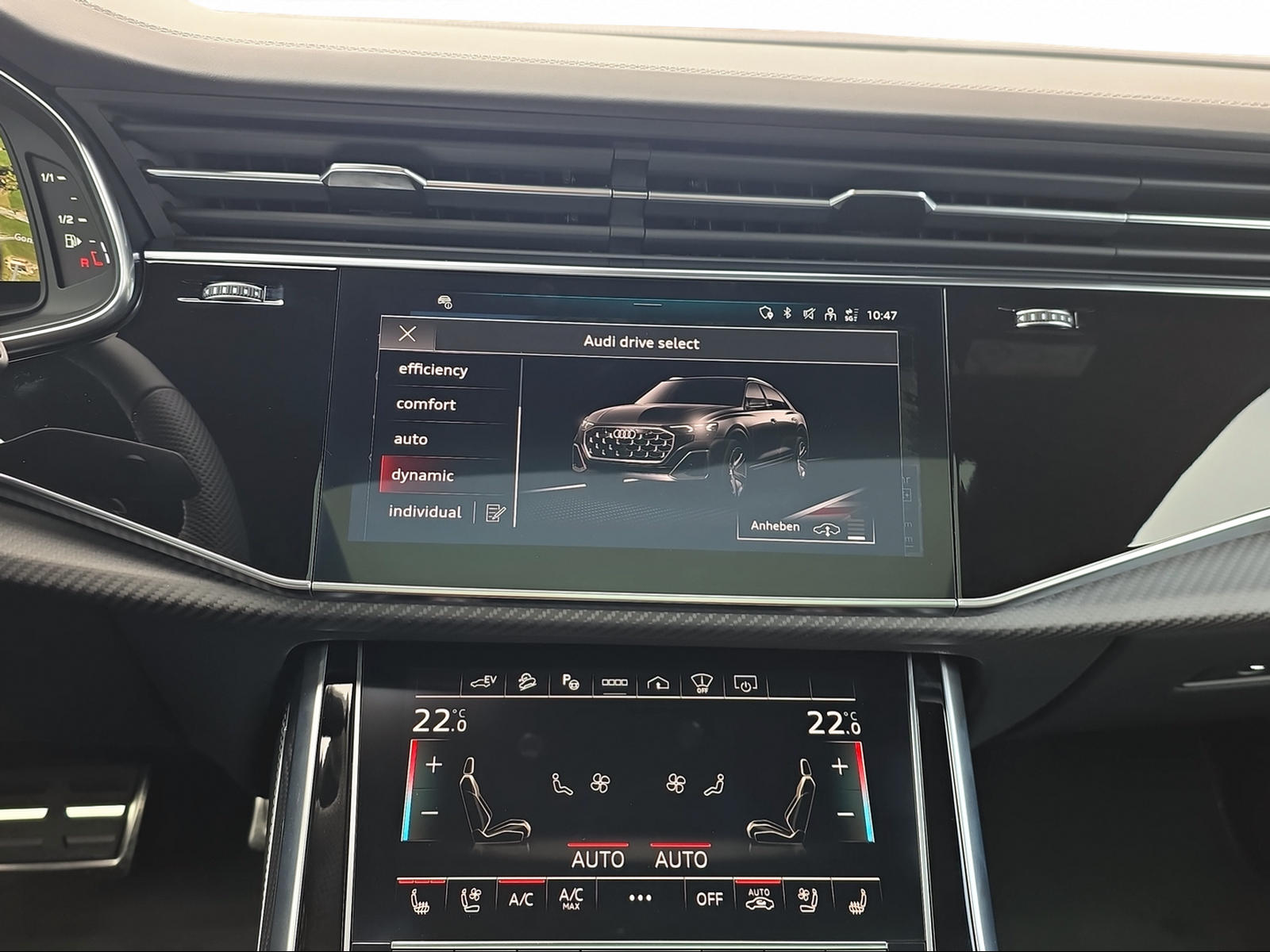 [WK5] Assistenzpaket plus (brutto) [PCM] Assistenzpaket Stadt [PHZ] Paket: Fahrwerkspaket advanced [7HR] Dekor: Interieurelement oben in Leder und Interieurelemente unten in Kunstleder [PCC] Assistenzpaket Tour [58U] Räder: Leichtmetallräder Audi Sport im 10-Speichen-Trapezoid-Design, schwarz - Grösse 10 J × 23 mit Reifen 285/35 R23 [6FJ] Aussenspiegelgehäuse in Schwarz [4D8] Sitze: Sitzbelüftung und Massagefunktion vorne [3GN] Schienensystem mit Fixierset