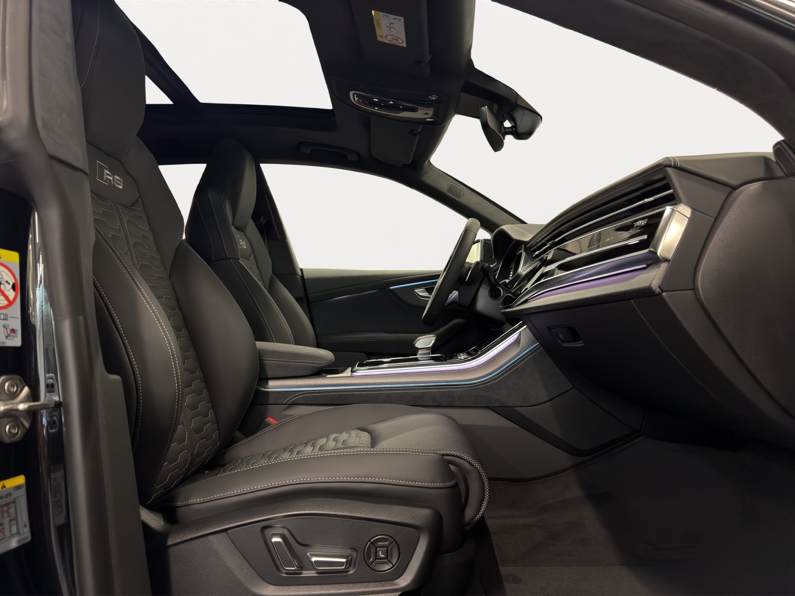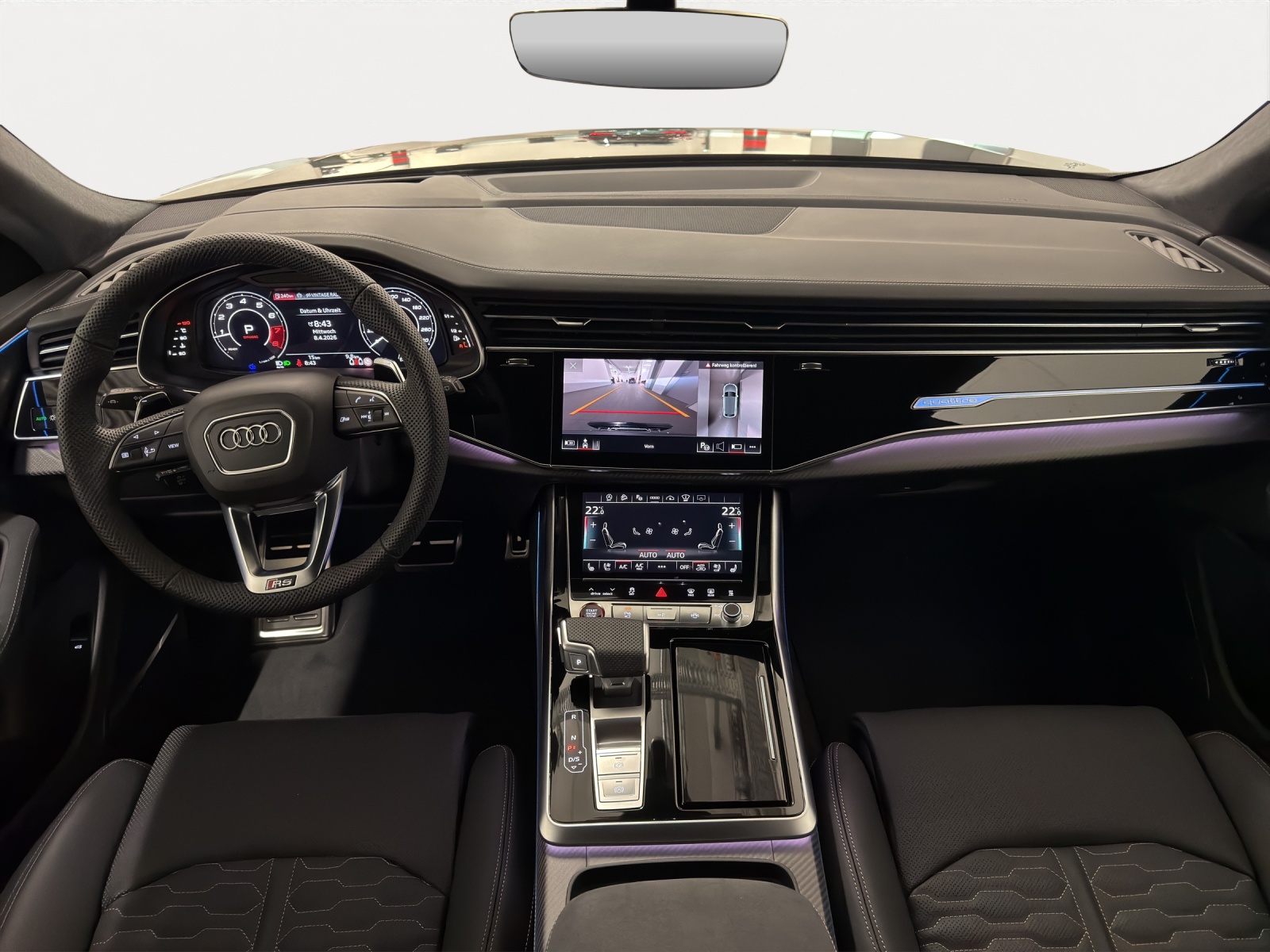 Akustikverglasung Tür- und Seitenscheiben Assist: Parkassistent mit Einparkhilfe plus Aussenspiegel in Wagenfarbe Aussenspiegel rechts und links beheizt, elektrisch verstell-/ und einklappbar mit Memory Dachhimmel in Microfaser Dinamica schwarz Dekor: Bedienelemente Leder schwarz mit Kontrastnaht Audi exclusive Dekor: Dekoreinlagen Carbon Köper matt Klima: Standheizung und -lüftung Lackierung: Metallic-Lackierung Licht: Digitale OLED-Heckleuchten Media: Mobilfunk-Signalverstärker Typ 1 Media: USB-Anschlüsse mit Ladefunktion in erster und zweiter Sitzreihe Paket: Assistenzpaket Parken mit Parkassistent plus Paket: Assistenzpaket Parken mit Remote Parkassistent plus Paket: Assistenzpaket Plus Paket: Assistenzpaket Stadt Paket: Assistenzpaket Tour Paket: Audi pre sense Fond-Paket Paket: Ausstattungspaket Schweiz Paket: Fahrwerkspaket advanced Paket: Optikpaket schwarz Paket: Optikpaket schwarz plus Paket: RS-Designpaket grau plus Räder: Räder, 5-Y-Speichen, kontrastschwarz matt Sitze: Sitzbelüftung und Massagefunktion vorne Sitze: Sitzheizung vorne und hinten Sonnenschutzrollo elektrisch für hintere Türscheiben, manuell für Heckscheibe Sonnenschutzverglasung, abgedunkelt Zigarettenanzünder und Aschenbecher